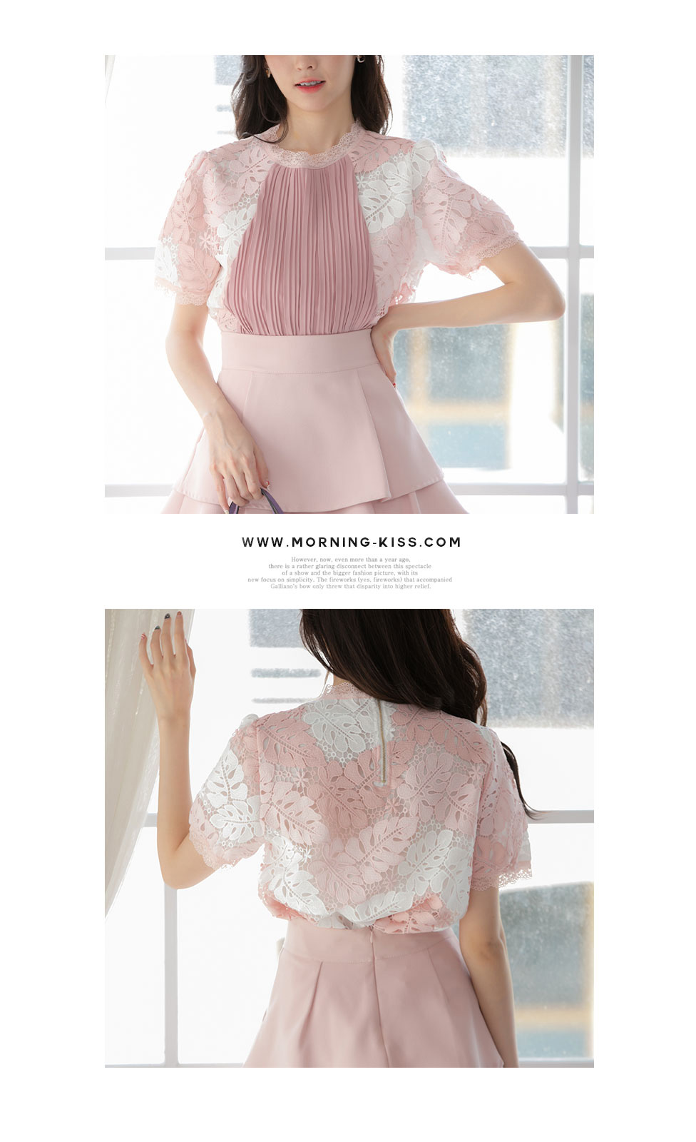 สาวหวานต้องไม่พลาดรายการนี้เลย สวยมากจริงๆเห็นแล้วละลายไปเลย กับเสื้อหวานๆไอเท็มแนะนำ เสื้อแขนสั้นผ้าฉลุลายใบไม้สีชมพูสลับขาว ด้านหน้าอัดพลีท ซับในทั้งตัว งานโชว์ซิปทองด้านหลัง เนื้อผ้าลูกไม้เนื้อดีมาก งานพรีเมียม หรูหราสมราคา งานตัดเย็บเนี๊ยบ เป๊ะมาก ใส่เที่ยวใส่ทำงานก็สวยเริ่ด รับประกันเลยได้ไปจะต้องถูกใจ