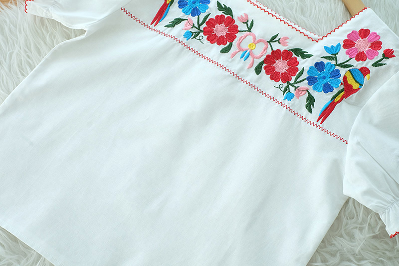 เสื้อสไตล์โบฮีเมียนแบบเรียบๆ สีขาว ไอเท็มนี้น่ารักมากจริงๆ ด้านหน้าเป็นงานปักลายดอกไม้หวานๆ งานปักแบบเนี๊ยบๆเลย เนื้อผ้า Cotton ใสสบายไม่ร้อน ทรงตัวปล่อยๆ ใส่ทับในคู่กับขาสั้นขายาวก็น่ารัก