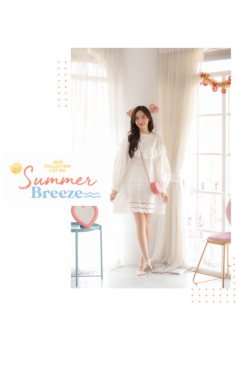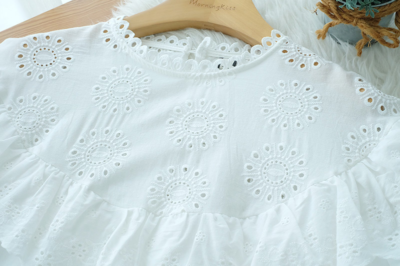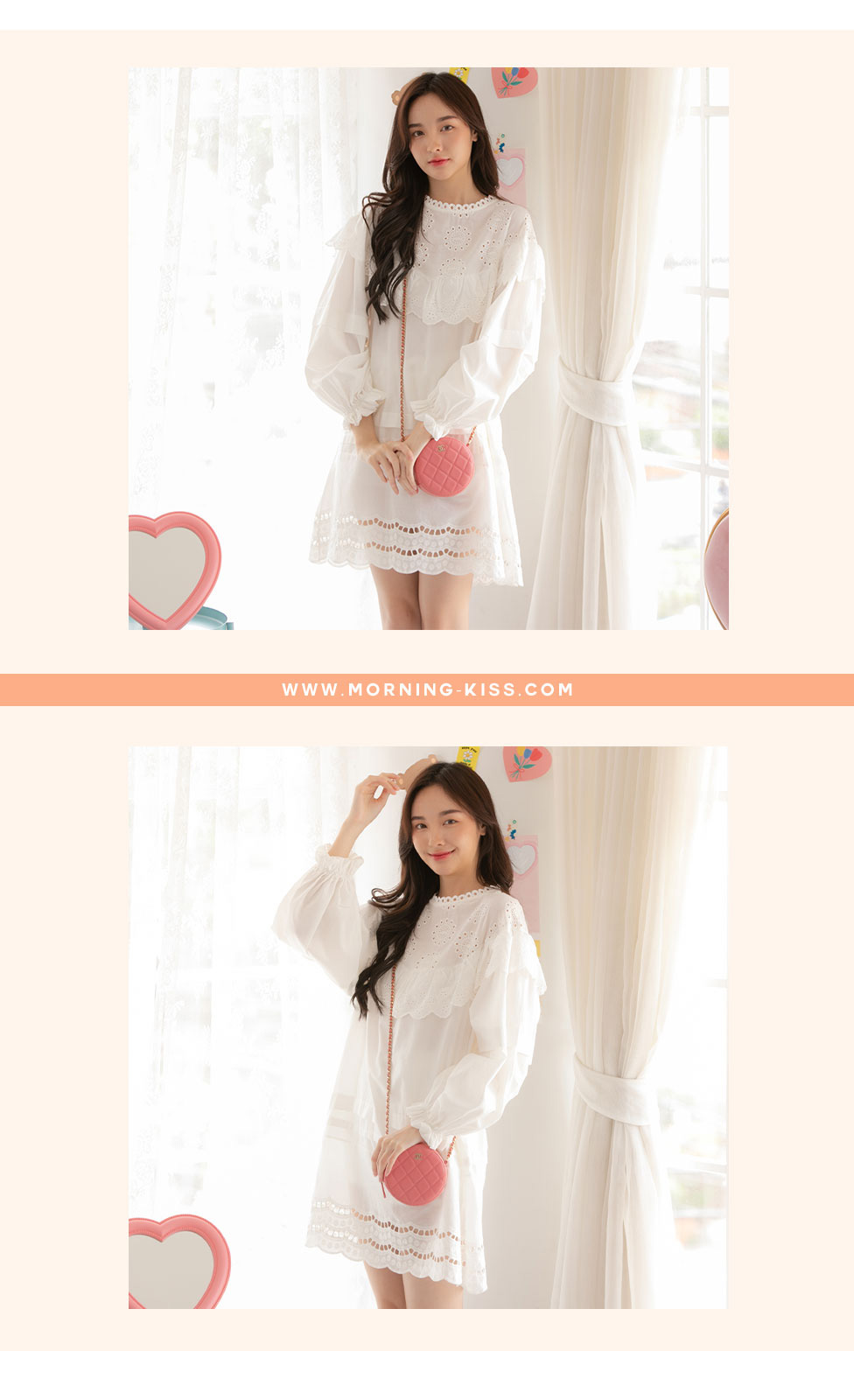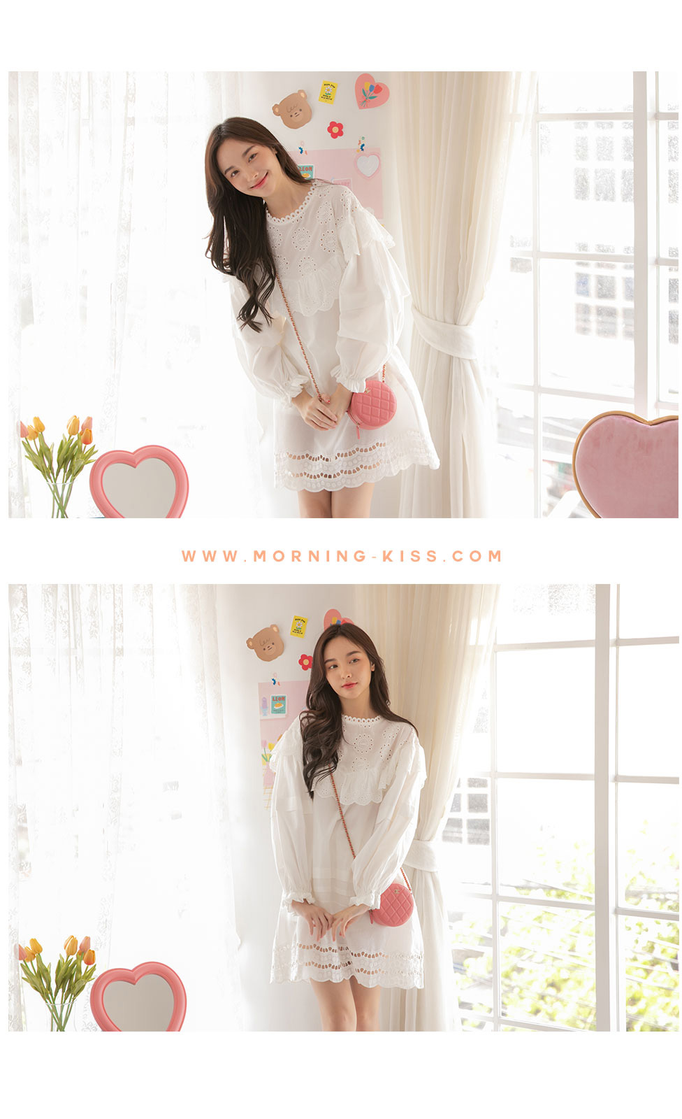 น่ารักๆสไตส์คุณหนูต้องชุดนี้เลย งานดีมาก กับชุดเดรสแขนยาวผ้าฉลุลายลูกไม้สีขาว สวยละมุนมาก ด้านหน้าแต่งระบายหยักๆ ทรงใส่แบบปล่อยๆ ใส่เที่ยวก้อน่ารัก ชุดเดียวเอาอยู่จริงๆ