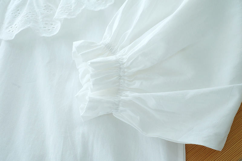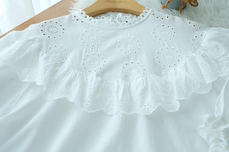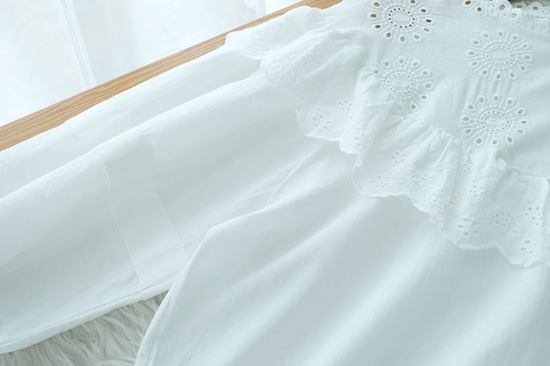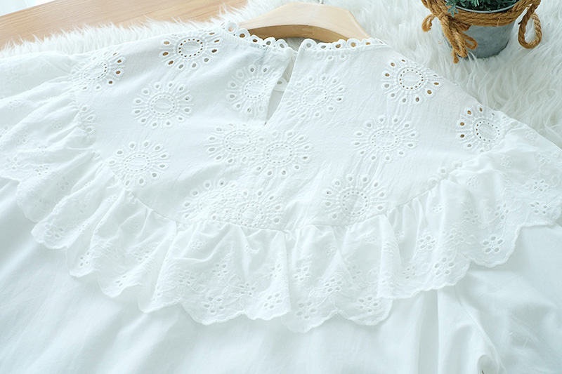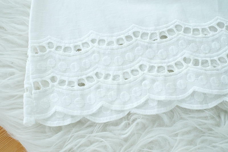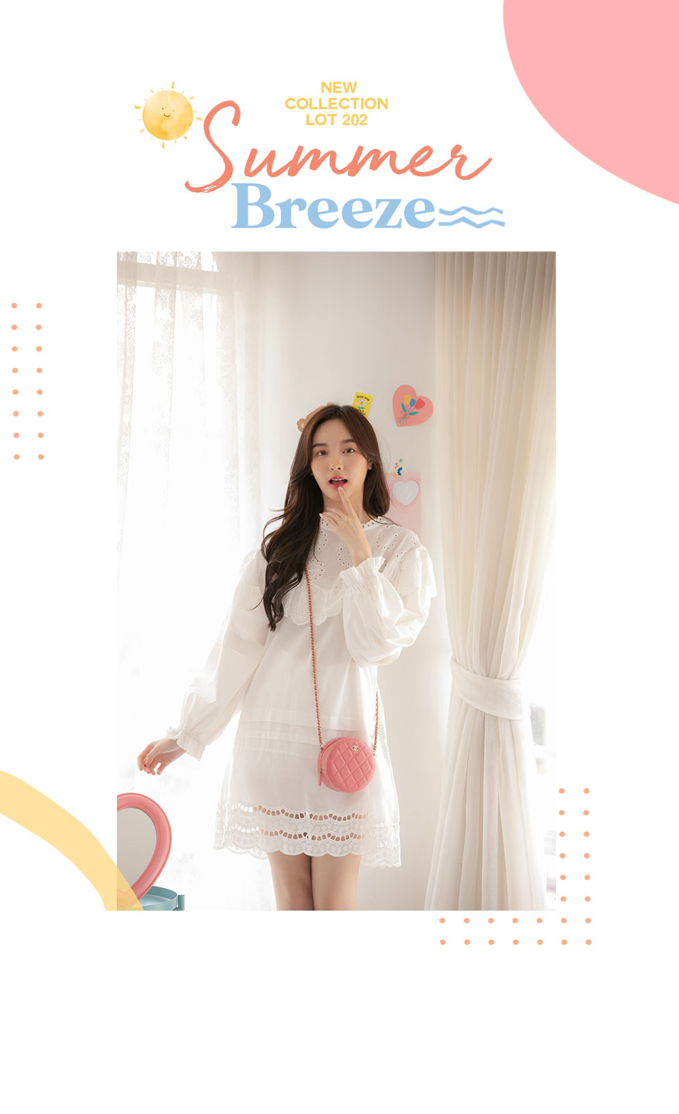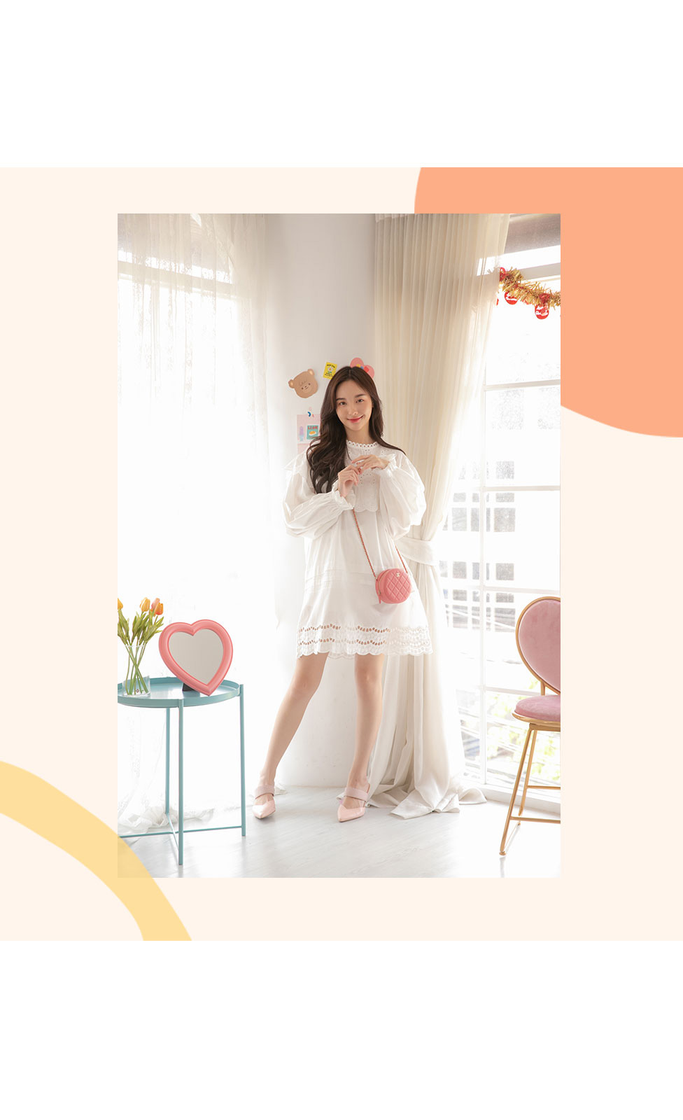 น่ารักๆสไตส์คุณหนูต้องชุดนี้เลย งานดีมาก กับชุดเดรสแขนยาวผ้าฉลุลายลูกไม้สีขาว สวยละมุนมาก ด้านหน้าแต่งระบายหยักๆ ทรงใส่แบบปล่อยๆ ใส่เที่ยวก้อน่ารัก ชุดเดียวเอาอยู่จริงๆ