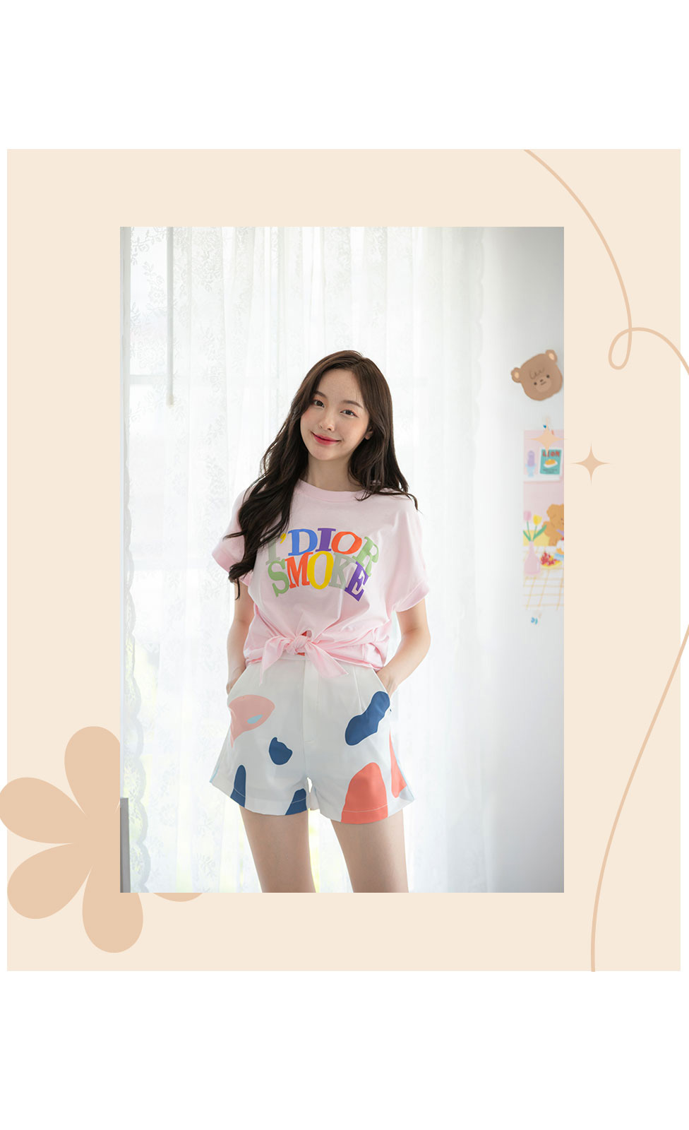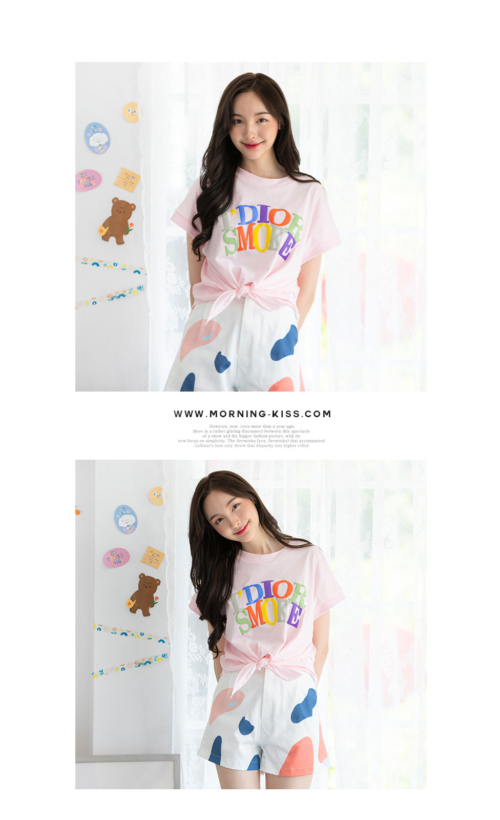 วันสบายๆกับอากาศร้อนๆในช่วงนี้ งานเสื้อยืดใส่สบายต้องมา รุ่นนี้แนะนำเลยงานสกรีนลายอักษรแบรนด์ดังสลับสีน่ารักๆ ชายเสื้อผ่าขึ้นใช้ผูกเอวเพิ่มความเก๋ เนื้อผ้า Cotton ยืดเนื้อดีนิ่มใส่สบายตัว แมทคู่กับขาสั้นทรงเอวสูง หรือกางเกงยีนส์ขายาว ได้ลุคชิคๆ