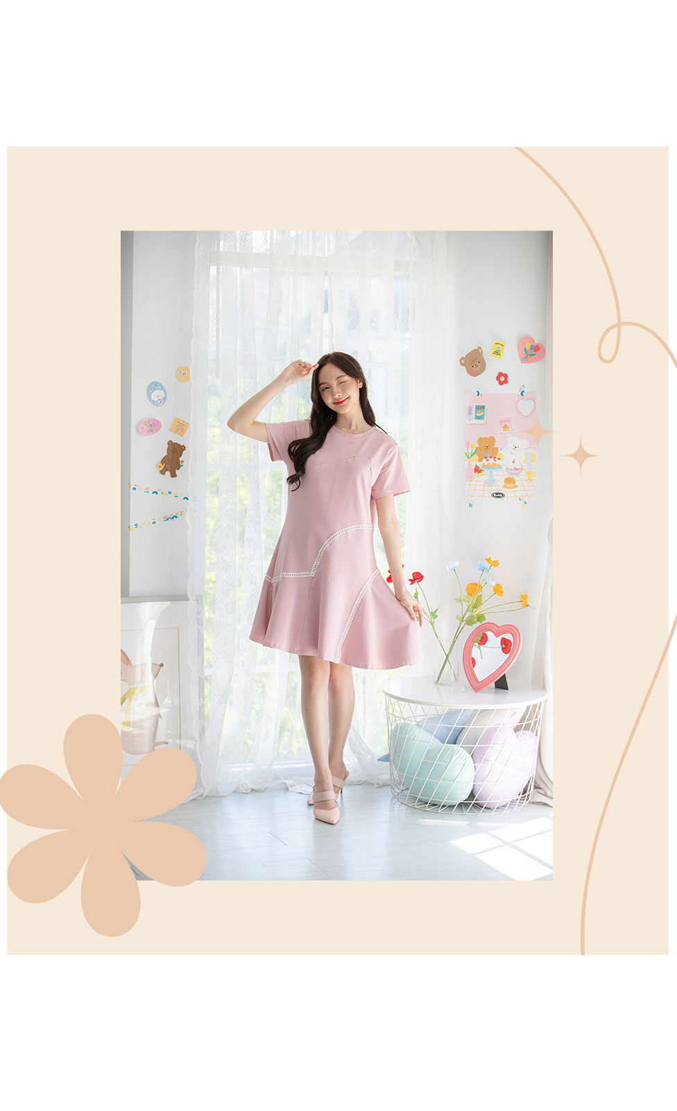 รายการนี้แนะนำสาวๆเลย น่ารักมากๆ แถมผ้าดีสุดๆไปเลย เดรสแขนสั้นโทนสีชมพู แต่งงานถักลวดลายแบบเก๋ๆ แบบเรียบๆ ไม่เน้นดีเทลเยอะใส่ได้บ่อย ความยาวกำลังดี ใส่เที่ยว ใส่อยู่บ้าน ใส่ทำงาน ชุดเดียวจบ