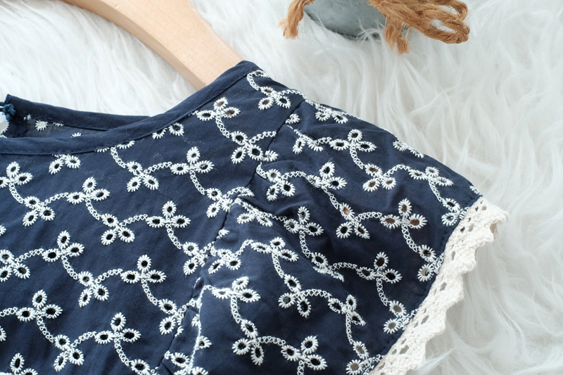 สาวหวานห้ามพลาดเลย กับเสื้อผ้าฉลุลายลูกไม้โทนสีกรมท่า รุ่นนี้น่ารักมากจริงๆ ช่วงแขนระบายๆ แบบเรียบๆ แมทกับกระโปรงหรือกางเกงก็น่ารัก
