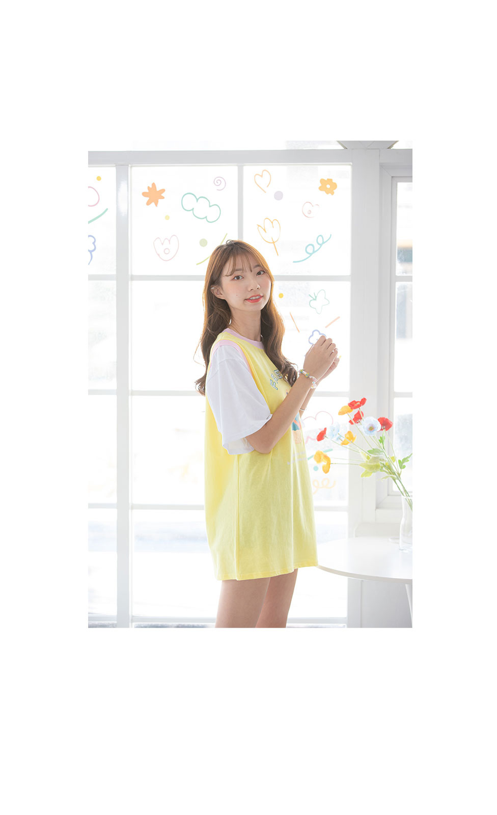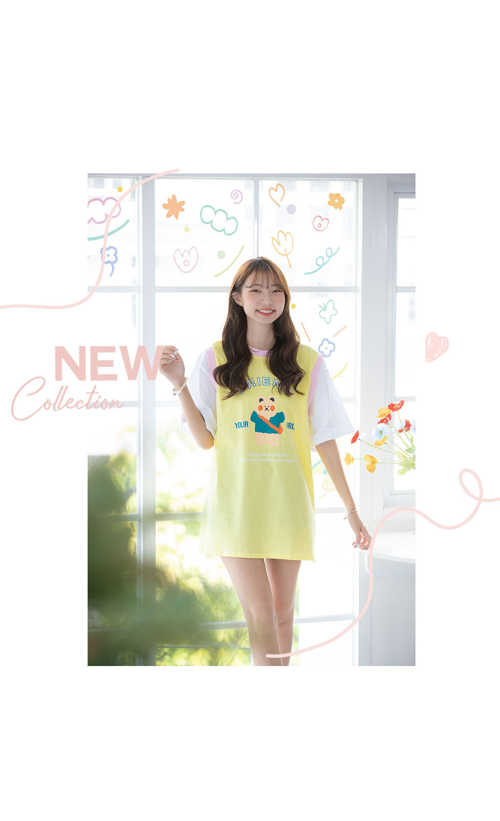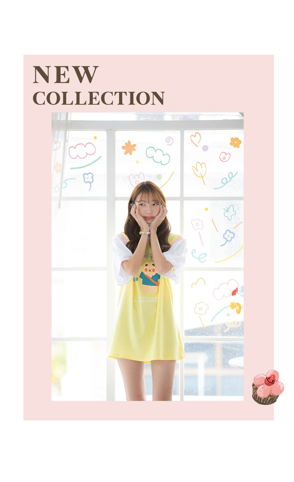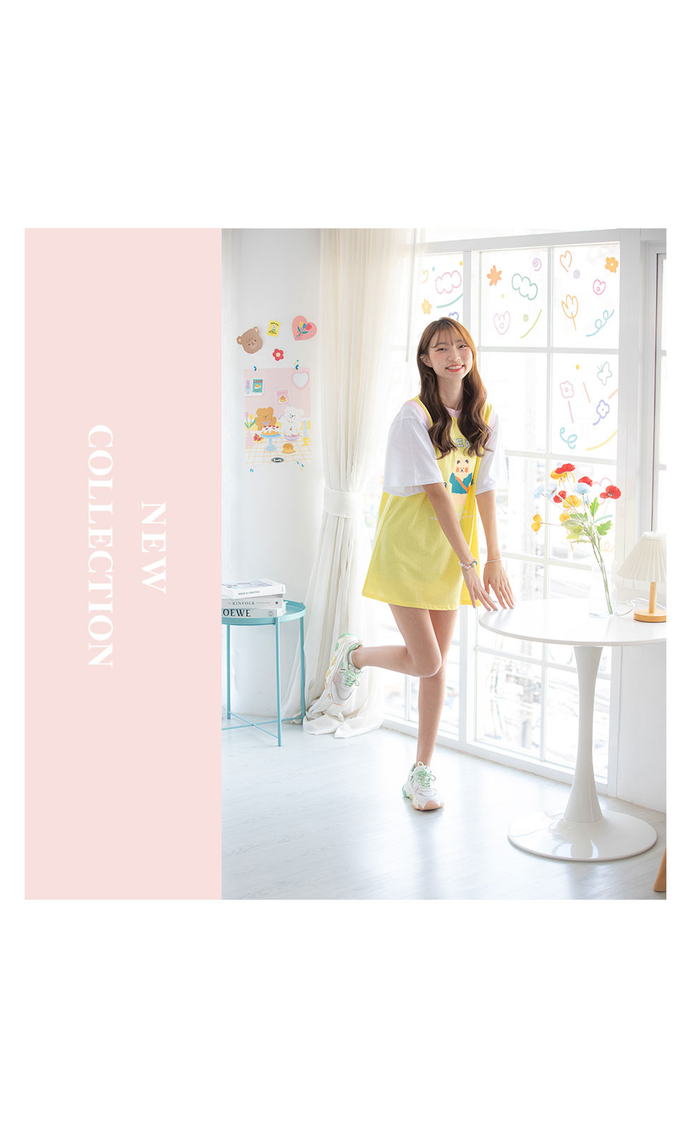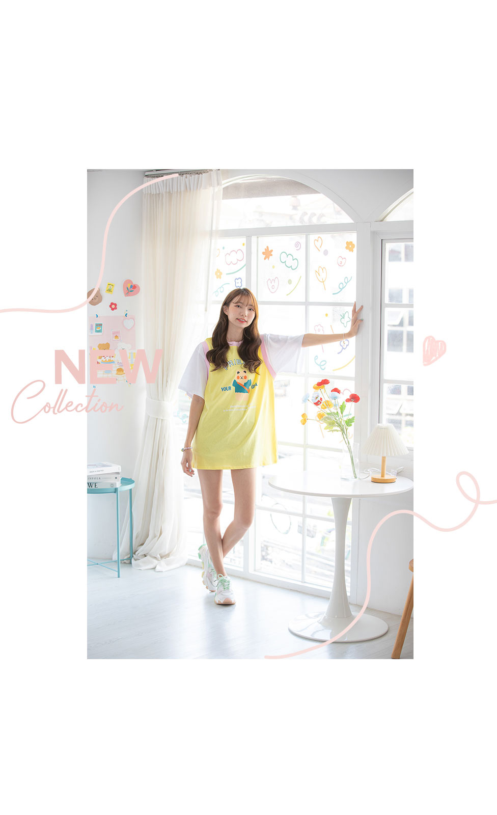Summer นี้มาเติมความสดใสซุกซนกับมินิเดรสแขนสั้นแบบทูโทนโทนสีเหลือง ด้านหน้าแต่งสกรีนลายการ์ตูน+อักษรน่ารักๆ ช่วงคอและต้นแขนต่อด้วยผ้าสีชมพู ตัวแขนเสื้อเป็นสีขาว เนื้อผ้า Cotton เนื้อนิ่ม ใส่สบาย แบบน่ารักสดใส ใส่สบายจัดไปไม่ผิดหวัง