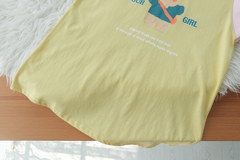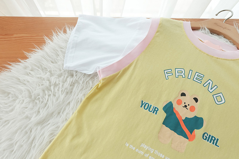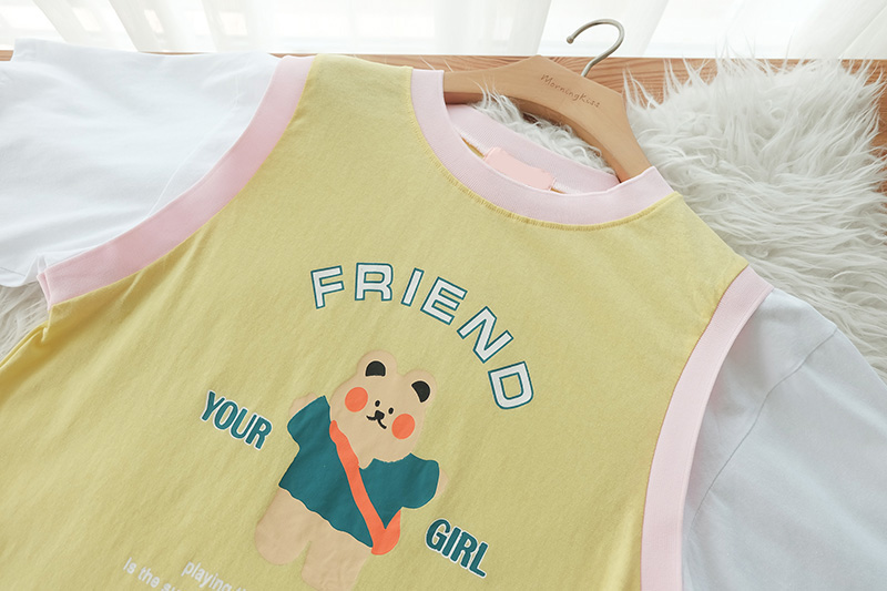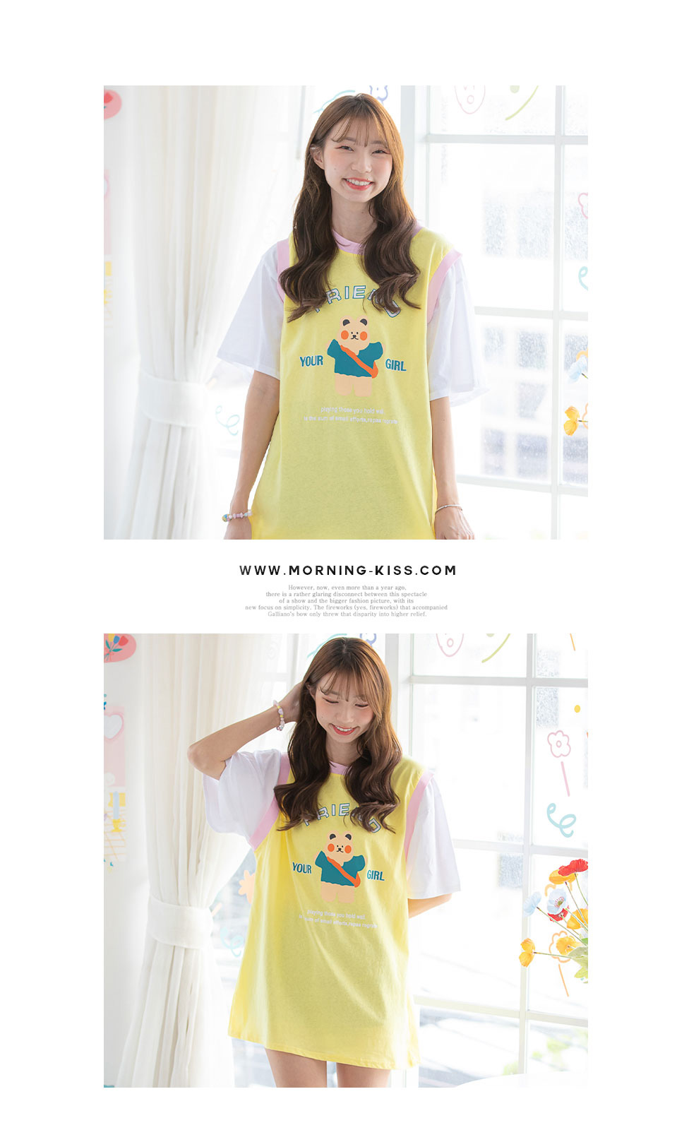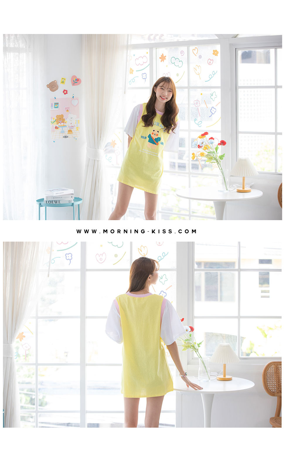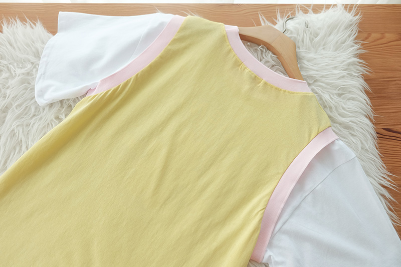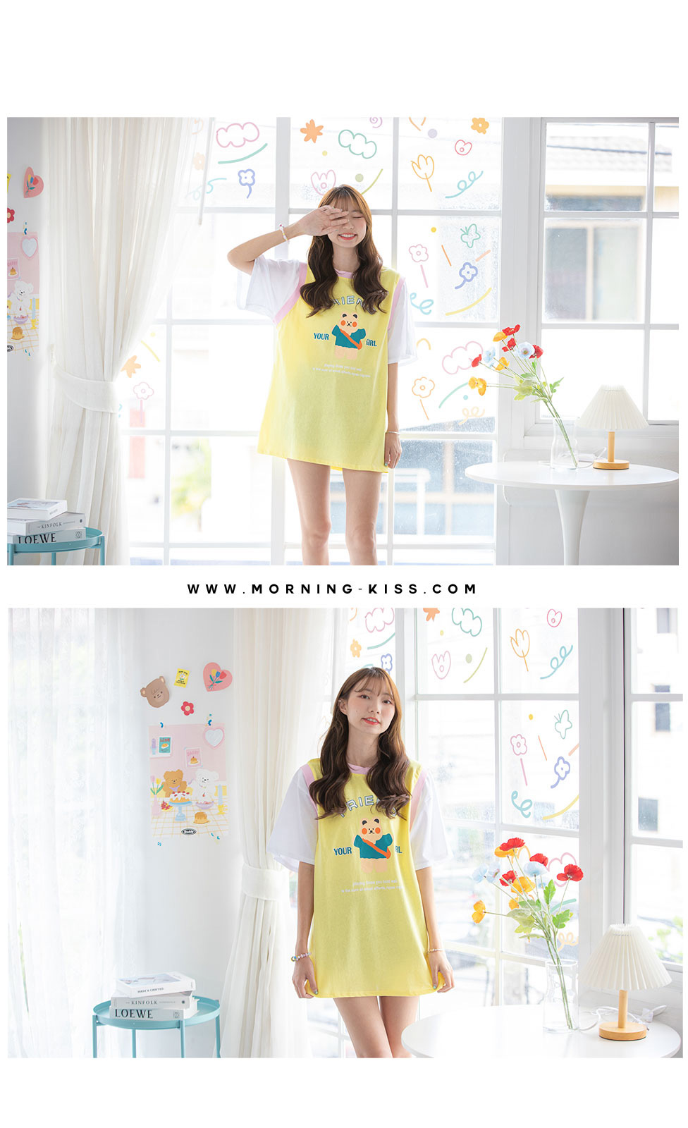 Summer นี้มาเติมความสดใสซุกซนกับมินิเดรสแขนสั้นแบบทูโทนโทนสีเหลือง ด้านหน้าแต่งสกรีนลายการ์ตูน+อักษรน่ารักๆ ช่วงคอและต้นแขนต่อด้วยผ้าสีชมพู ตัวแขนเสื้อเป็นสีขาว เนื้อผ้า Cotton เนื้อนิ่ม ใส่สบาย แบบน่ารักสดใส ใส่สบายจัดไปไม่ผิดหวัง