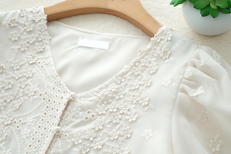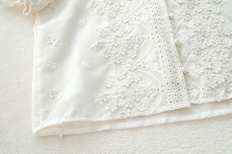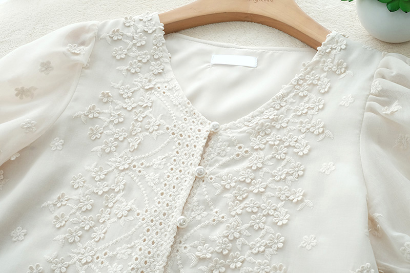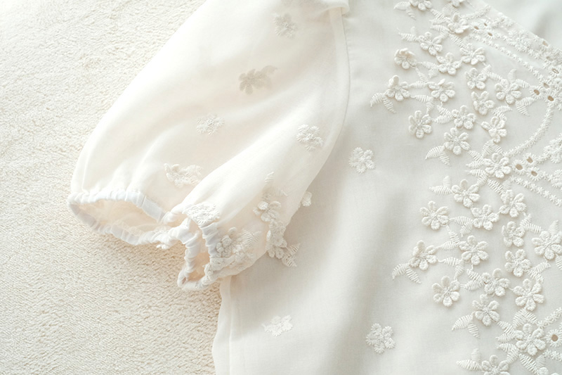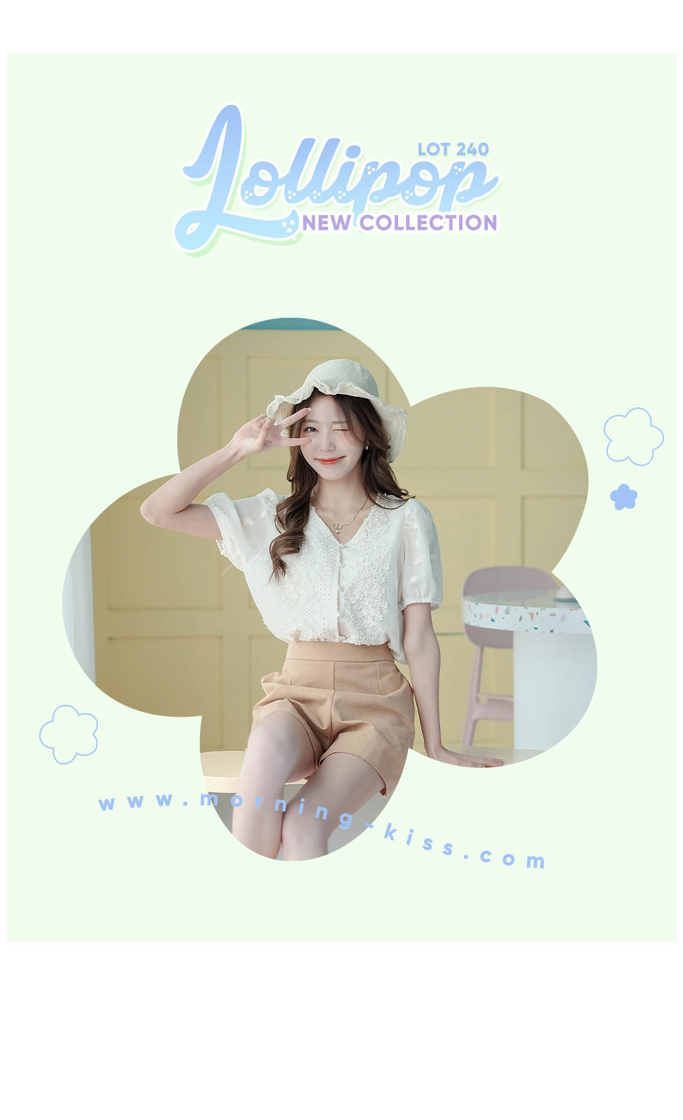 ลุคหวานๆสวยใสคลาสสิคตลอดกาล รุ่นนี้เป็นอีกไอเท็มที่แนะนำมากๆ งานจริงสวยมาก ถ้าได้เห็นต้องตกหลุมรัก กับเสื้อแขนสั้นเนื้อ Cotton แต่งงานปักดอกไม้เล็กเป็นแบบ 3 มิติรอบตัว กระดุมมุกเรียงหน้า มีซับในทั้งตัว แบบเรียบๆ ลุคคุณหนูหวานๆ