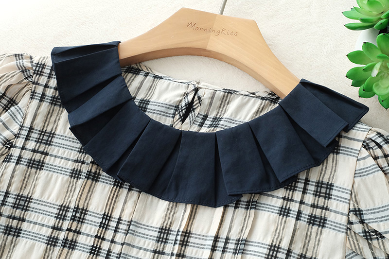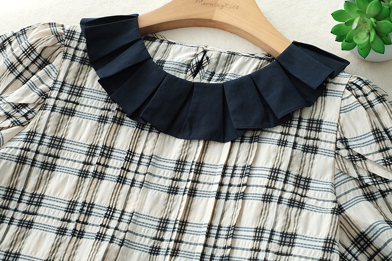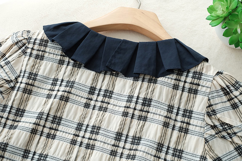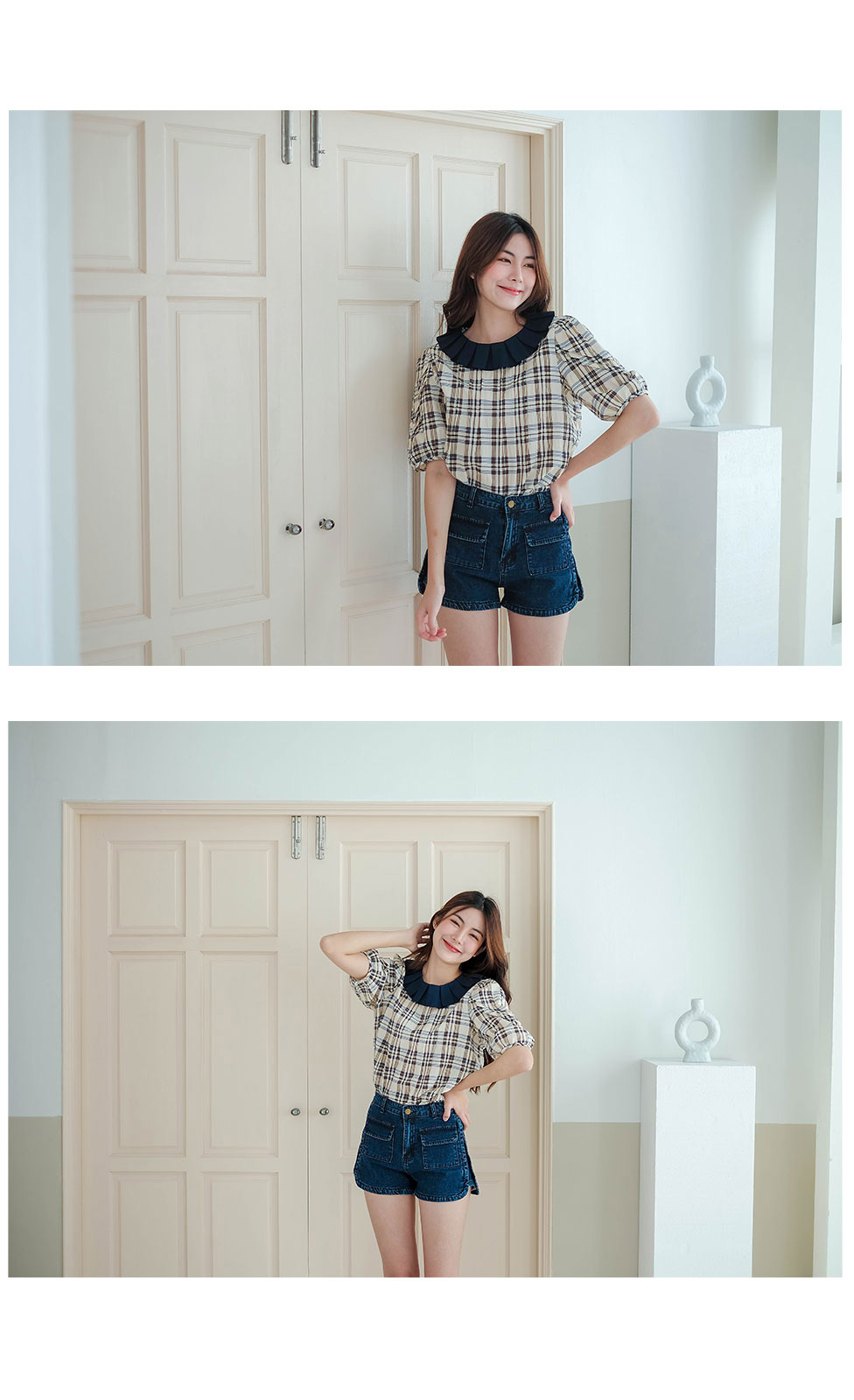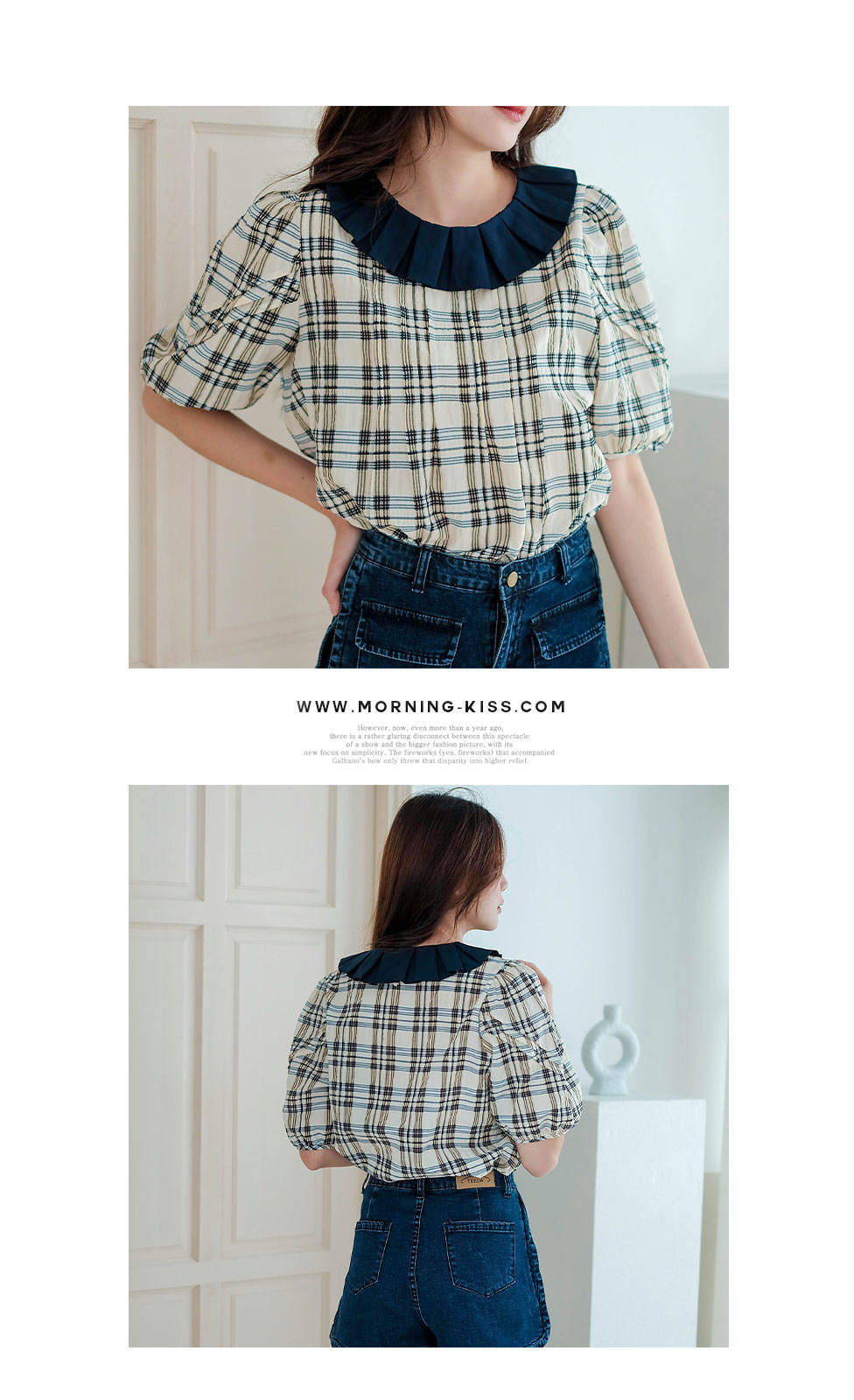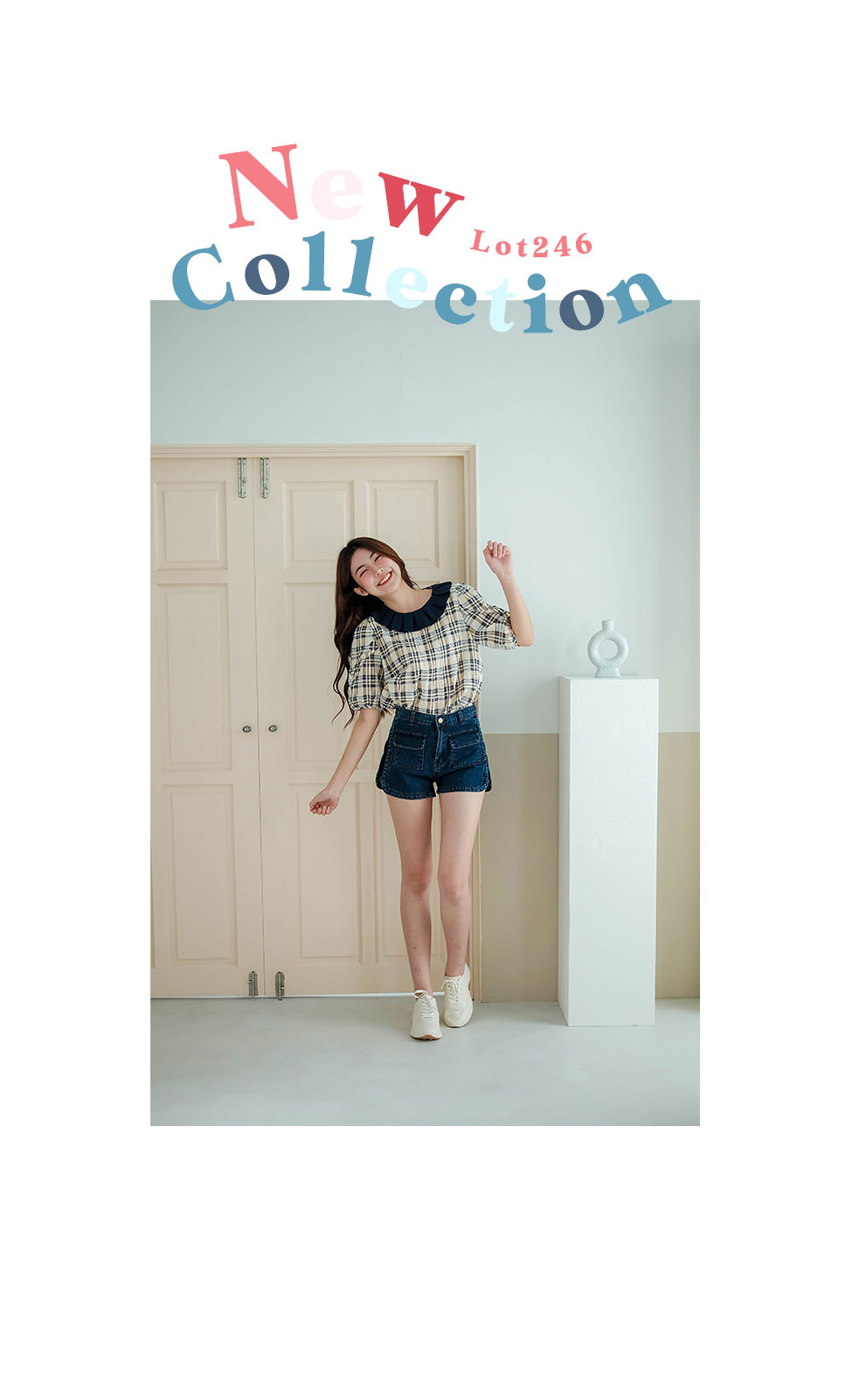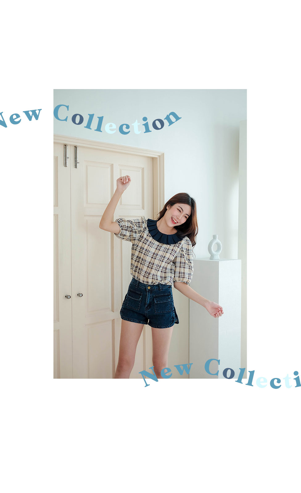 ไอเท็มแนะนำที่ไม่ควรพลาด น่ารักมาก เสื้อแขนสั้นลายสก็อตสีครีม ช่วงคอดีไซน์เย็บแบบจับจีบเก๋ๆ เนื่อผ้าแบบมี texture ในตัว ทรงตัวปล่อยๆ แมทกับกระโปรงหรือกางเกงก็น่ารัก ไอเท็มนี้แนะนำเลย รุ่นนี้สไตส์นี้ใส่ได้ตลอดๆนะคะ