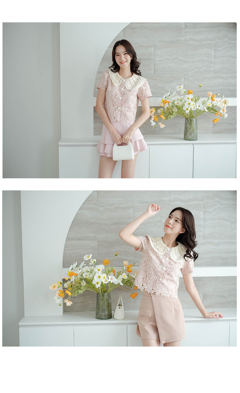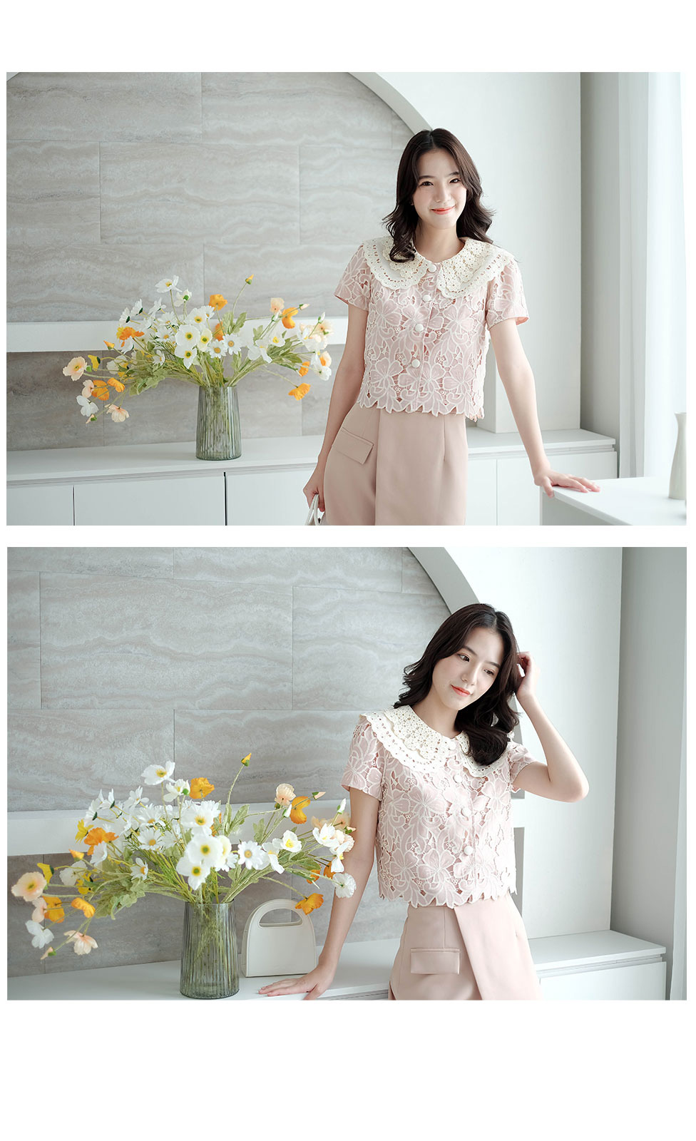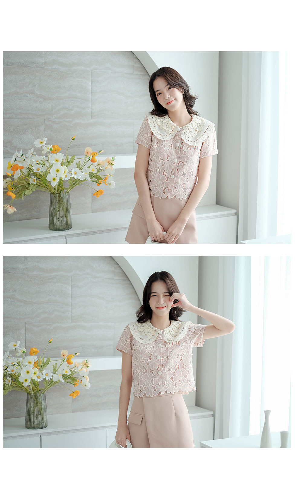 สวยปังไม่ไหว เต็ม 10 ไม่มีหักเลย เป็นไอเท็มที่ภูมิใจนำเสนอมากๆ สาวหวานต้องไม่พลาดกับเสื้อผ้าลูกไม้ญี่ปุ่นงานตัดตามลายลูกไม้อย่างปราณีตเลย ช่วงคอปกเป็นผ้าลูกไม้ทำระบาย 2 ชั้น มีซับในทั้งตัว กระดุมเรียงหน้า โทนสีชมพูนู้ดสวยคลาสิคมากๆ ลุคคุณหนูหวานๆ แมทกับขาสั้นหรือขายาว ดูสวยแพง ใส่ทำงานก็ได้ใส่เที่ยวก็น่ารัก รุ่นนี้จัดไปไม่ผิดหวังจริงๆ