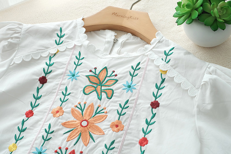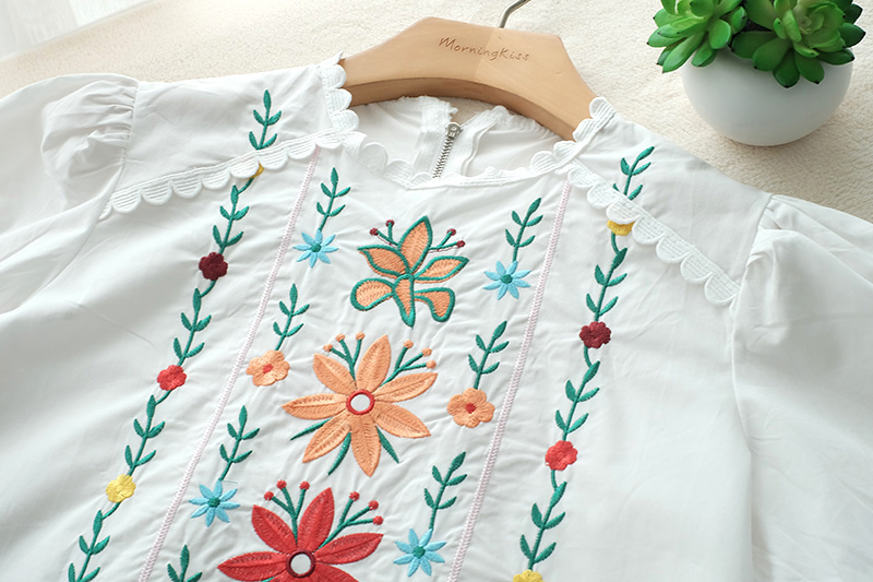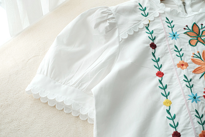 ไอเท็มนี้น่ารักมากจริงๆ แนะนำเลย งานปักแน่นๆลายดอกไม้ ปักแบบเนี๊ยบๆเลย งานสวยพรีเมียมมาก ช่วงแขนทำพองๆ มีซิปซ่อนด้านหลัง เนื้อผ้า Cotton ใสสบายไม่ร้อน ใส่ทับในคู่กับขาสั้นขายาวก็น่ารัก