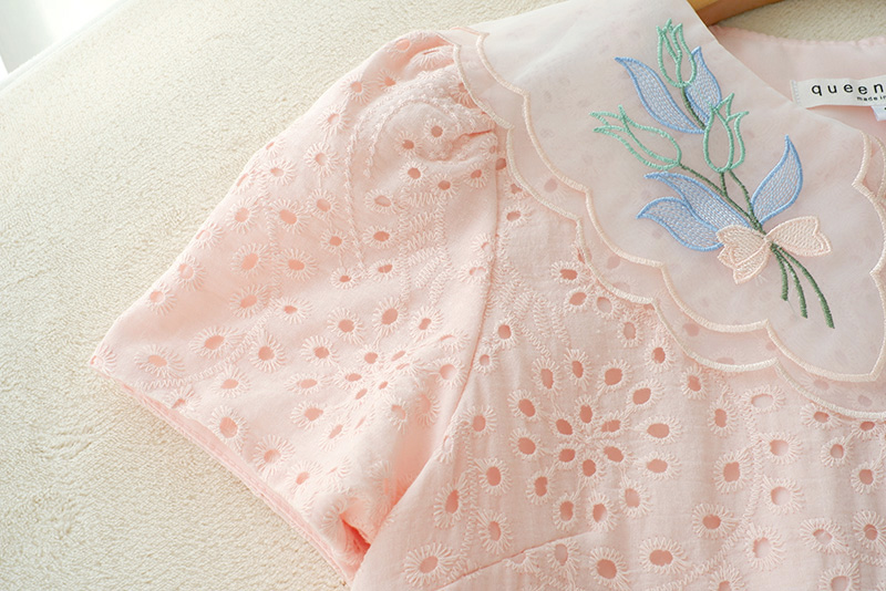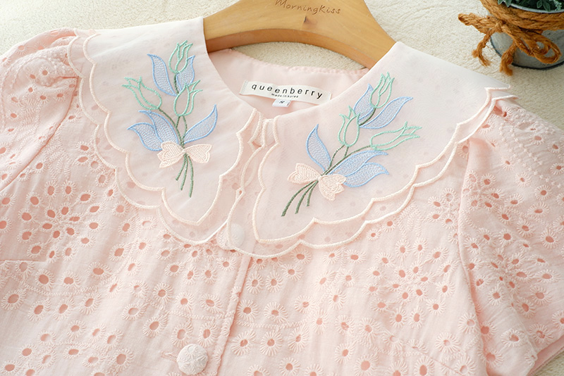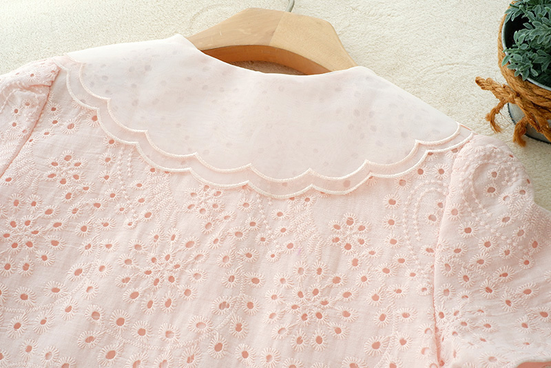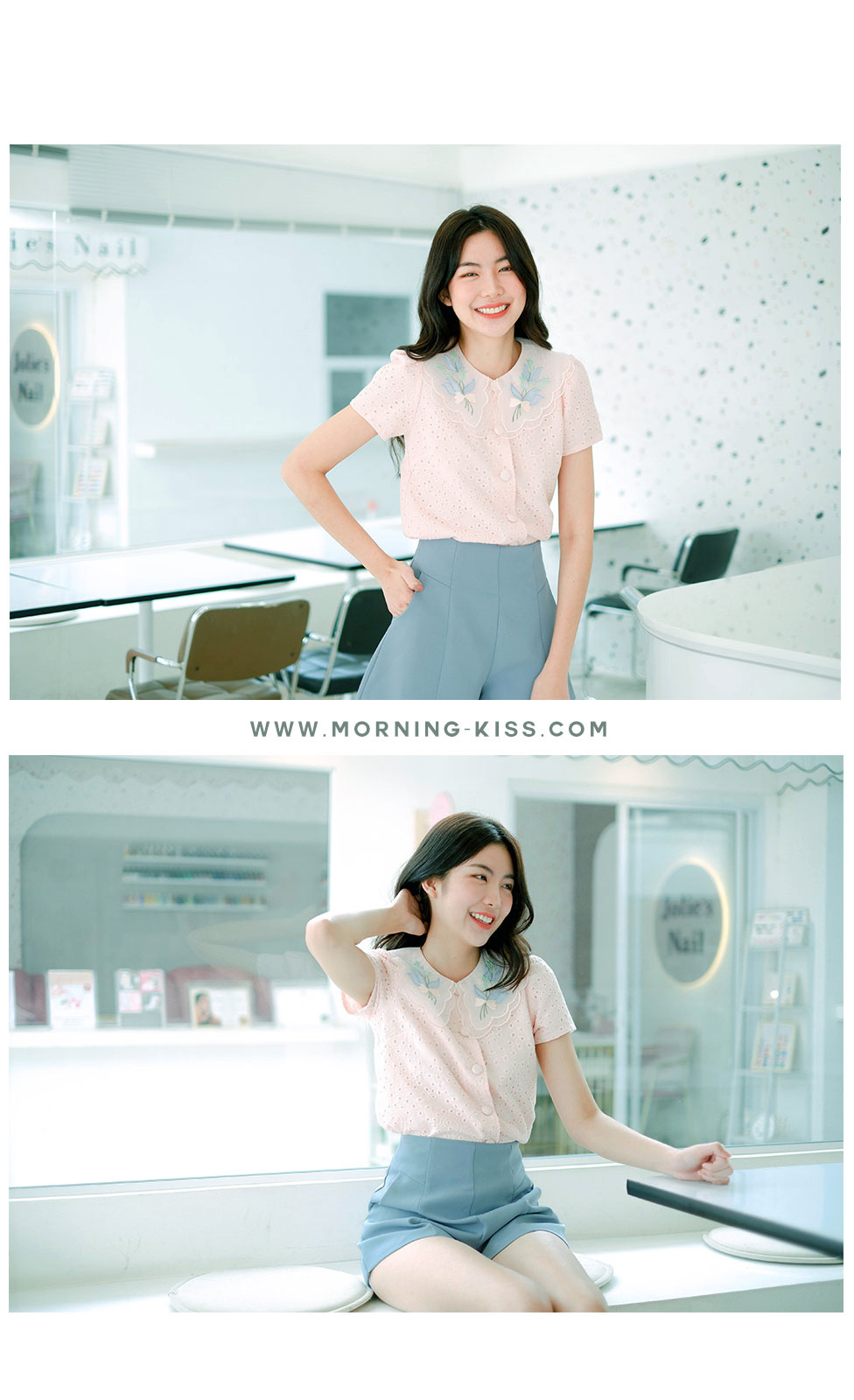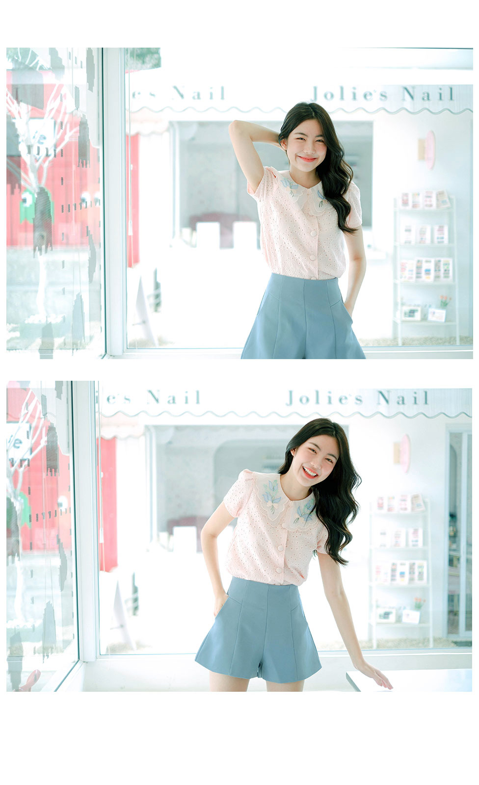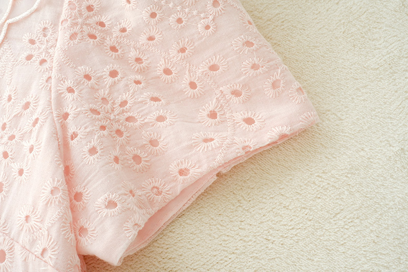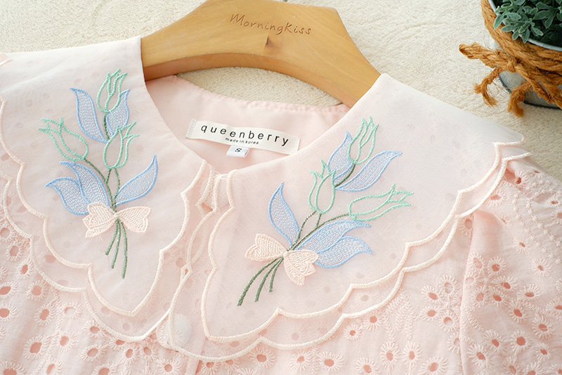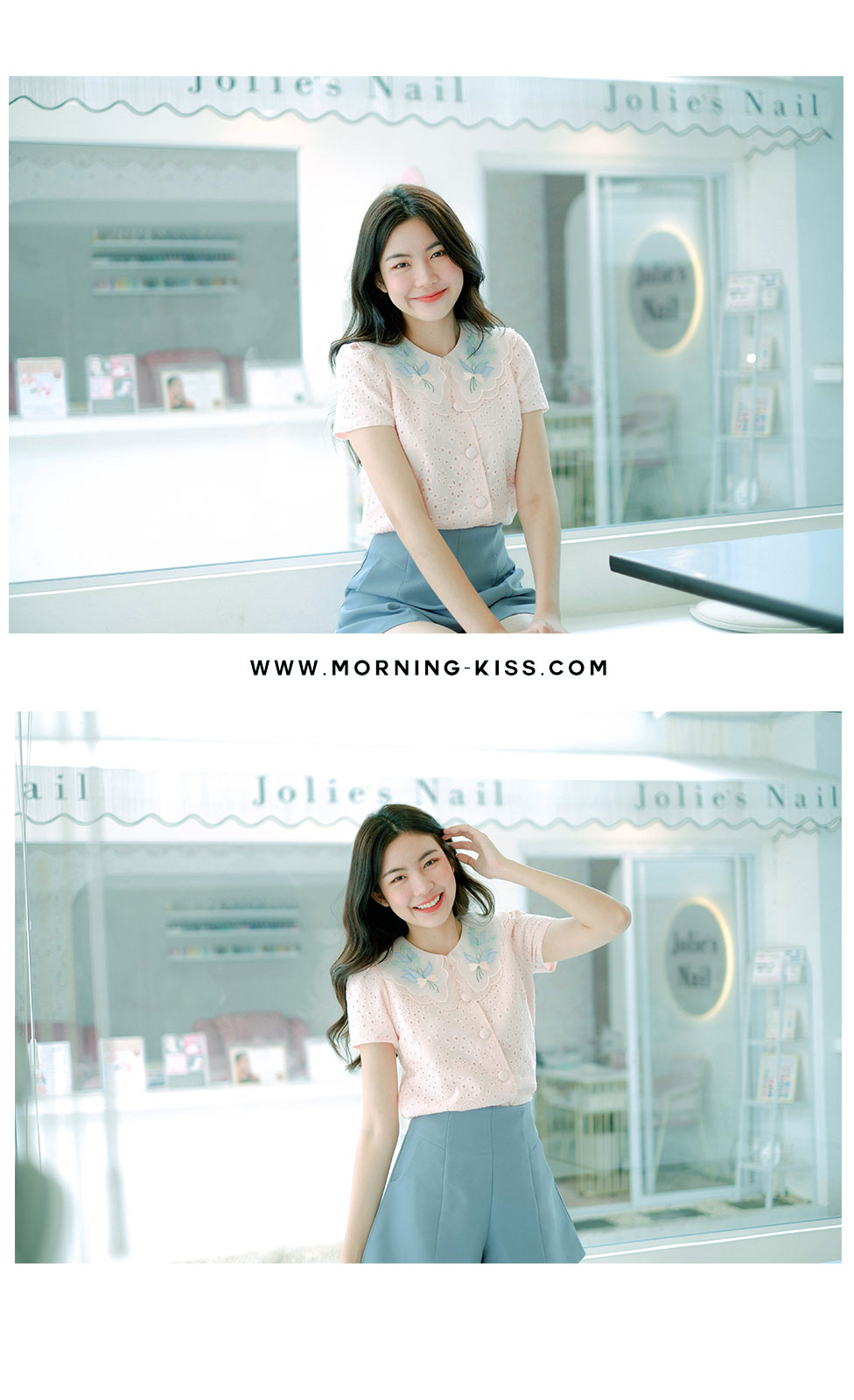 งานพรีเมียม ไอเท็มแนะนำ สวยหวานละมุนมากๆ พลาดไม่ได้เลยกับเสื้อผ้าฉลุลายลูกไม้โทนสีชมพูโอรส ช่วงคอปก 2 ชั้นเป็นผ้าแก้วเนื้อนิ่มทำหยักๆกุ๊นขอบด้วยสีชมพู + แต่งงานปักดอกไม้ ลุคสวยหรู ไม่แน่นดีเทลเยอะ เป็นโทนใส่ง่ายๆใส่เที่ยวใส่ทำงานก็สวยเริ่ด มีติดตู้ไว้ไม่ผิดหวังแน่นอน