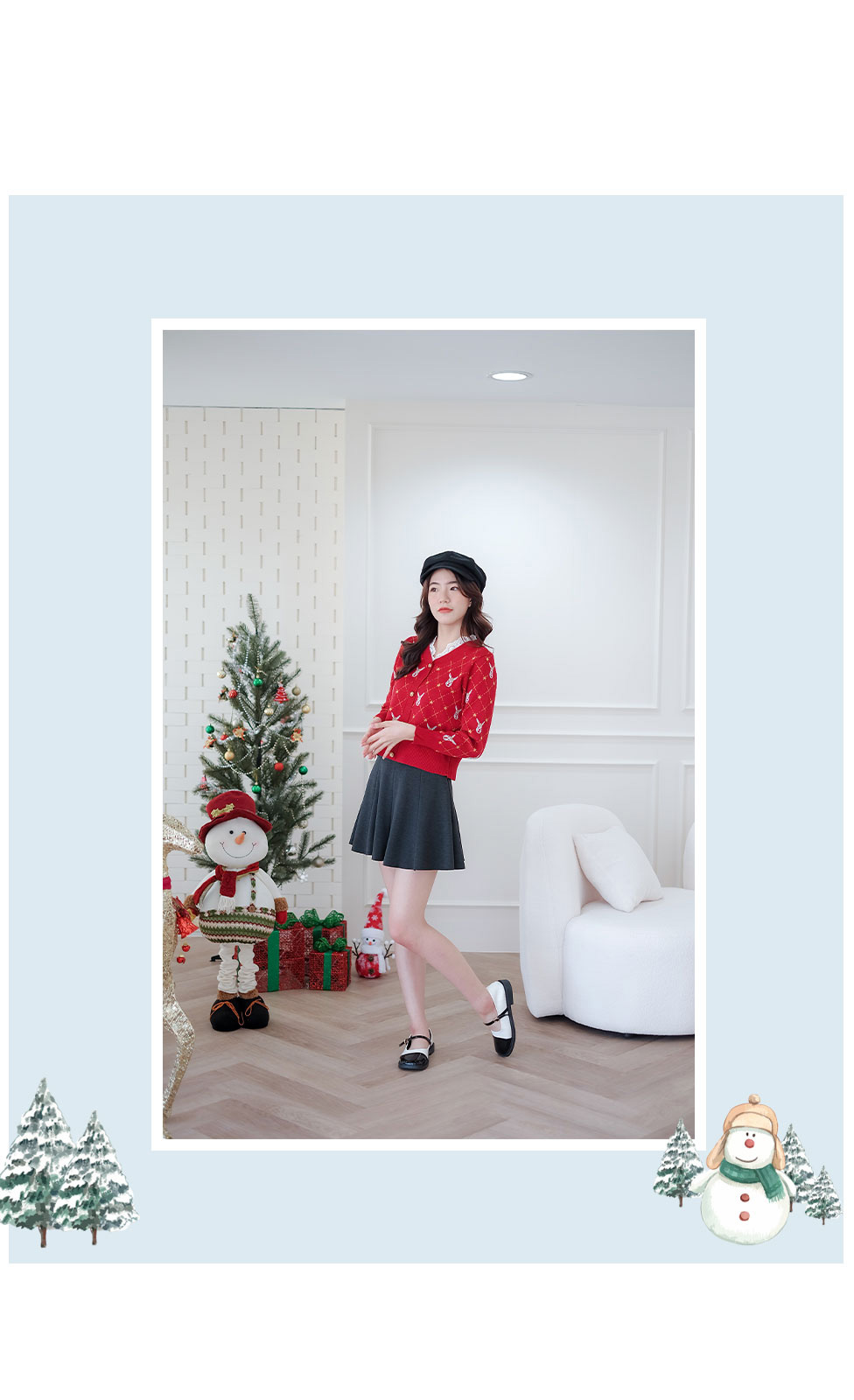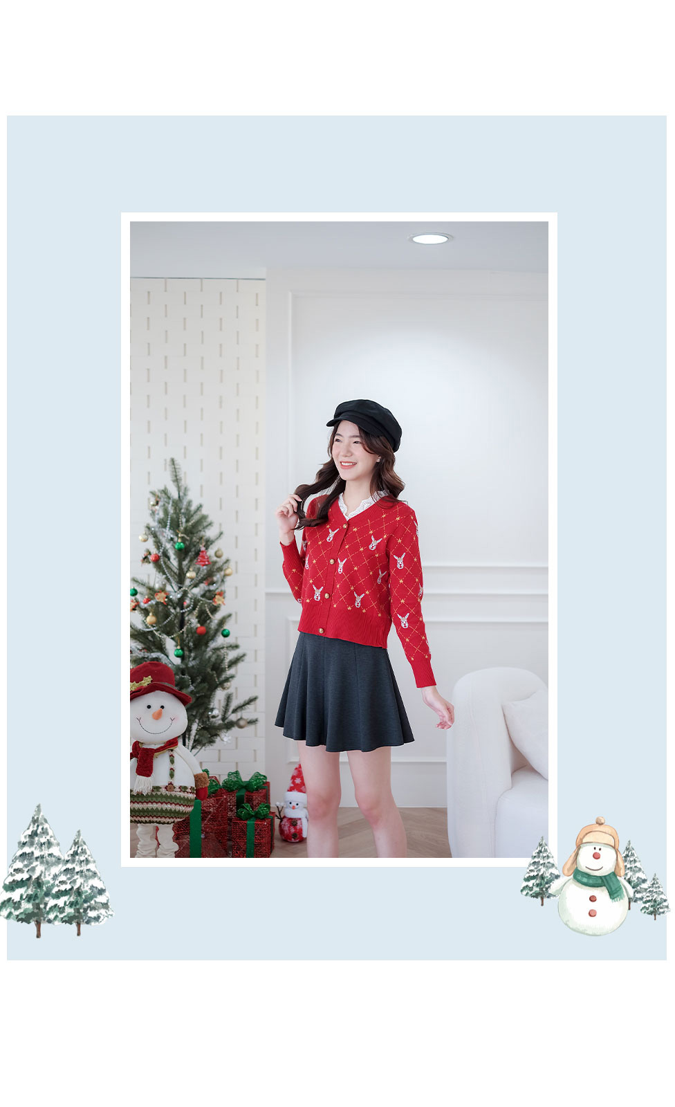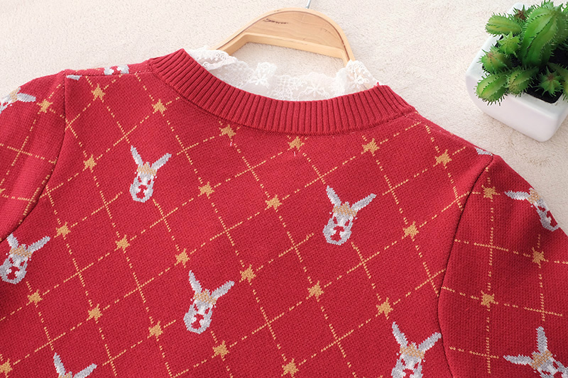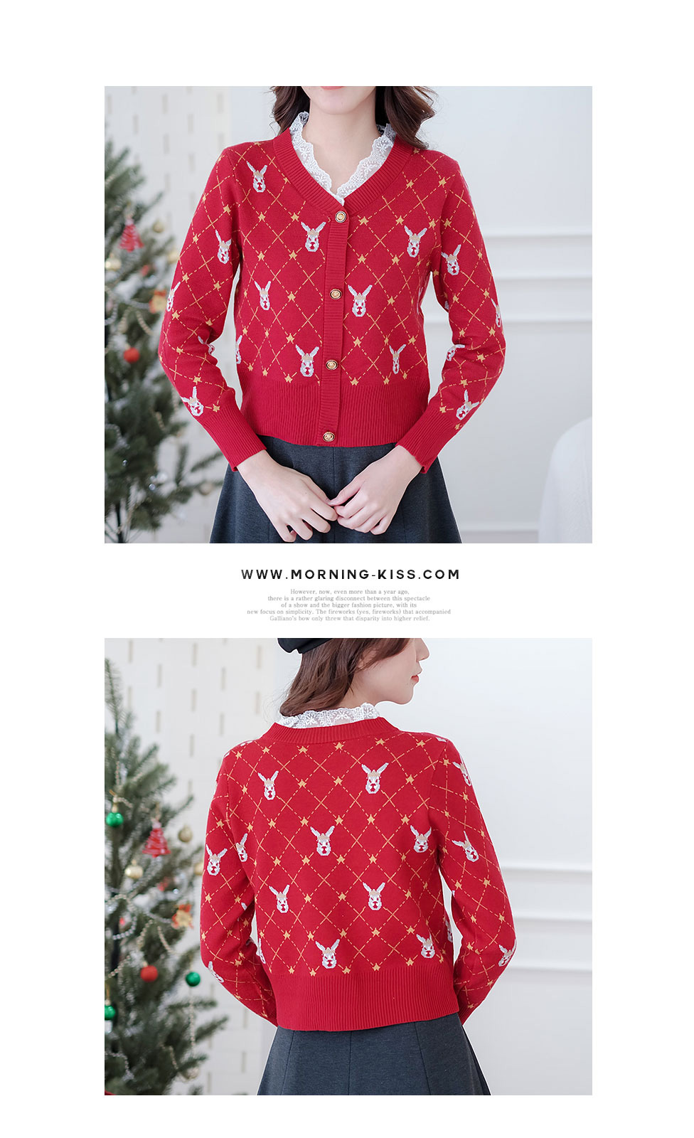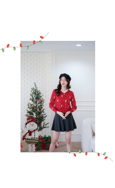 ไอเท็มแนะนำ เสื้อแขนยาวสีแดงทอลายเส้นสีเหลือง+หัวกวางรอบตัว เนื้อผ้า Knitting ยืดหยุ่นได้ดี เนื้อเบาใส่สบาย ผ้านิ่มไม่ร้อนไม่คัน ไม่ระคายผิว ช่วงคอต่อด้วยผ้าลูกไม้สีขาว แต่งกระดุมทองหลอกเรียงหน้า ได้ลุคคุณหนูสวยไฮโซจัดไปไม่ผิดหวัง