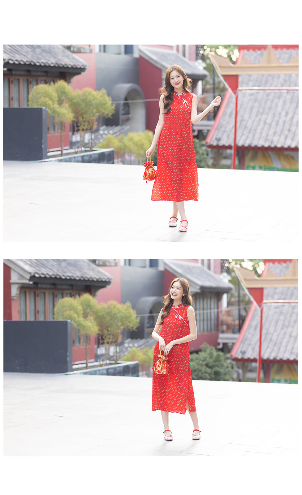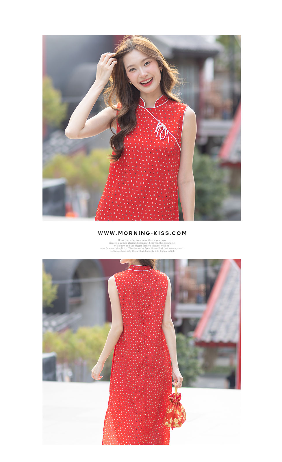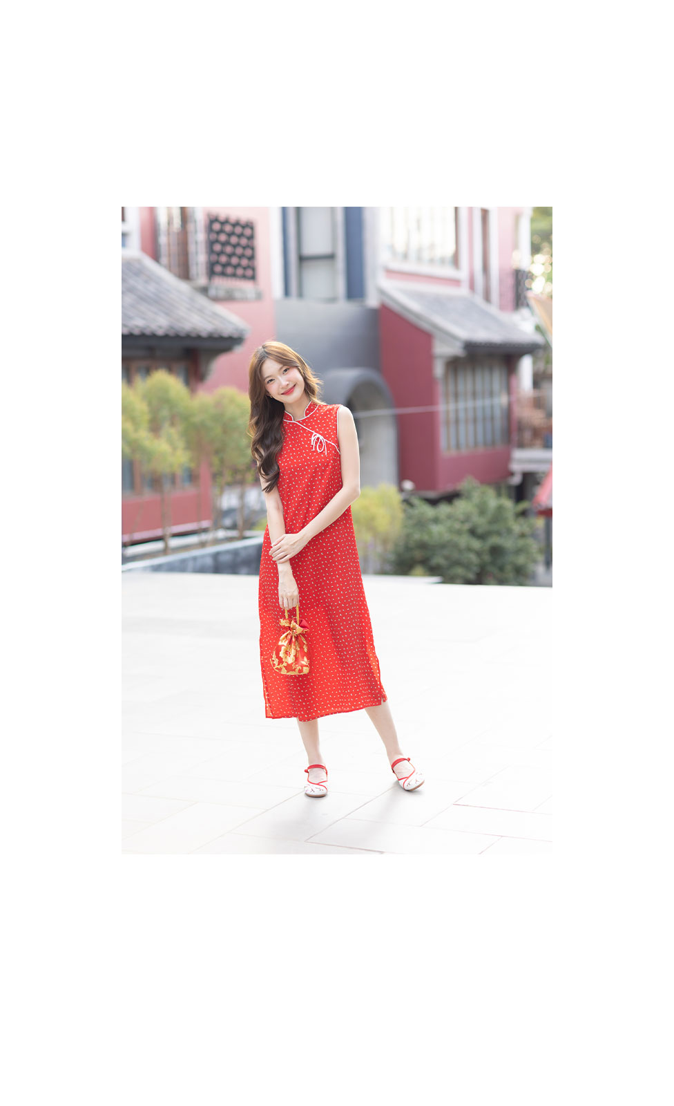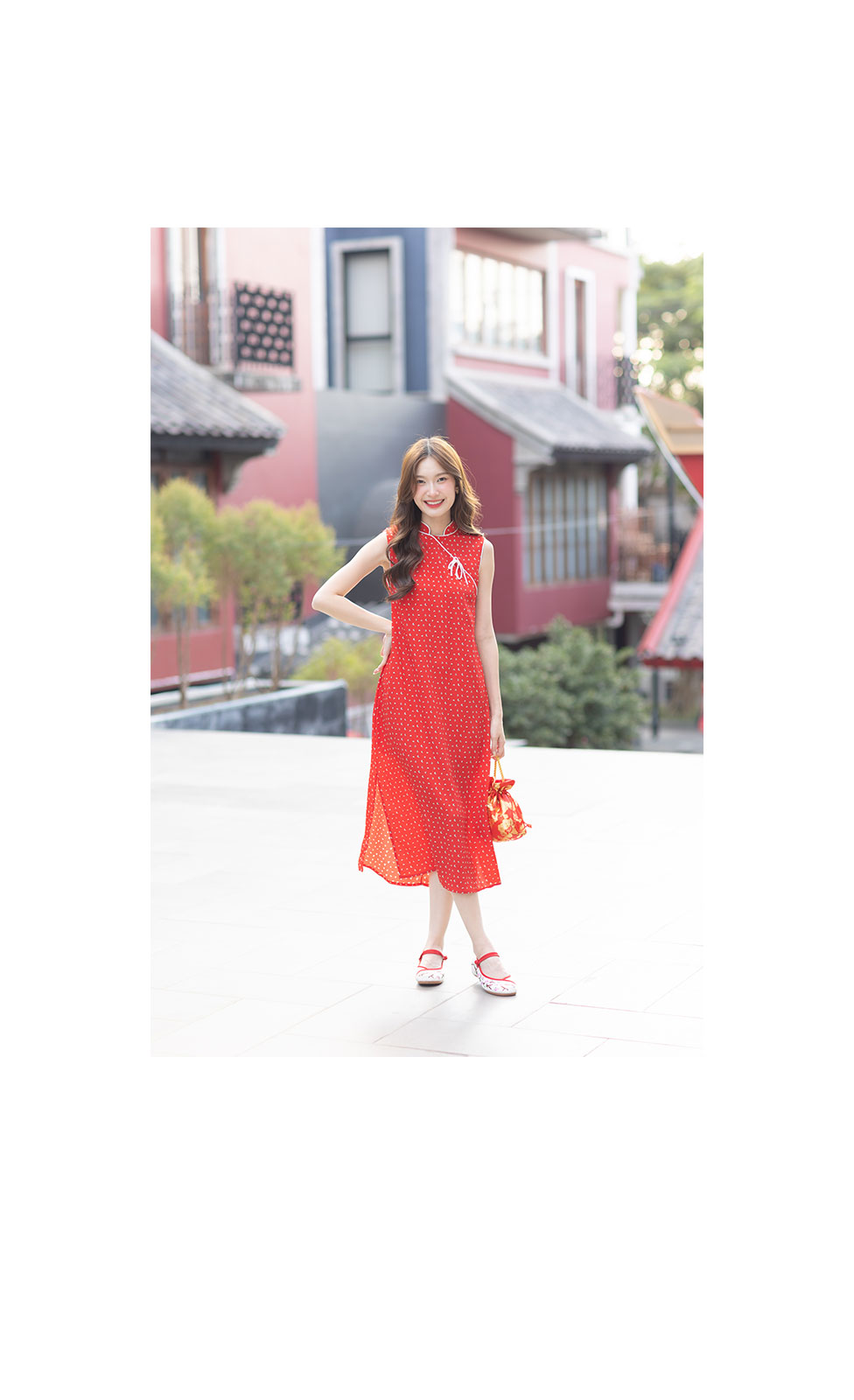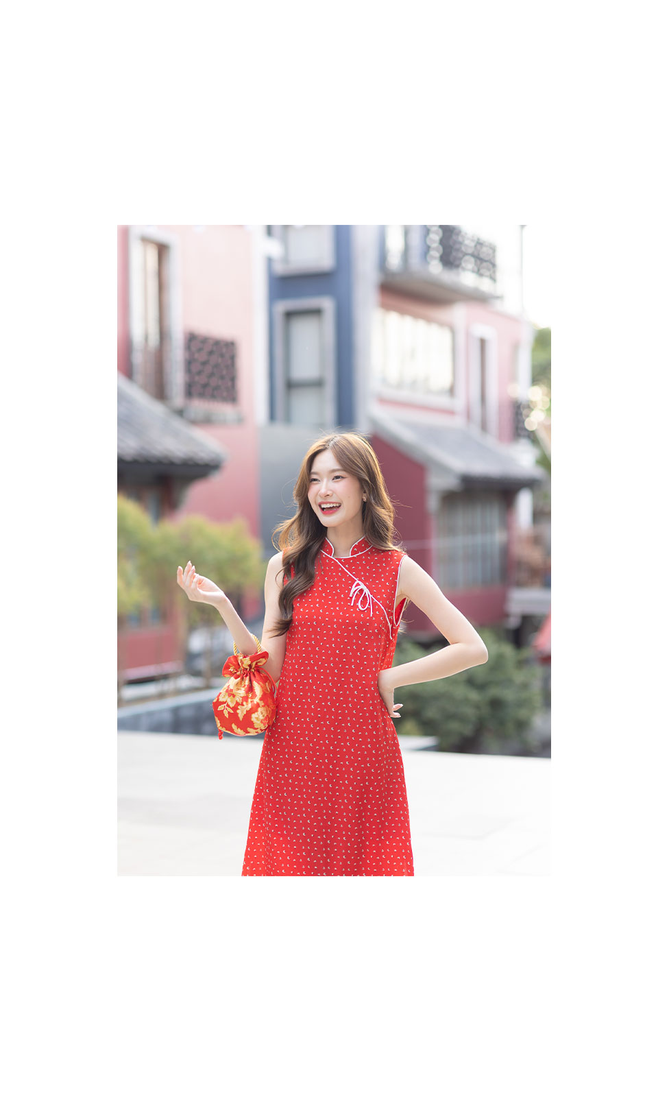 เดรสยาวแขนกุด รุ่นนี้น่ารักมาก ลายผ้าน่ารักสุดๆไปเลย ลายดอกเล้กสีขาว ตัดกับพื้นสีแดง ทรงปล่อยๆ ผ่าข้าง มีซับใน ช่วงอกเป็นแบบผูกโบว์ ซิปหลัง สวมใส่ง่ายใส่สบาย มีจำนวนจำกัด หมดแล้วหมดเลยนะคะ
