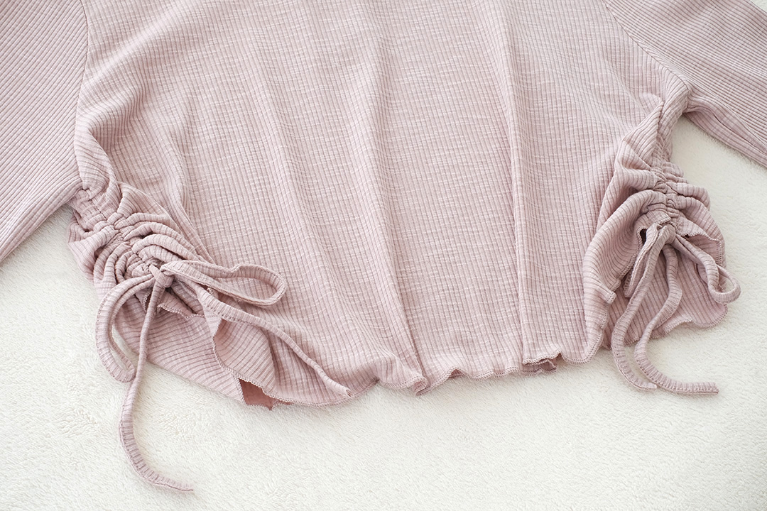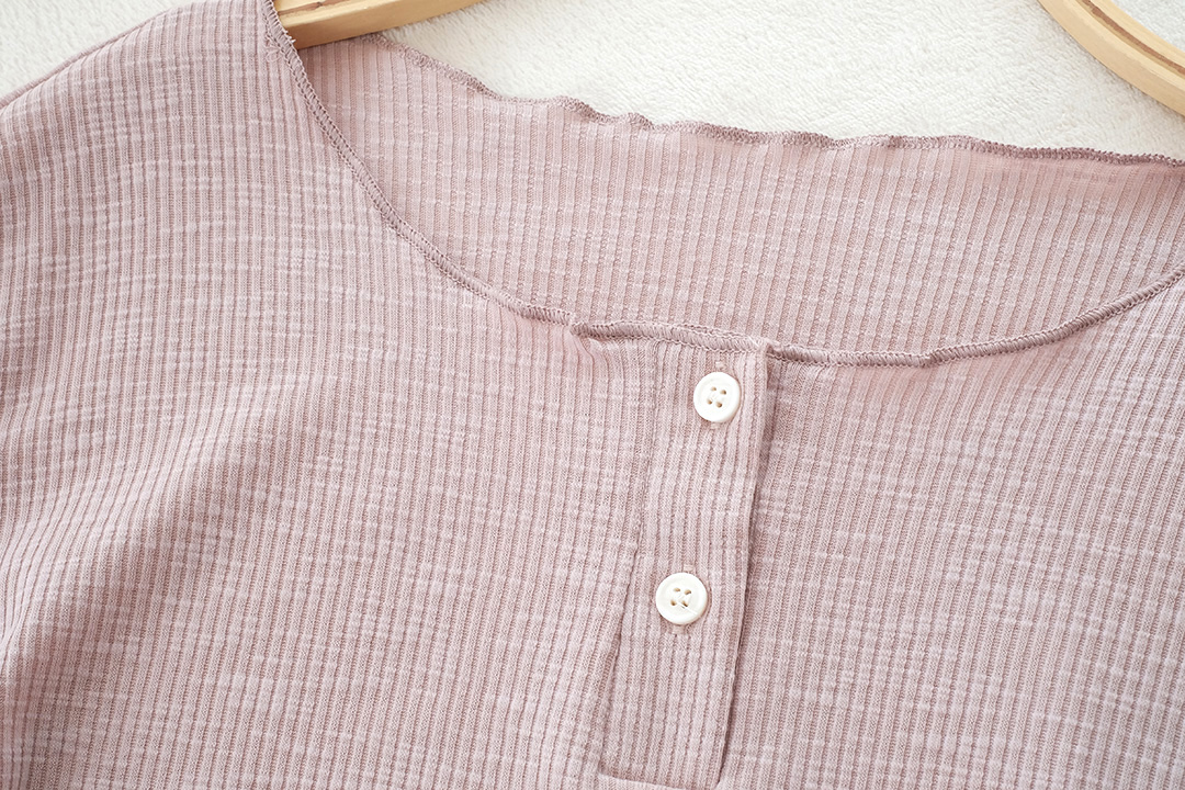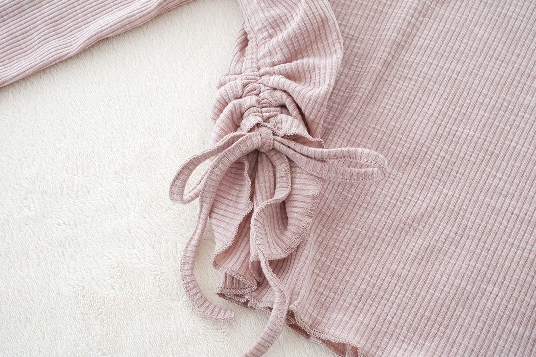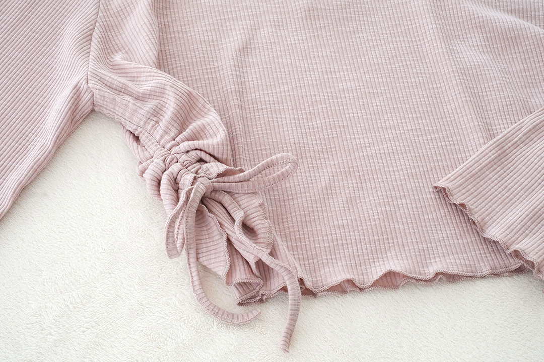 เสื้อแบบเรียบๆ สไตส์ Y2K แขนยาวโทนสีชมพูหม่น เนื้อผ้าล่อนเนื้อนิ่มใส่สบาย กระดุมคอด้านหน้า เก๋ๆด้วยด้านข้างเป็นแบบรูดดึงขึ้นมาตามสไตส์ชิคๆ แบบเรียบๆไม่เน้นดีเทลเยอะ แมทกับยีนส์ืรับประกันได้ลุควัยรุ่นแน่นอน