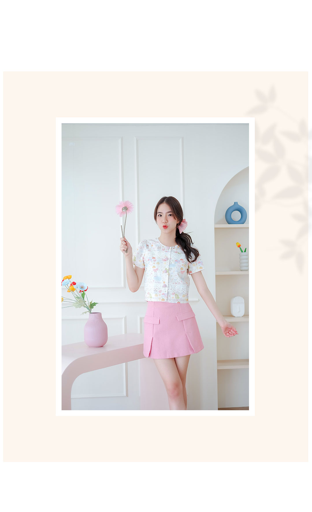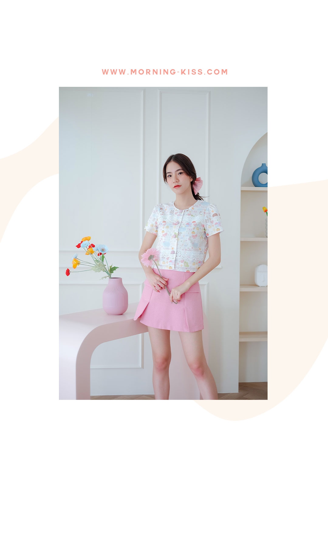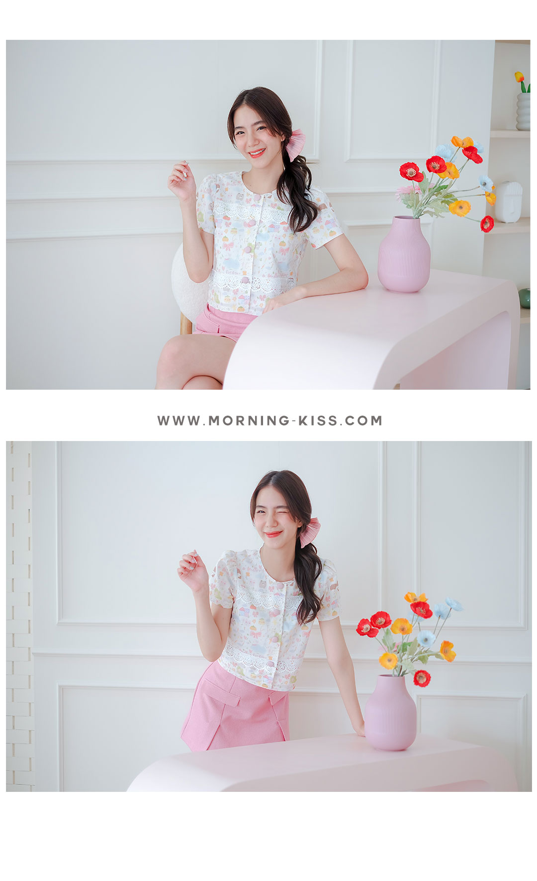 ไอเท็มแนะนำ ใครชอบสไตส์น่ารักๆ มาจัดรุ่นนี้ไปเลย เสื้อแขนสั้นสไตส์น่ารักหวานๆโทนสีขาวงานปริ้นลายผ้าเด็กน้อยน่ารักมาก แต่งเทปผ้าลูกไม้ กระดุมชมพูเรียงหน้า ซับในทั้งตัว เนื้อผ้าดี ใส่ทำงานก็ได้ใส่เที่ยวก็น่ารัก รุ่นนี้จัดไปไม่ผิดหวังจริงๆ