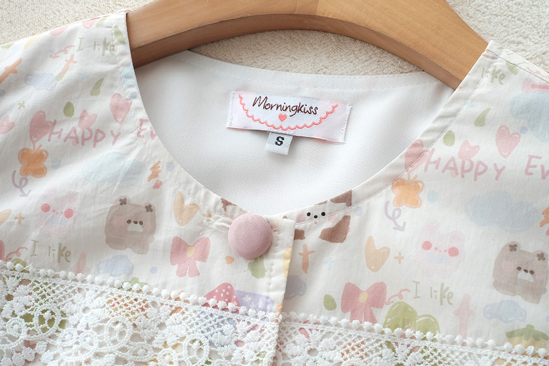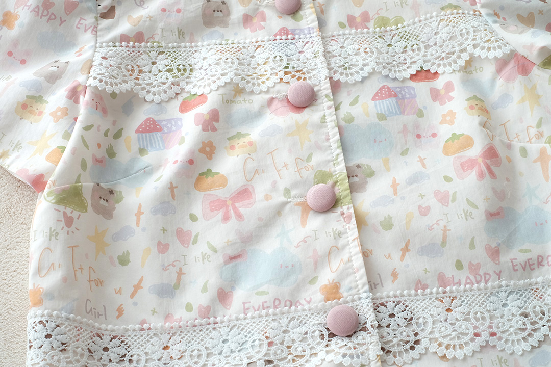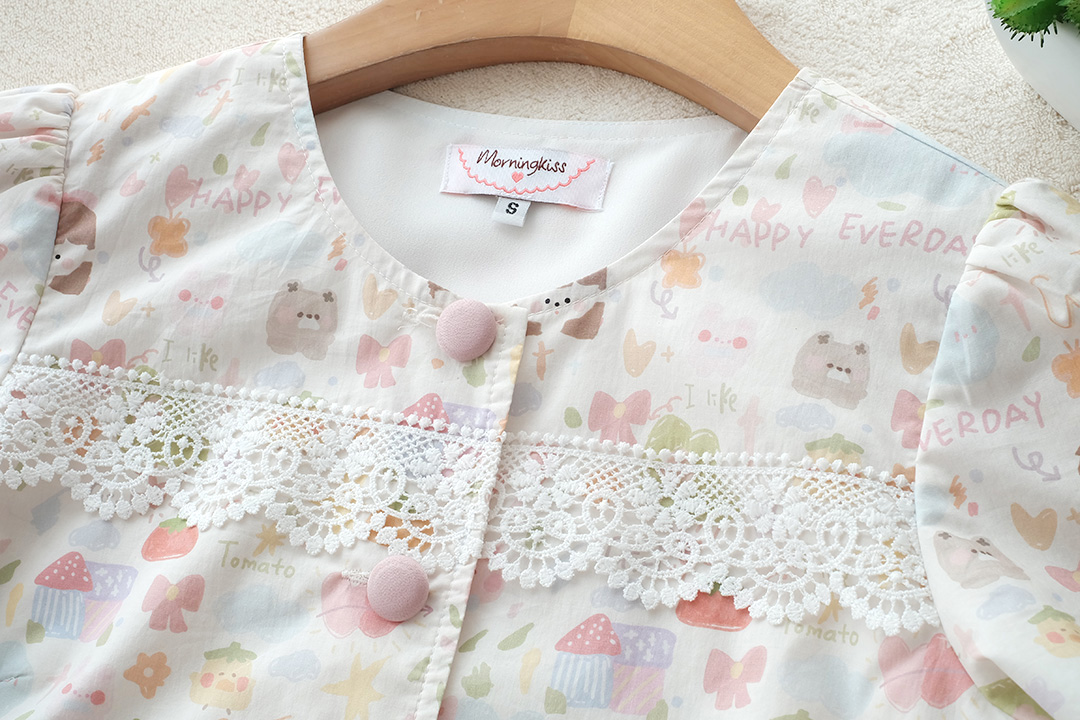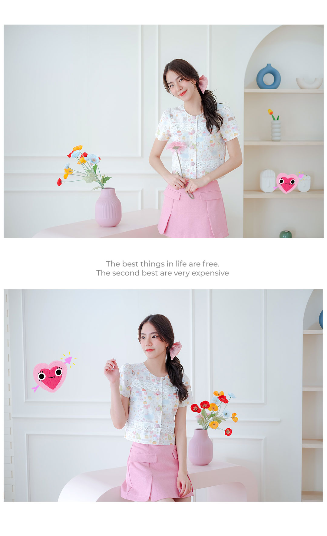 ไอเท็มแนะนำ ใครชอบสไตส์น่ารักๆ มาจัดรุ่นนี้ไปเลย เสื้อแขนสั้นสไตส์น่ารักหวานๆโทนสีขาวงานปริ้นลายผ้าเด็กน้อยน่ารักมาก แต่งเทปผ้าลูกไม้ กระดุมชมพูเรียงหน้า ซับในทั้งตัว เนื้อผ้าดี ใส่ทำงานก็ได้ใส่เที่ยวก็น่ารัก รุ่นนี้จัดไปไม่ผิดหวังจริงๆ
