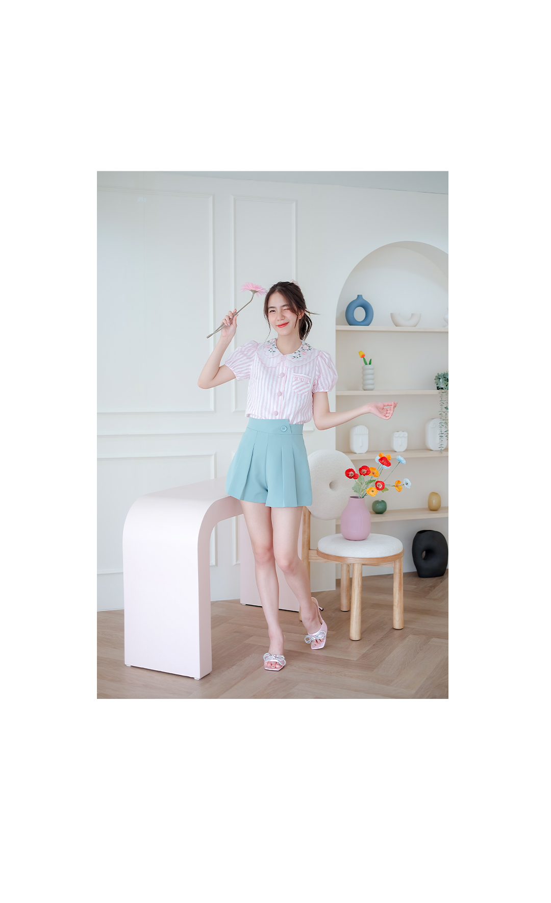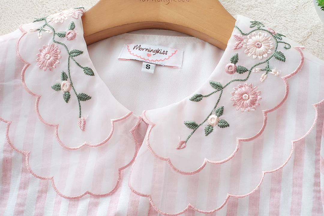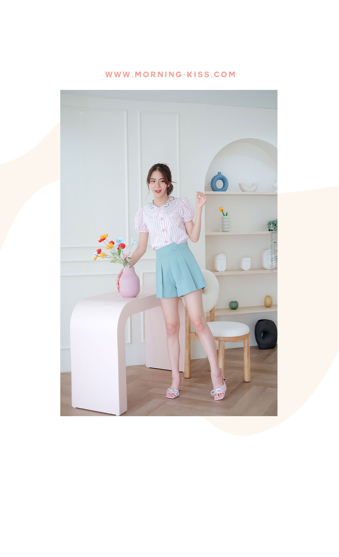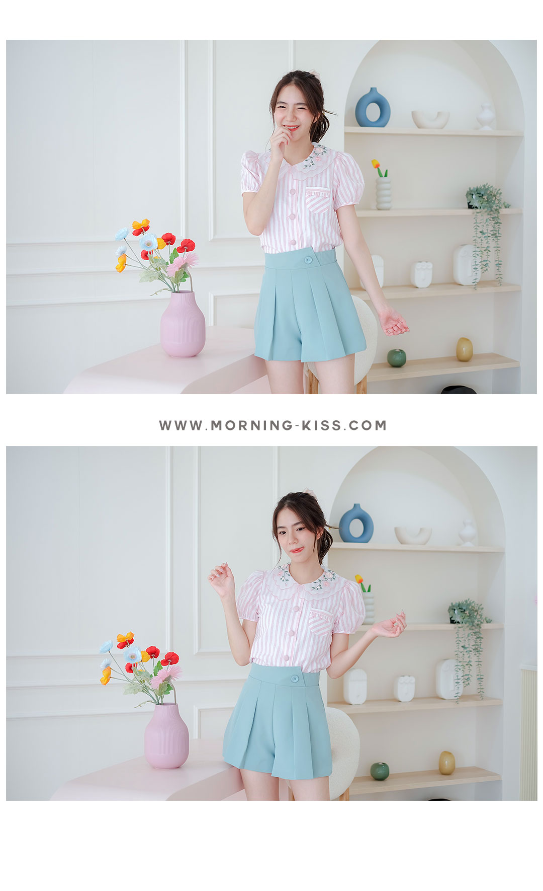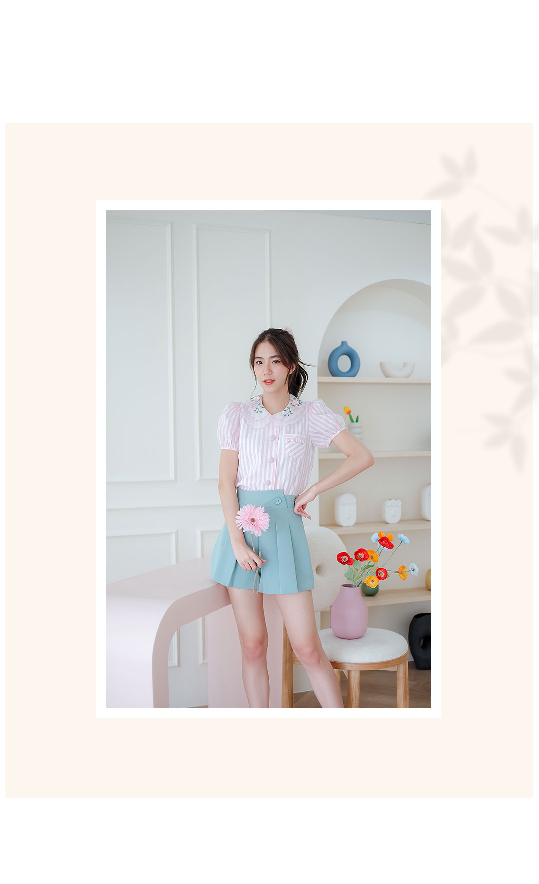 สวยหวานละมุนใจ พลาดไม่ได้เลยกับเสื้อลายริ้วสีขาวสลับชมพู ช่วงคอปก 2 ชั้นเป็นผ้าแก้วเนื้อนิ่มทำหยักๆกุ๊นขอบด้วยสีชมพู + แต่งงานปักดอกไม้ แขนทรงตุ๊กตาทำพองๆนิดๆได้ลุคน่ารัก มีซับใน ไม่แน่นดีเทลเยอะ เป็นโทนใส่ง่ายๆใส่เที่ยวใส่ทำงานก็สวยเริ่ด มีติดตู้ไว้ไม่ผิดหวังแน่นอน
