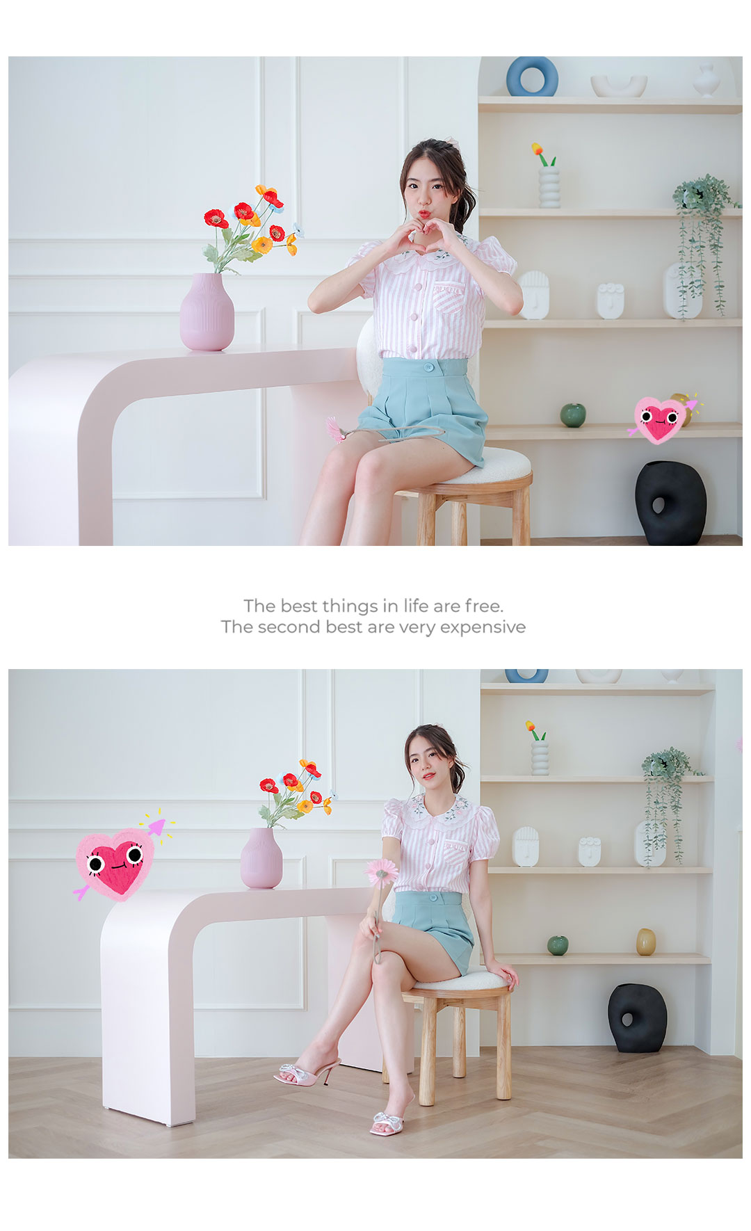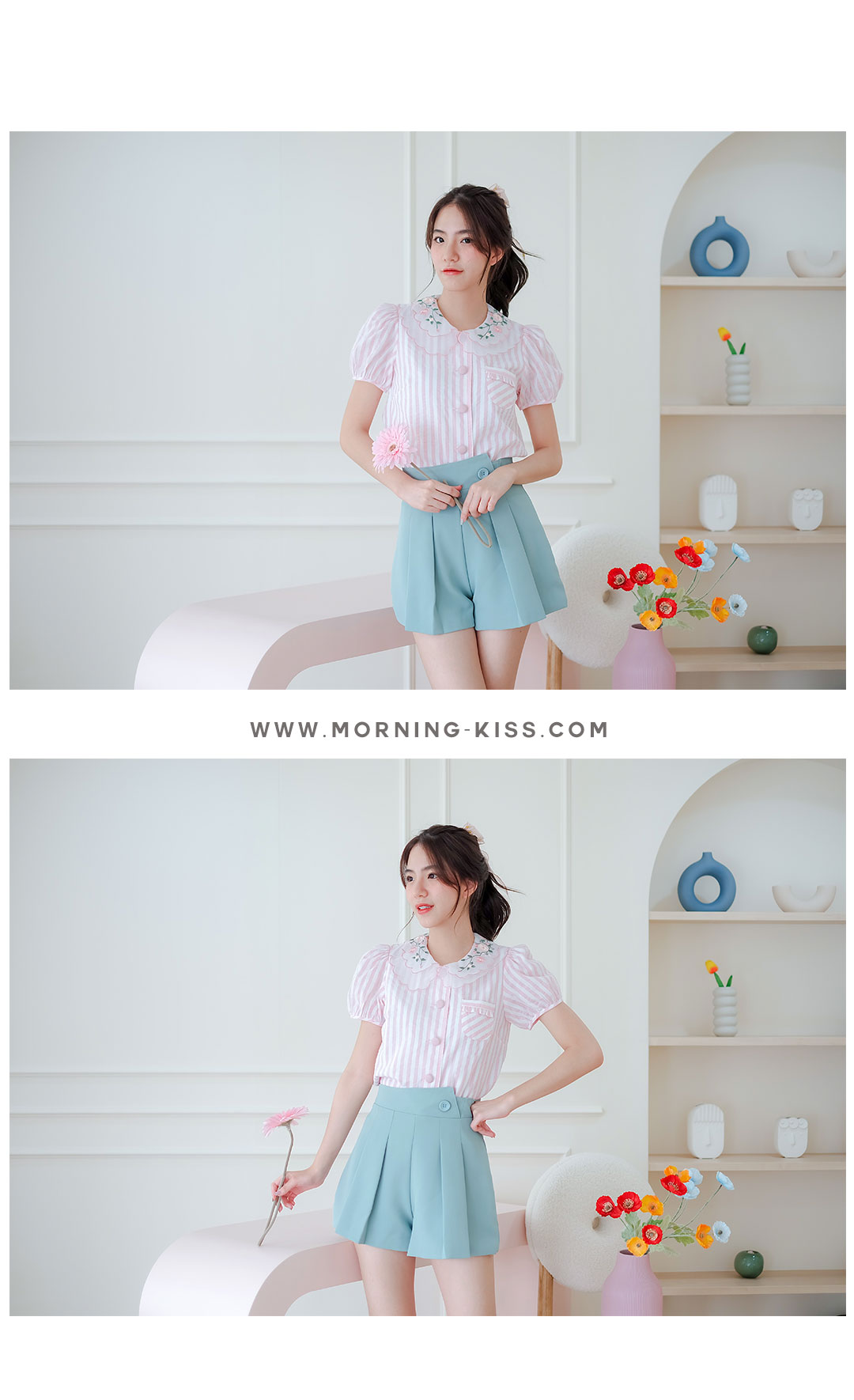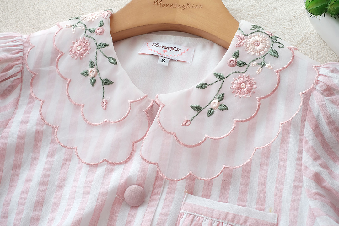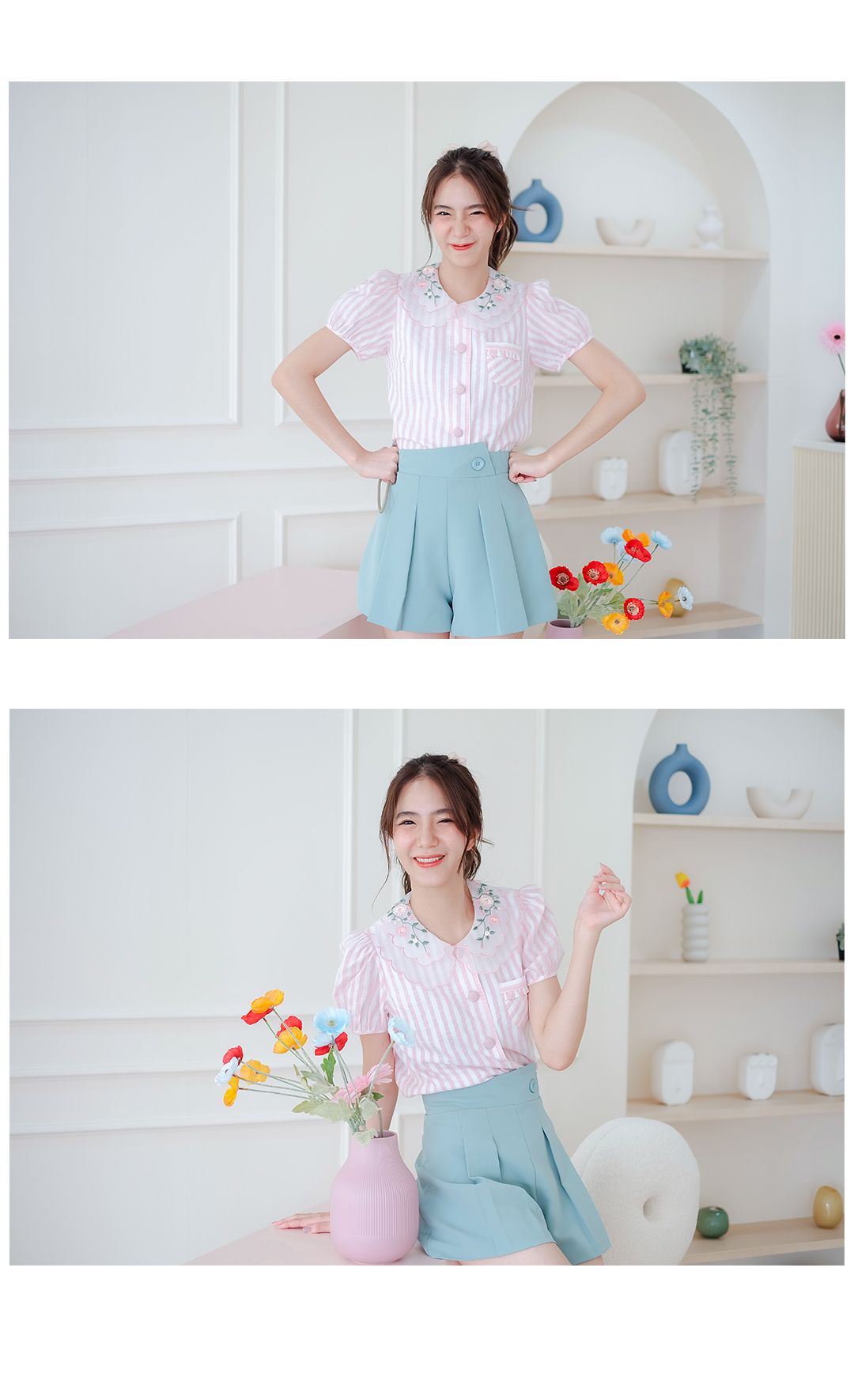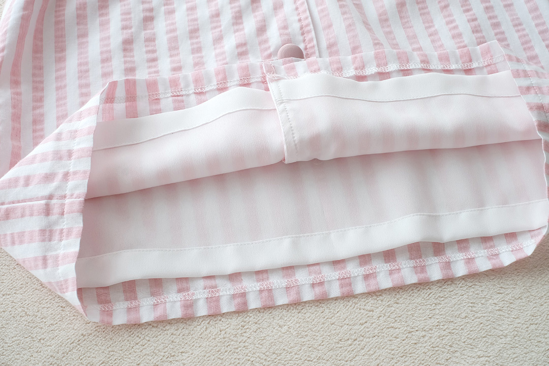 สวยหวานละมุนใจ พลาดไม่ได้เลยกับเสื้อลายริ้วสีขาวสลับชมพู ช่วงคอปก 2 ชั้นเป็นผ้าแก้วเนื้อนิ่มทำหยักๆกุ๊นขอบด้วยสีชมพู + แต่งงานปักดอกไม้ แขนทรงตุ๊กตาทำพองๆนิดๆได้ลุคน่ารัก มีซับใน ไม่แน่นดีเทลเยอะ เป็นโทนใส่ง่ายๆใส่เที่ยวใส่ทำงานก็สวยเริ่ด มีติดตู้ไว้ไม่ผิดหวังแน่นอน