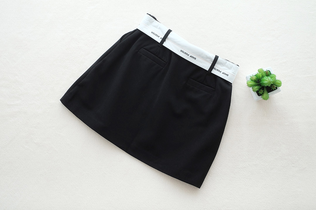 กรโปรงสั้นโทนสีดำ สไตส์ Y2K งานโชว์พับขอบเอวสีขาวปริ้นอักษรเล็กๆ แนวสปอร์ต ซิปหน้า มีซับใน แมทกับเสื้อผ้าได้หลากหลาย ลุคชิคๆเท่ๆ จัดไปไม่ผิดหวัง