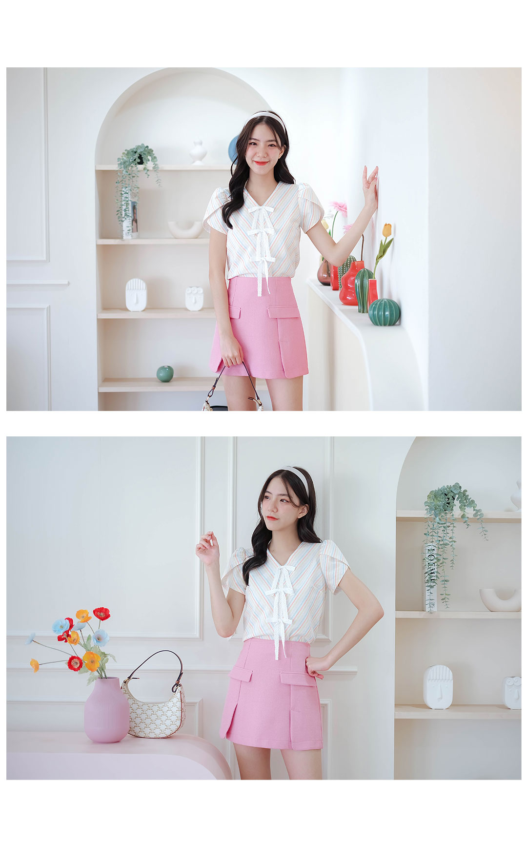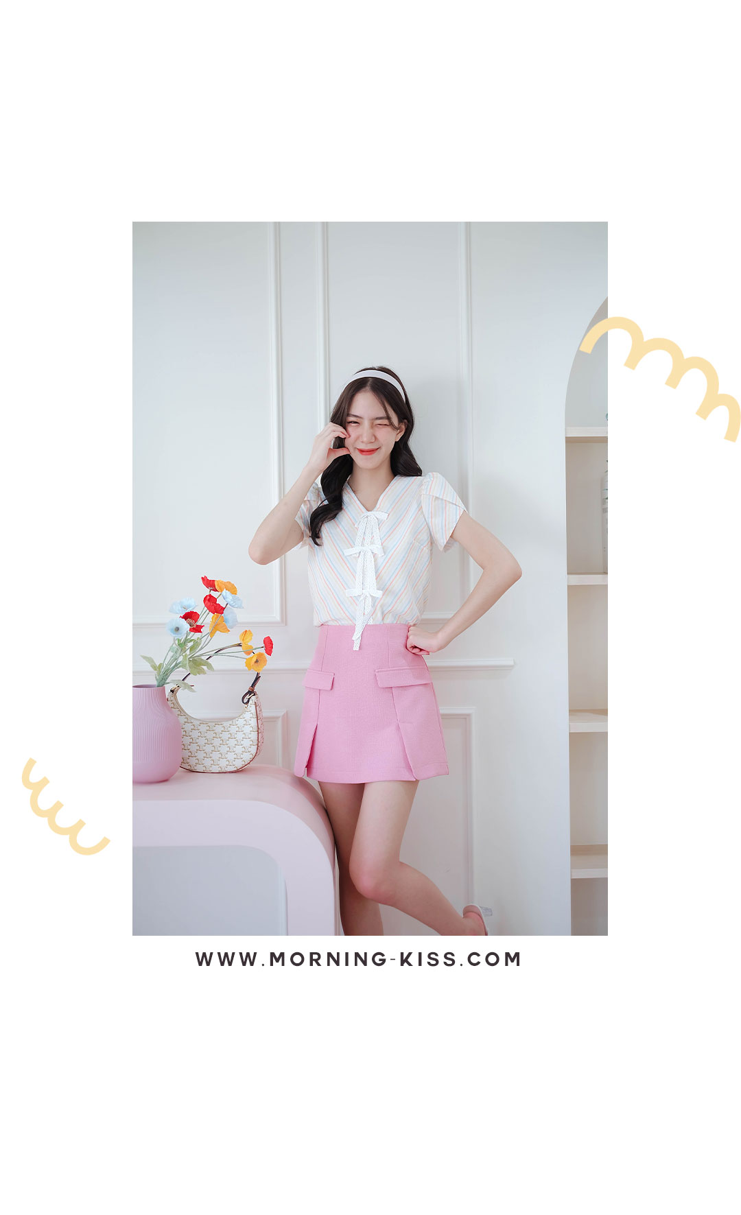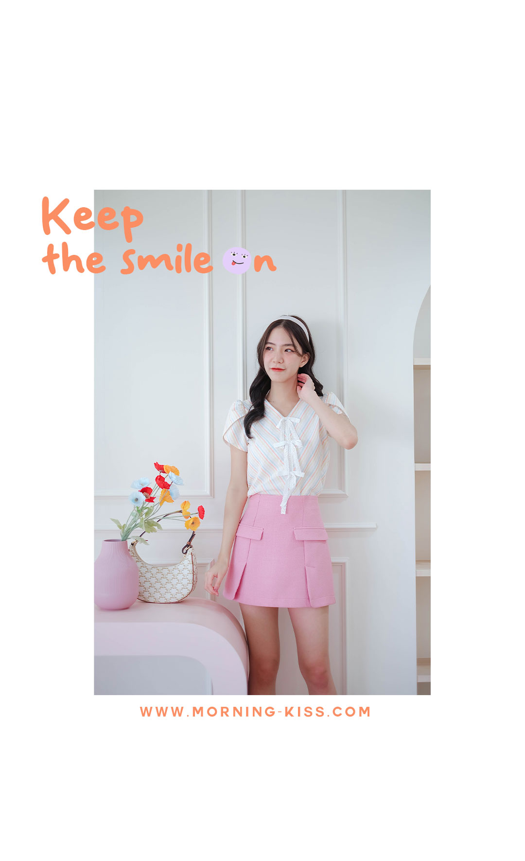 ไอเท็มแนะนำ สวยตะโกน กับเสื้อแขนสั้นตัดเย็บแบบวางลายเฉลียง สลับโทนสีพาสเทลหวานๆ แขนกลีบบัว แต่งโบว์ผ้าลูกไม้เรียงด้านหน้า สวยหวานละมุนซับในทั้งตัว แมทกับกระโปรงหรือกางเกงก็น่ารัก ใส่ทำงานก็ได้ใส่เที่ยวก็น่ารัก รุ่นนี้จัดไปไม่ผิดหวังแน่นอน