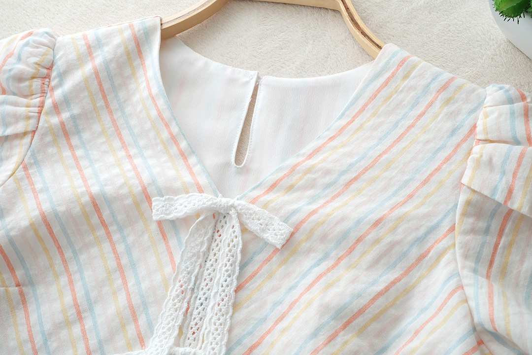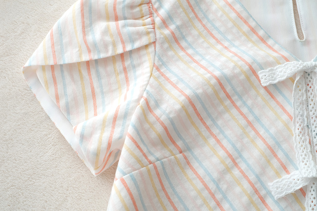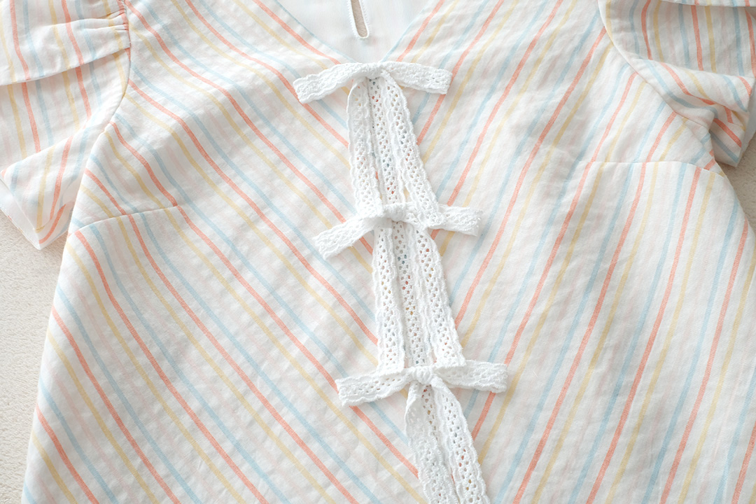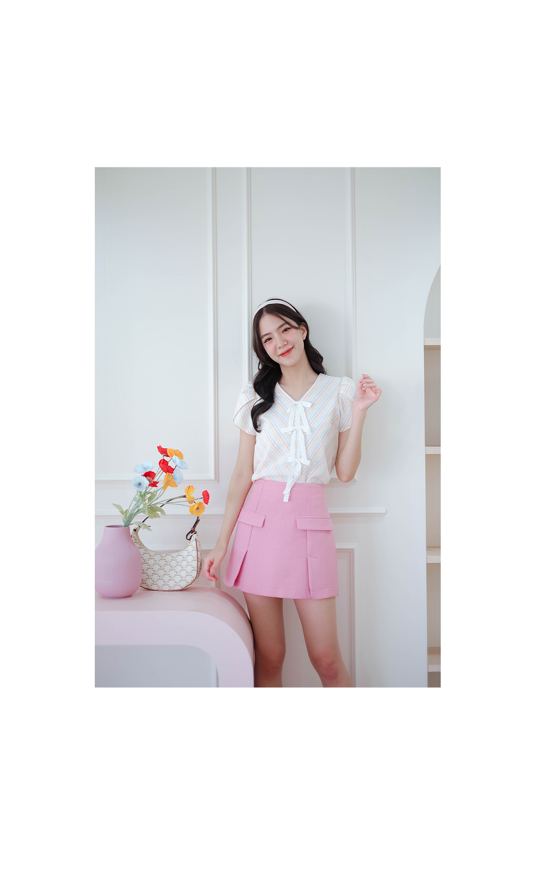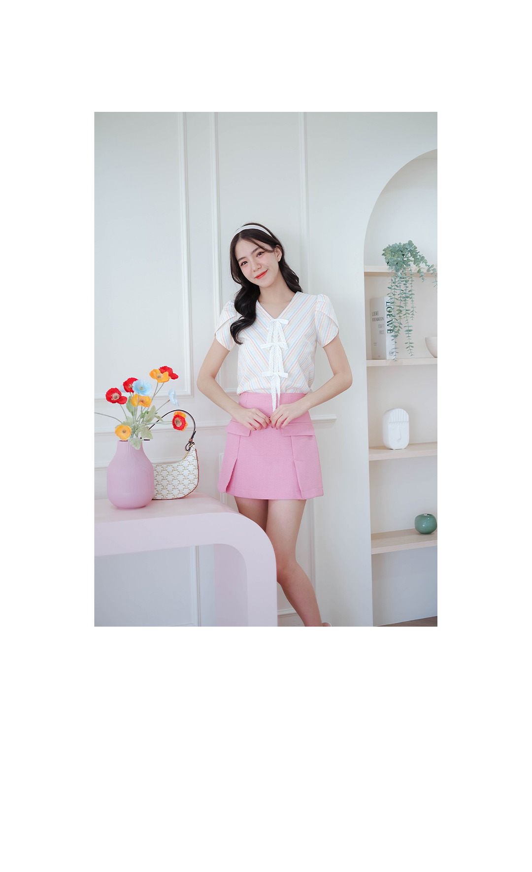 ไอเท็มแนะนำ สวยตะโกน กับเสื้อแขนสั้นตัดเย็บแบบวางลายเฉลียง สลับโทนสีพาสเทลหวานๆ แขนกลีบบัว แต่งโบว์ผ้าลูกไม้เรียงด้านหน้า สวยหวานละมุนซับในทั้งตัว แมทกับกระโปรงหรือกางเกงก็น่ารัก ใส่ทำงานก็ได้ใส่เที่ยวก็น่ารัก รุ่นนี้จัดไปไม่ผิดหวังแน่นอน