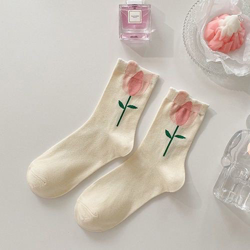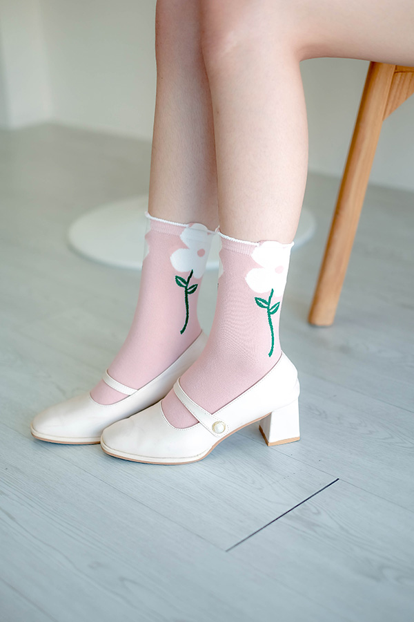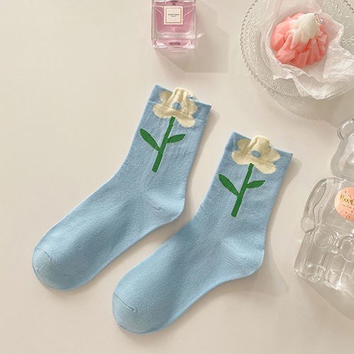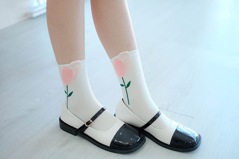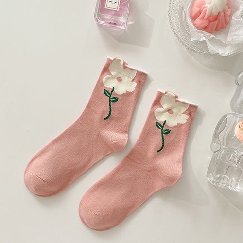 ถุงเท้าลายดอกไม้ น่ารักมาก สไตส์ญี่ปุ่น ผ้า Cotton เนื้ออย่างดี ยืดหยุ่นได้เยอะ