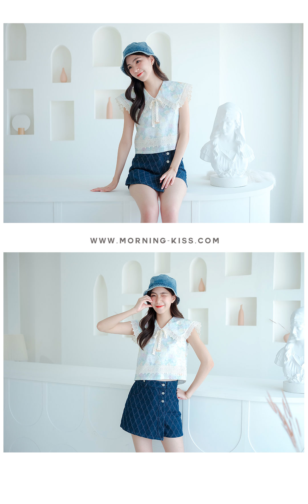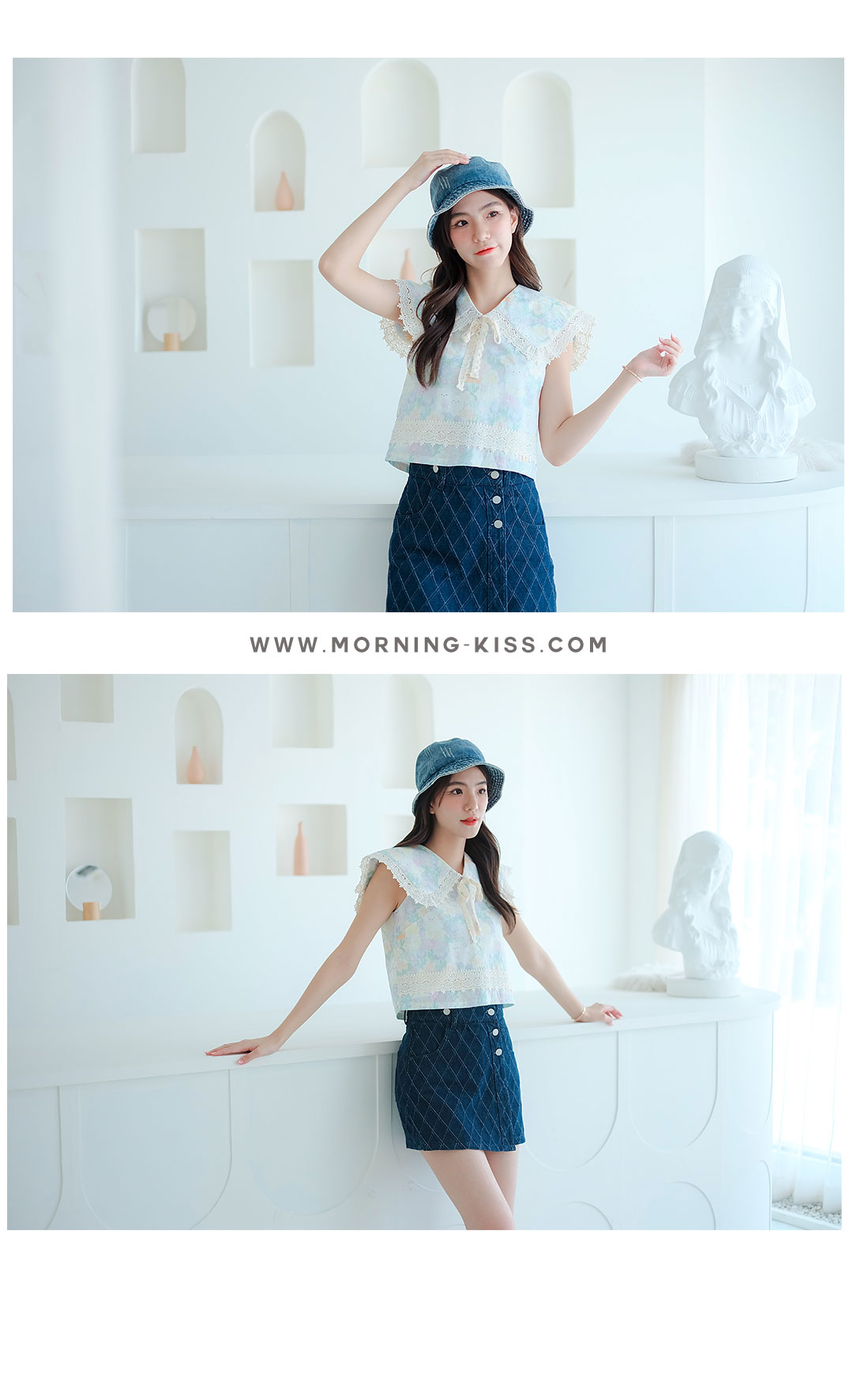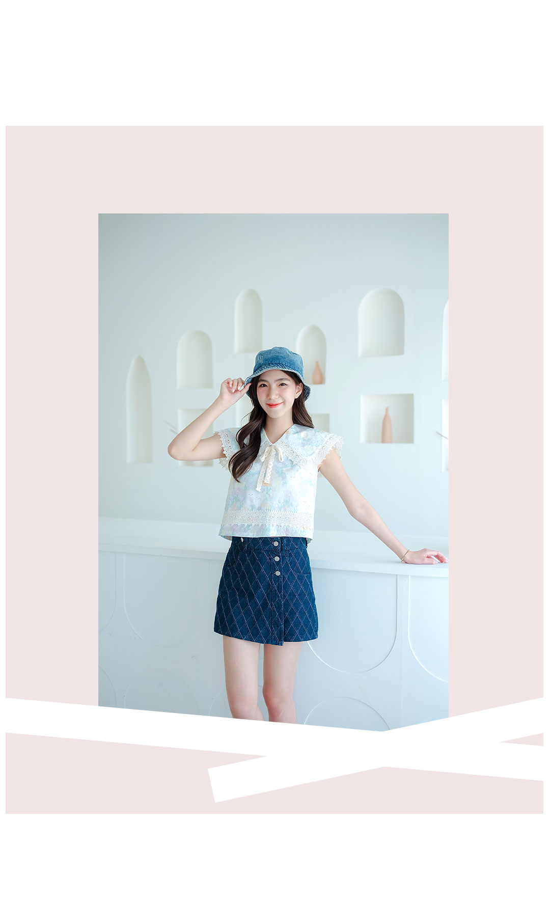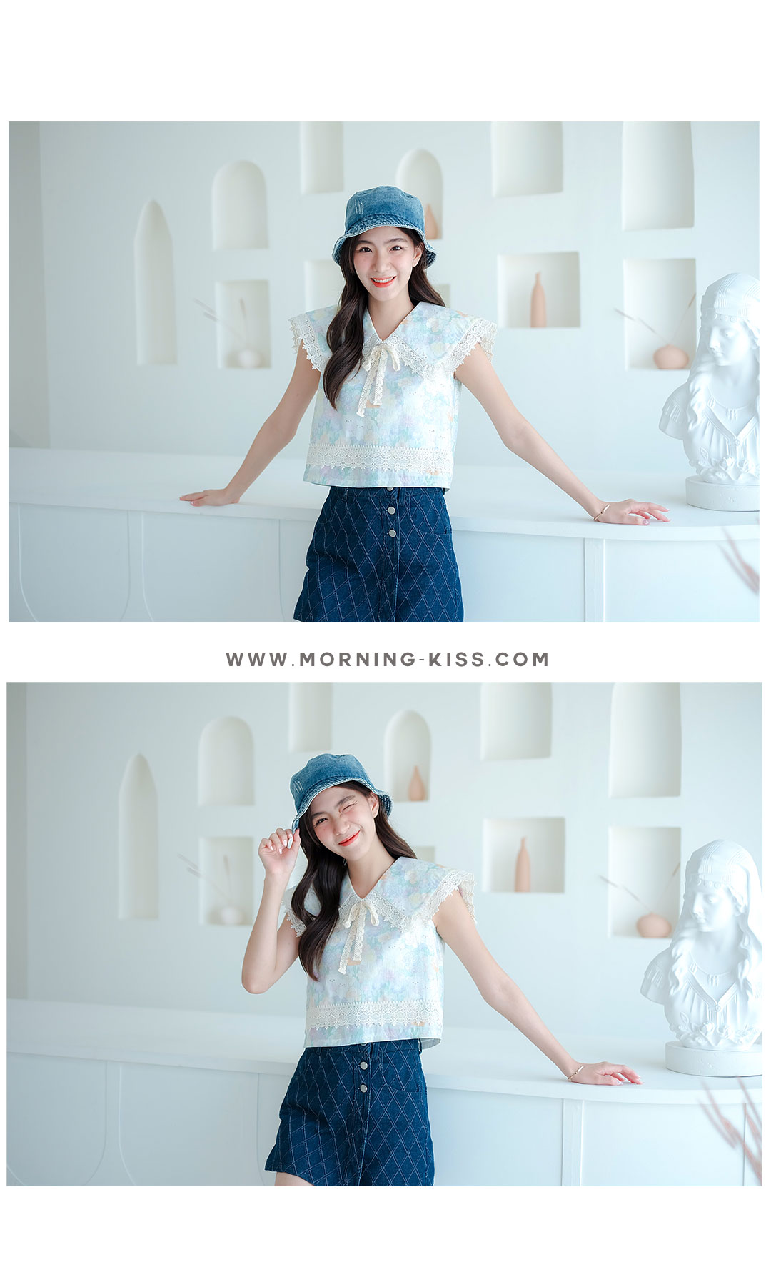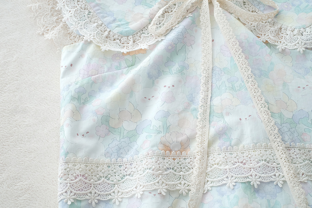 Must Have Item กับเสื้อแขนกุดคอปก งานปริ้นลายหมีน้อยในสวนสีสวยหวานมากๆ ช่วงคอมีสายผ้าลูกไม้ผูกเป็นโบว์เก๋ๆ แต่งแถบด้วยผ้าลูกไม้น่ารักๆ มีซับใน มีซิปซ่อนด้านหลัง ลุคสดใส ดีเทลนอัดแน่นเลย แมทกับกระโปรงหรือกางเกง ใส่เที่ยวใส่ทำงานได้หลากหลายโอกาสเลย