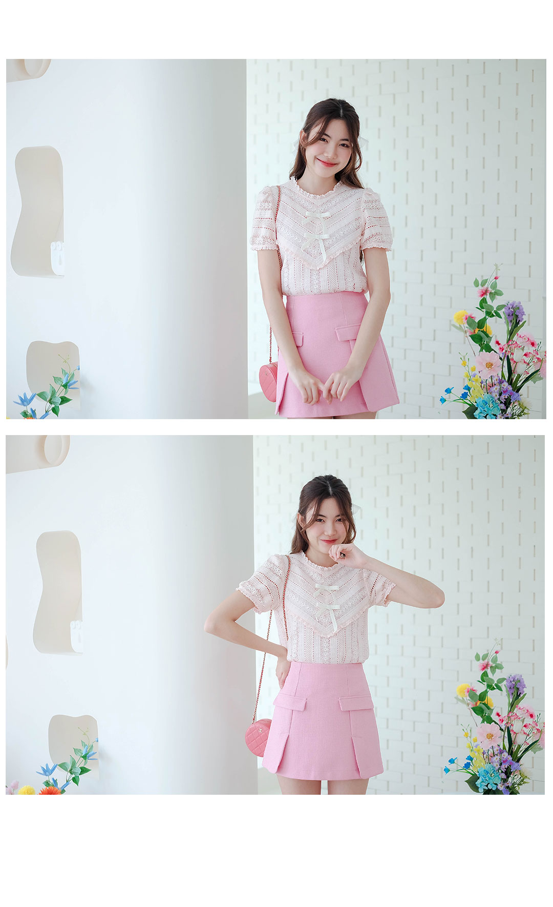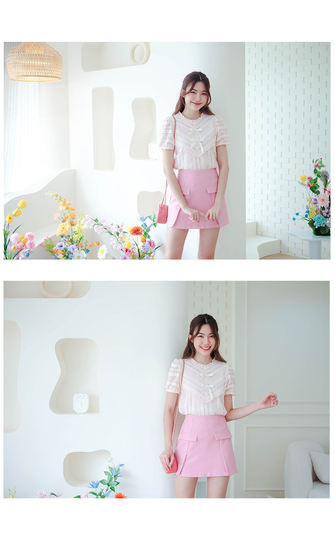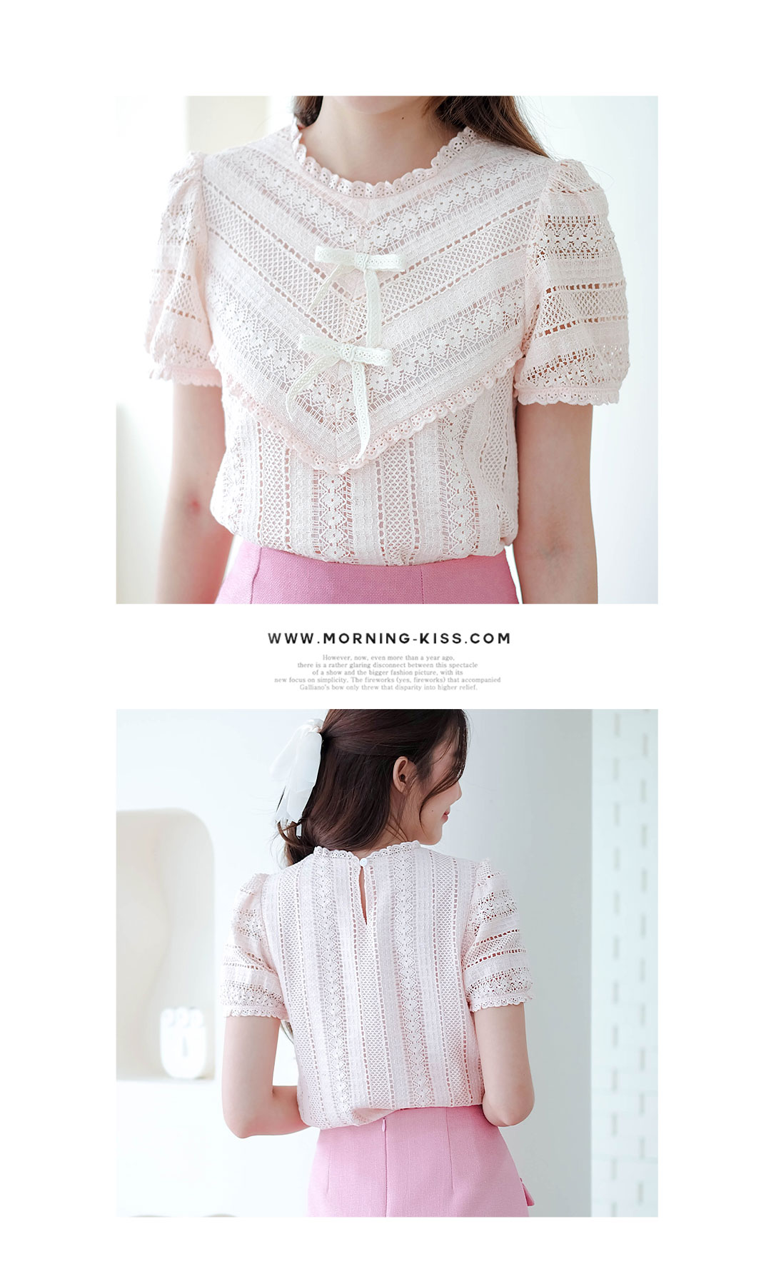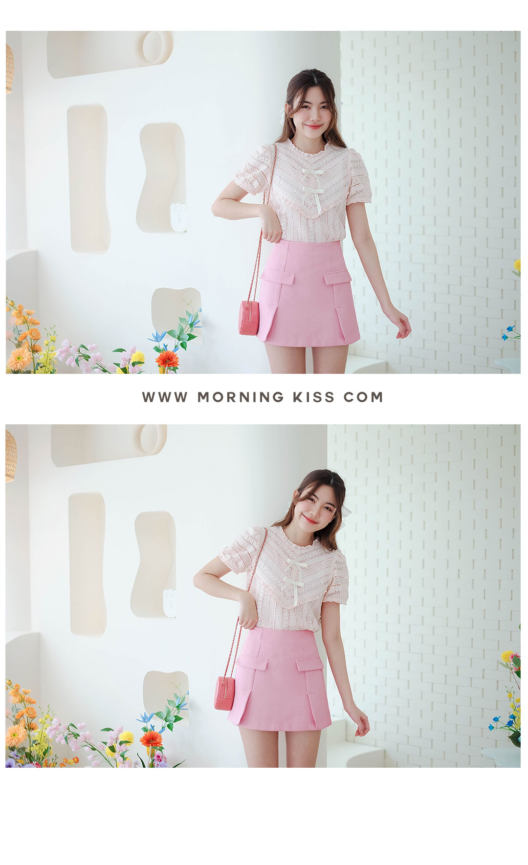 สาวหวานต้องไม่พลาดไอเท็มนี้กับเสื้อแขนสั้นโทนสีชมพูงานฉลุลายลูกไม้ ช่วงคอดีไซน์วางผ้าเฉลียงแต่งระบายเล็กๆ มีเข็มกลัดโบว์คู่ให้ด้วยนะคะ (สามารถถอดออกได้) มีซับใน แมทกับกระโปรงหรือกางเกงก็น่ารัก งานสวยหวานมากไม่อยากให้พลาดเลย ใส่เที่ยว ใส่ทำงานได้ทุกโอกาส