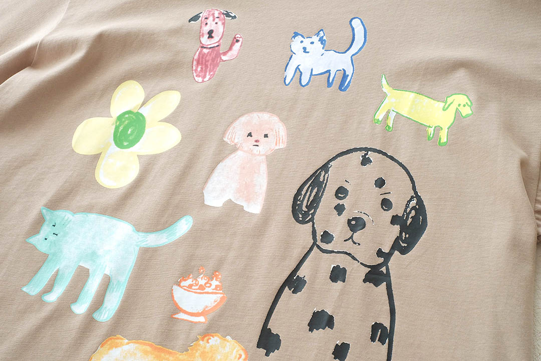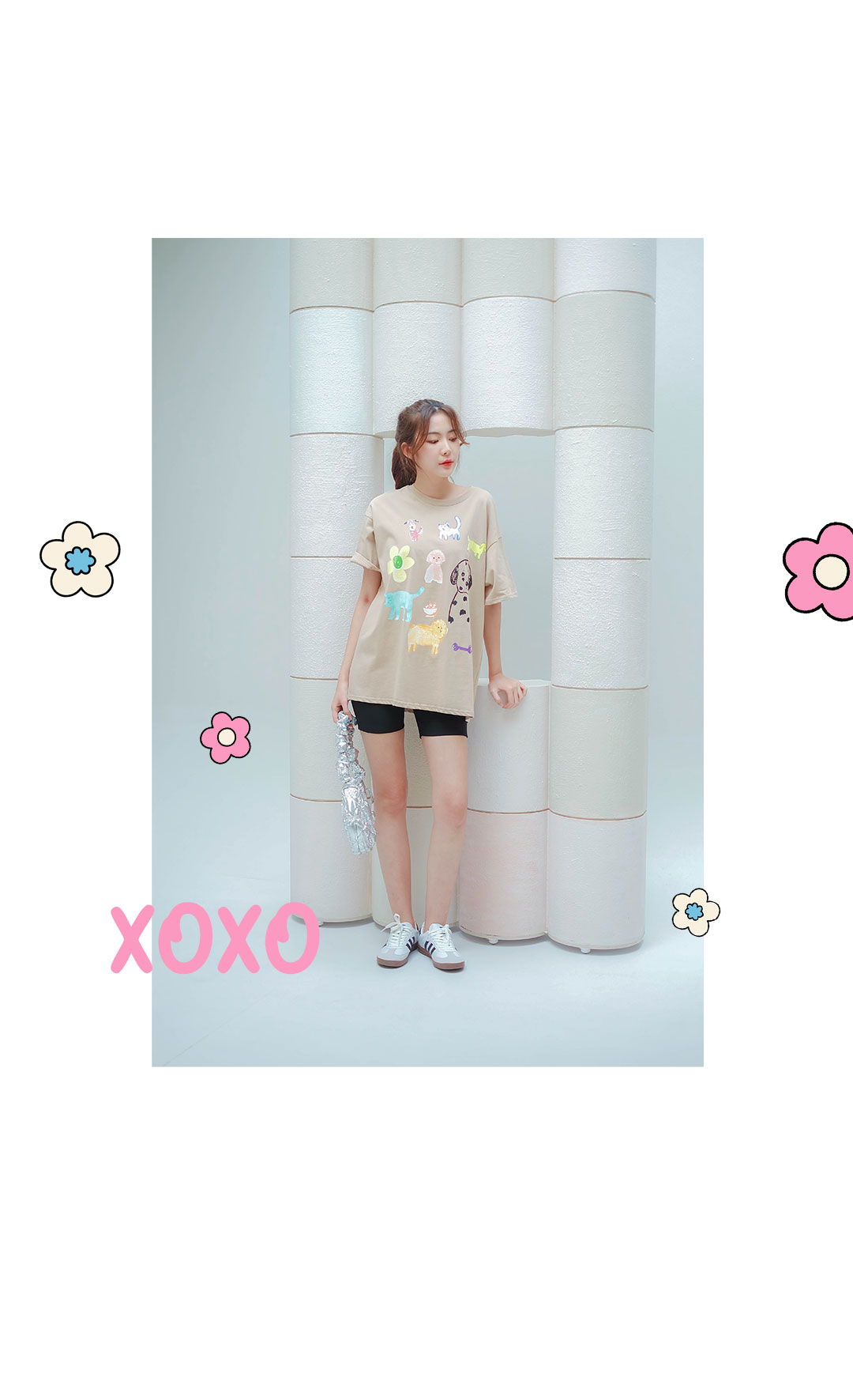 ลุคเท่ๆปนน่ารักกับเสื้อยืดแขนสั้นโทนสีเบจ งานปริ้นลายน้องหมา น้องแมว ดอกไม้ น่ารักโดดเด่น เนื้อผ้า Cotton เนื้อเกรดดีมากๆ ใส่สบายไม่ร้อน ลุคเท่ๆใส่น่ารักๆ รับประกันว่าจะต้องถูกใจ เนื้อผ้าดีจริงๆ ใส่อยู่บ้านก็สบาย หรือใส่เที่ยวก็น่ารักมากๆเลย