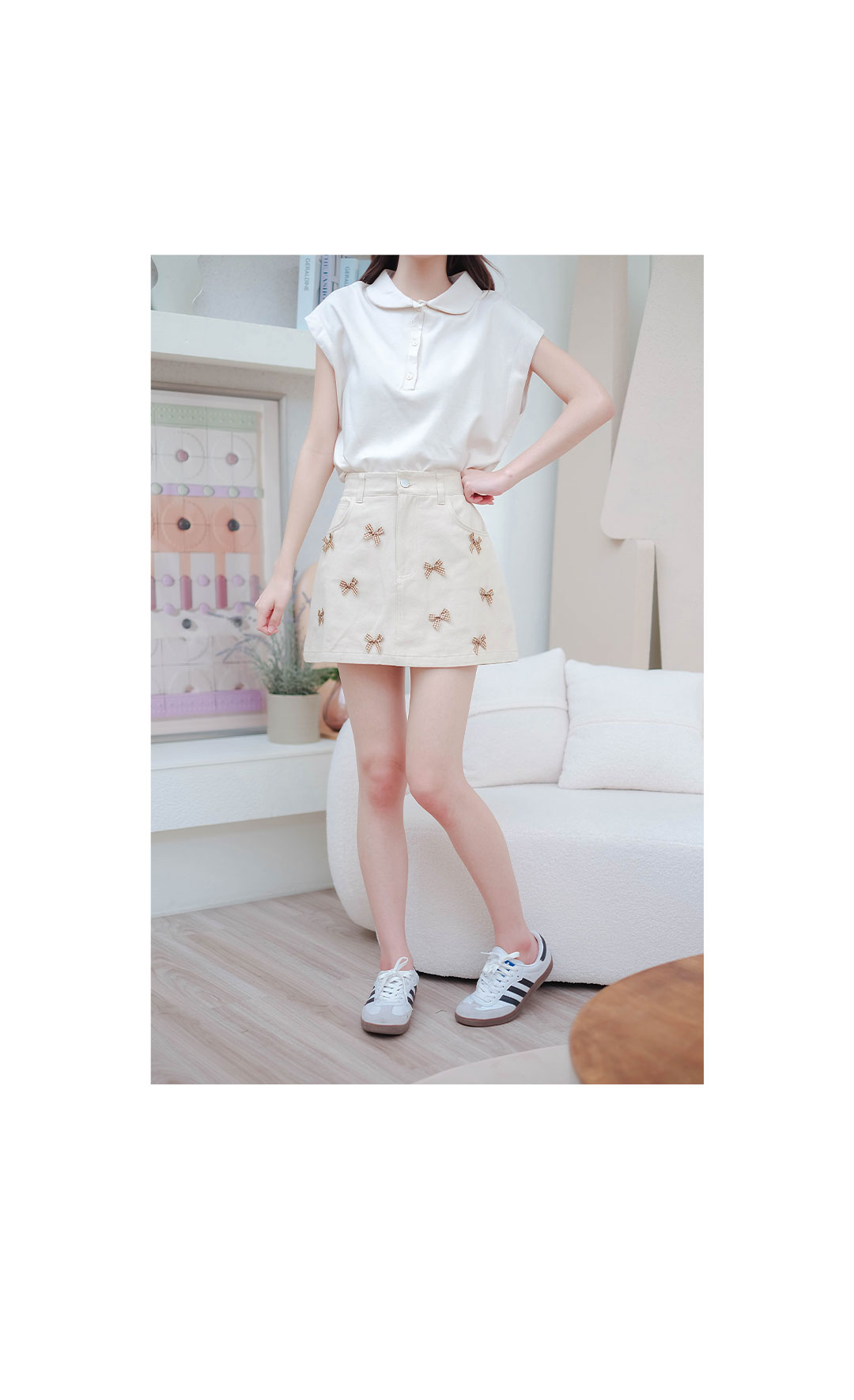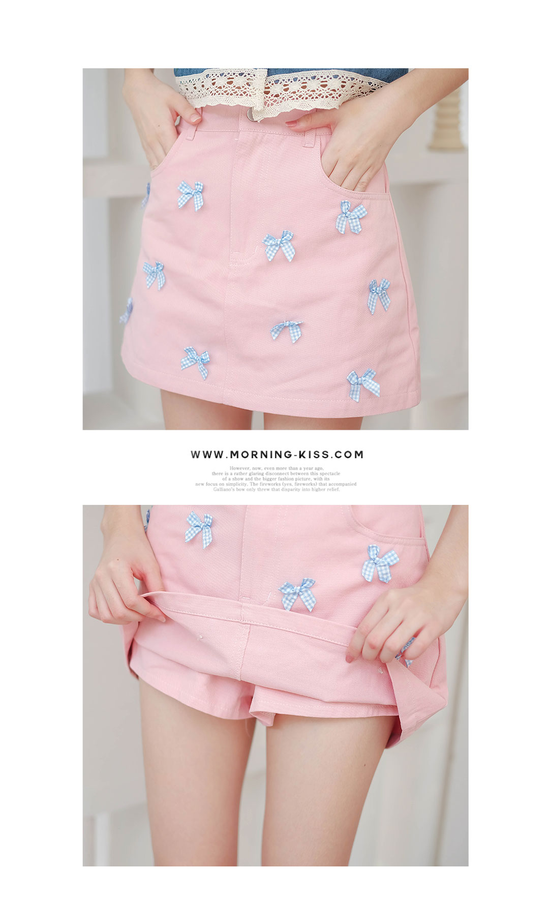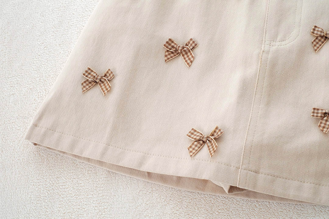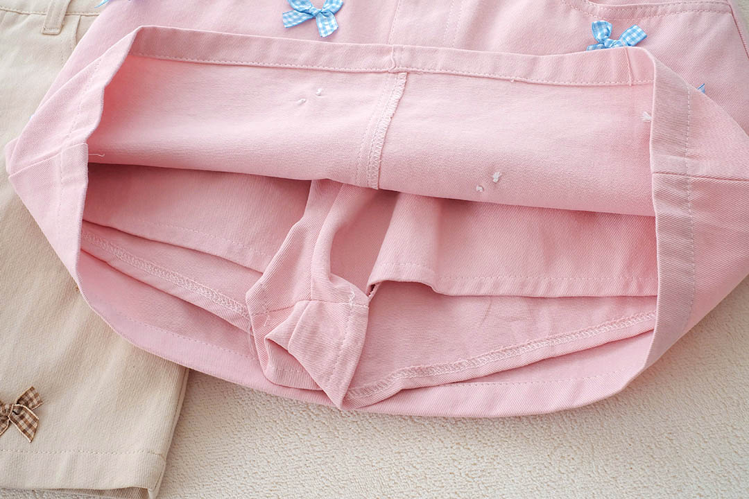 กระโปรงกางเกงขาสั้นรุ่นนี้น่ารักมากๆ ตัวกระโปรงด้านหน้าติดโบว์ลายสก็อตเล็กๆน่ารักๆ ความยาวกำลังน่ารัก ด้านในเป็นกางเกงไม่ต้องกลัวโป๊ ทรงสวย แมทกับเสื้อผ้าได้หลากหลาย จัดไปไม่ผิดหวัง