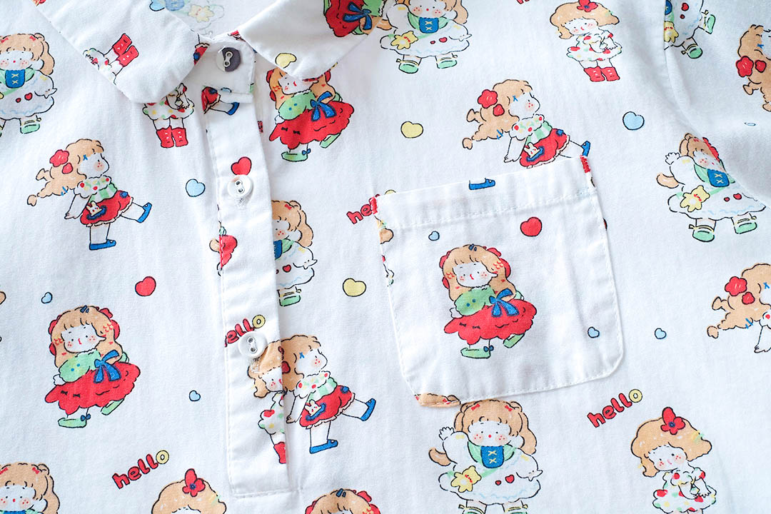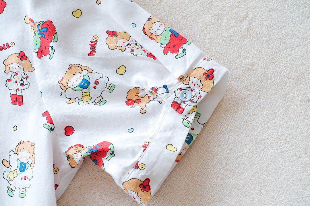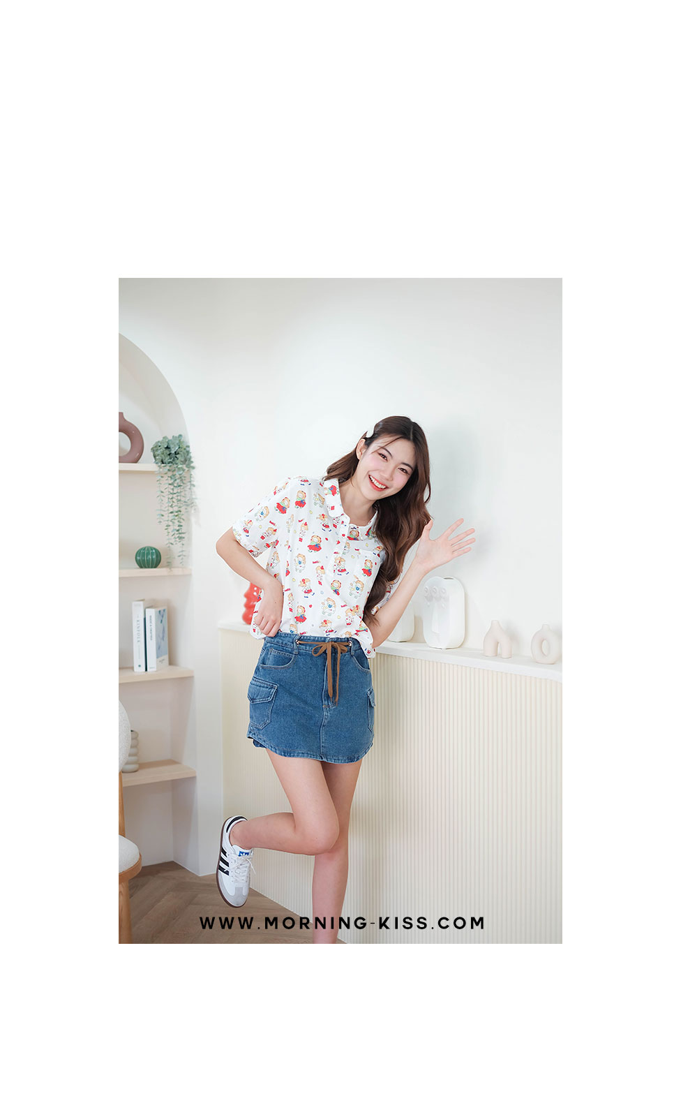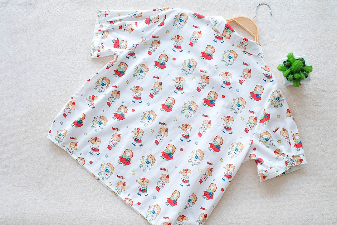 งานญี่ปุ่น น่ารักๆ คอปกบัว สีขาวงานปริ้นลายการ์ตูนสีสดใสรอบตัว เนื้อผ้า Cotton เนื้อดีมาก ใส่สบายไม่ร้อน กระดุมคอเรียงหน้า ชายเสื้อจั๋มเข้าด้านข้างเล็กน้อยเป็นโทนใส่ง่ายๆ เนื้อผ้านิ่ม ใส่แล้วไม่ร้อน รับประกันคุณภาพ จัดไปไม่ผิดหวังแน่นอน