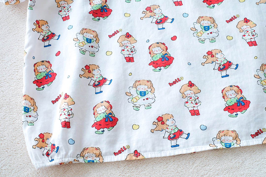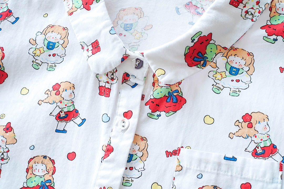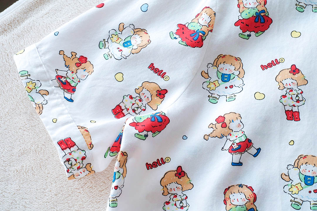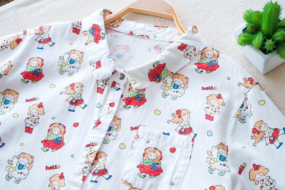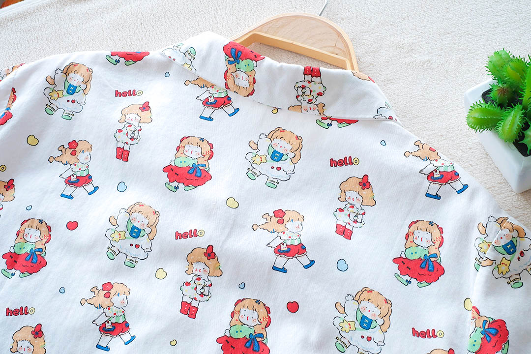 งานญี่ปุ่น น่ารักๆ คอปกบัว สีขาวงานปริ้นลายการ์ตูนสีสดใสรอบตัว เนื้อผ้า Cotton เนื้อดีมาก ใส่สบายไม่ร้อน กระดุมคอเรียงหน้า ชายเสื้อจั๋มเข้าด้านข้างเล็กน้อยเป็นโทนใส่ง่ายๆ เนื้อผ้านิ่ม ใส่แล้วไม่ร้อน รับประกันคุณภาพ จัดไปไม่ผิดหวังแน่นอน
