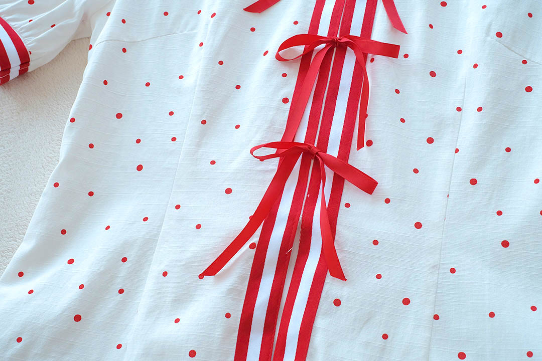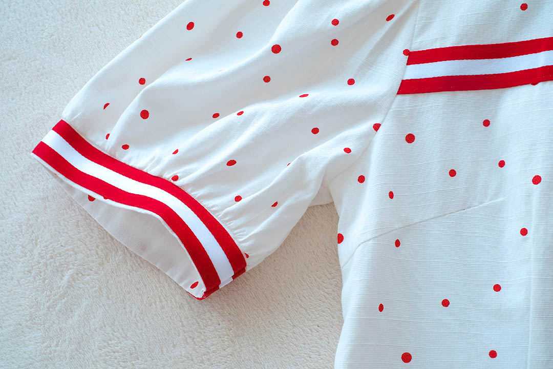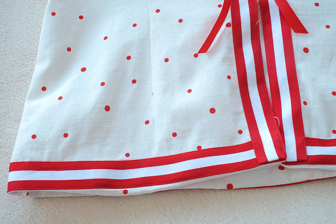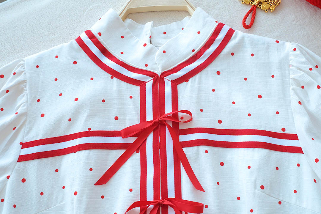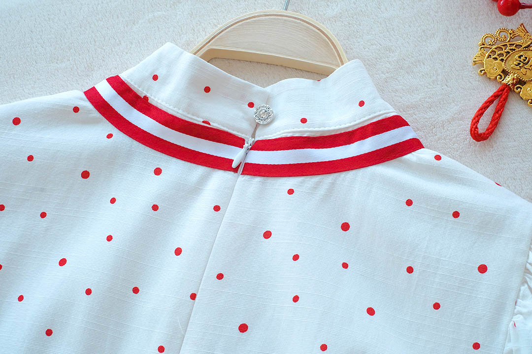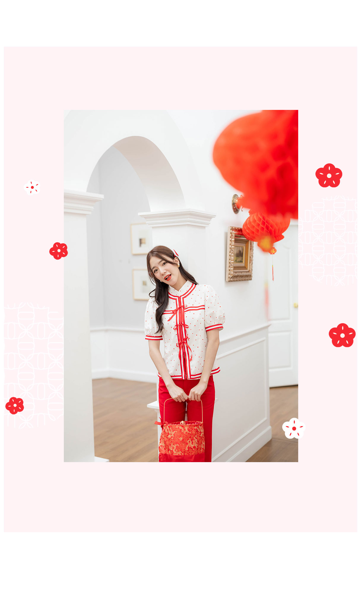 ไอเท็มนี้ ห้ามพลาดเลย เสื้อแขยสั้นโทนสีขาวจุดแดงเล็กๆรอบตัว แต่งขอบตัวเสื้อด้วยริ้วแดงสลับขาว รุ่นนี้ให้อารมณ์จีนๆแบบใส่ลำรอง แต่งโบว์แดงเรียงหน้า มีซับใน เนื้อผ้าดี เป็นโทนใส่ง่ายๆใส่เที่ยวใส่ตรุษจีนนี้หรือเก็บไว้ใส่ทำงานก็ได้ มีติดตู้ไว้ไม่ผิดหวังแน่นอน