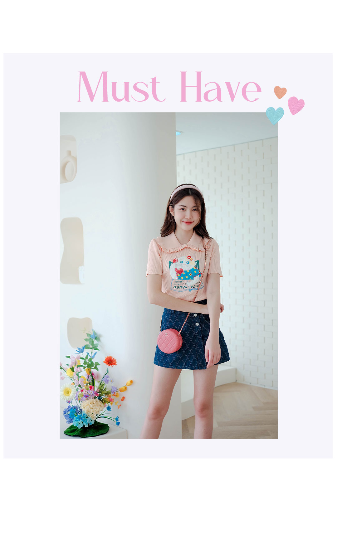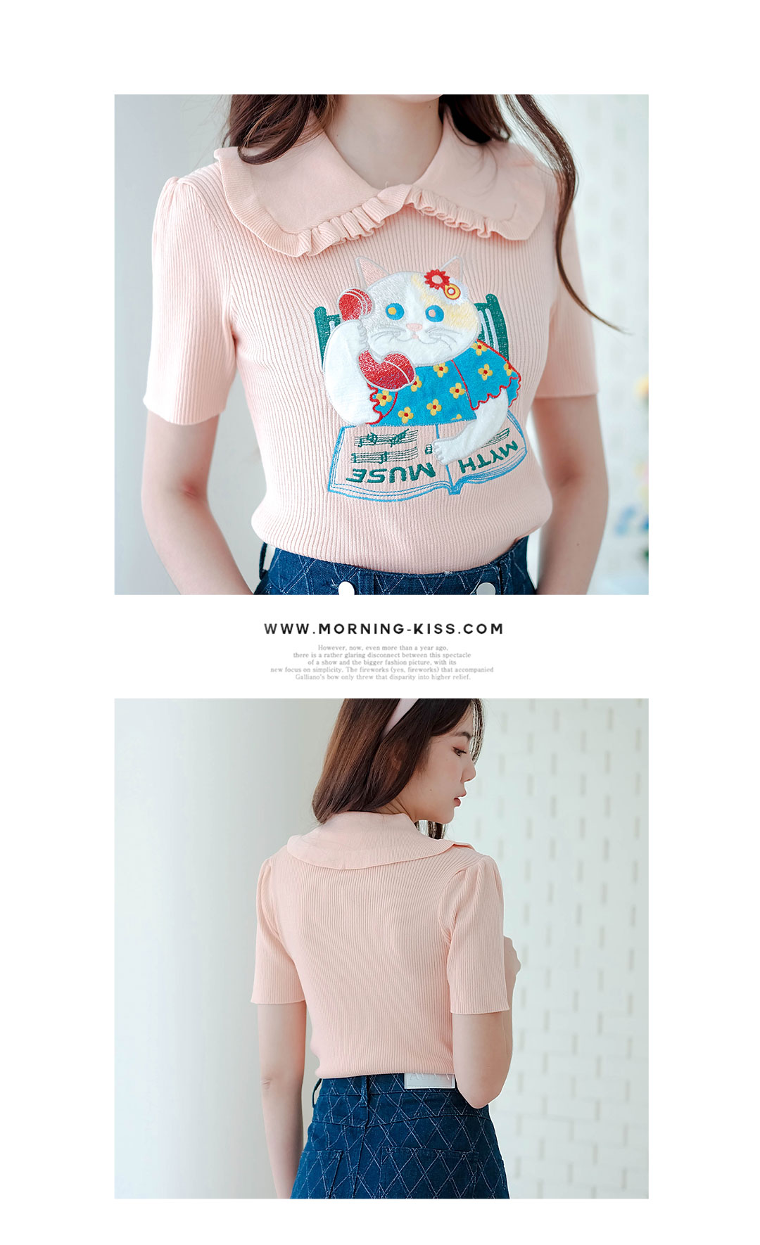 ไอเท็มน่ารักๆเลยกับเสื้อแขนสั้นคอปกตัวเสื้อเป็นผ้า knitting โทนสีชาเย็น เนื้อผ้านิ่มรุ่นนี้ใส่สบายมากๆยืดได้เยอะสุดๆ ด้านหน้าแต่งงานปักรูปแมวน่ารักๆ เนื้อผ้ายืดหยุ่นได้ดี รุ่นนี้การันตีความใส่สบายไม่รัดไม่อึดอัด รับประกันความสวยแมทง่าย ใส่กับกางเกงขาสั้นขายาวหรือกระโปรงได้ทุกลุค