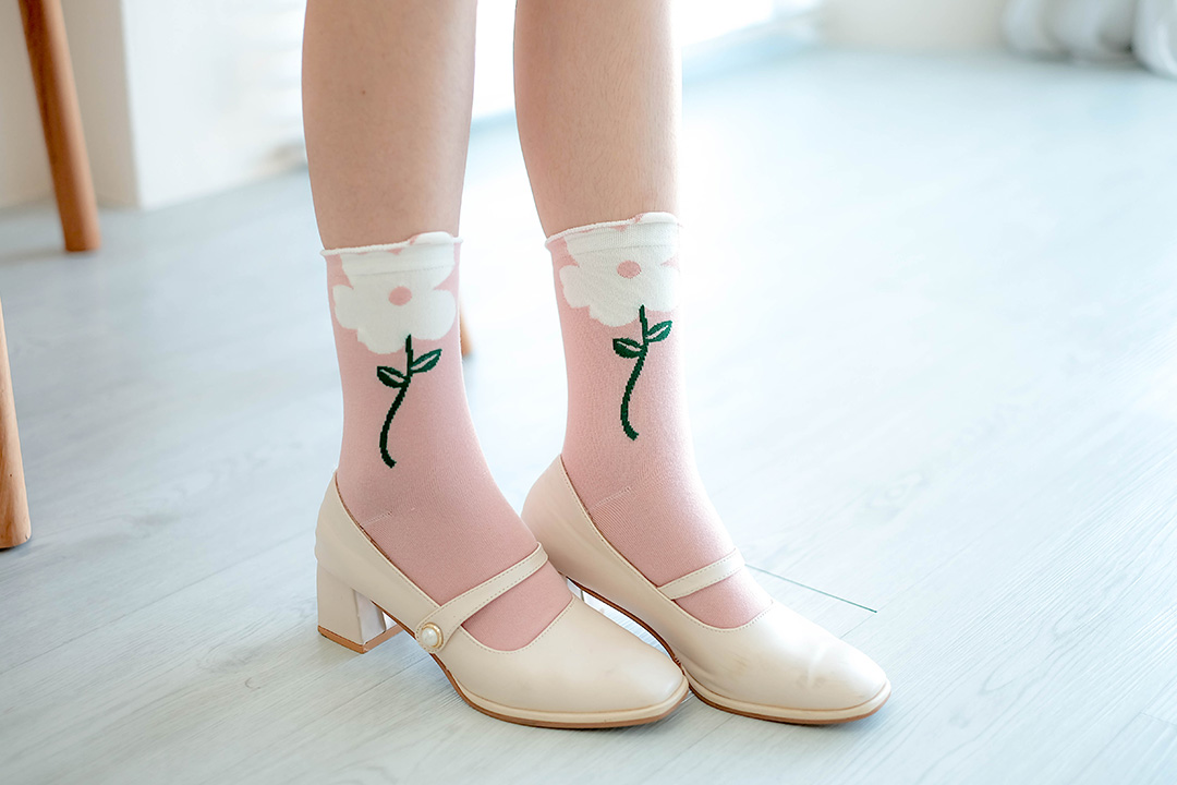 ถุงเท้าลายดอกไม้ น่ารักมาก สไตส์ญี่ปุ่น ผ้า Cotton เนื้ออย่างดี ยืดหยุ่นได้เยอะ