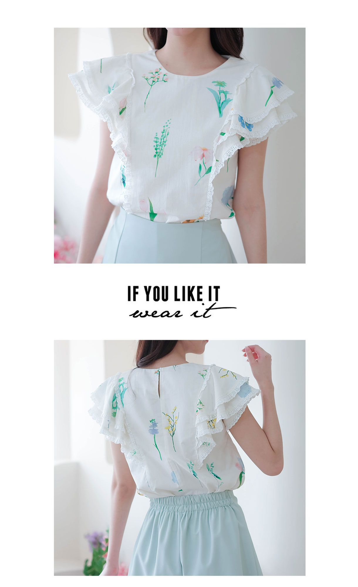 น่ารักสุดๆมาในลุคคุณหนูสวยหวาน กับเสื้อแขนล้ำโทนสีครีมใส่รับซัมเมอร์ ผ้า Cotton เนื้อนิ่มมาก พิมพ์ลายดอกไม้สวยหวานละมุนมากๆ ด้านข้างทำระบาย 2 ชั้นติดระบายลูกไม้เล็กๆสีขาว มีซับใน ลุคคุณหนูหวานๆ แมทกับขาสั้นหรือขายาว ใส่ทำงานก็ได้ใส่เที่ยวก็น่ารัก จัดไปไม่ผิดหวังจริงๆ