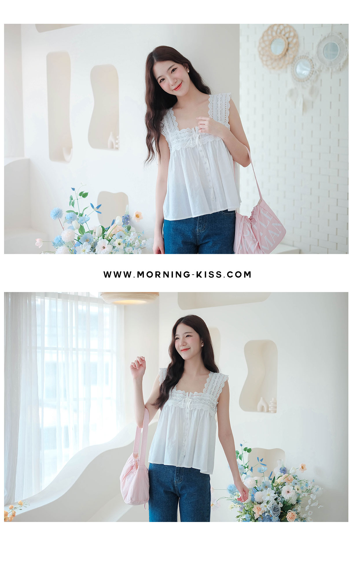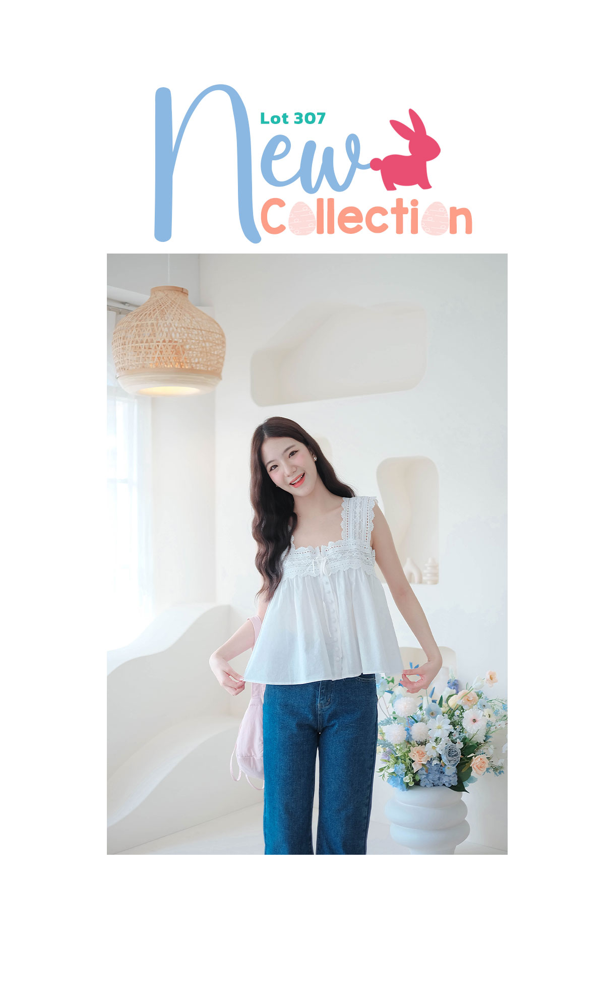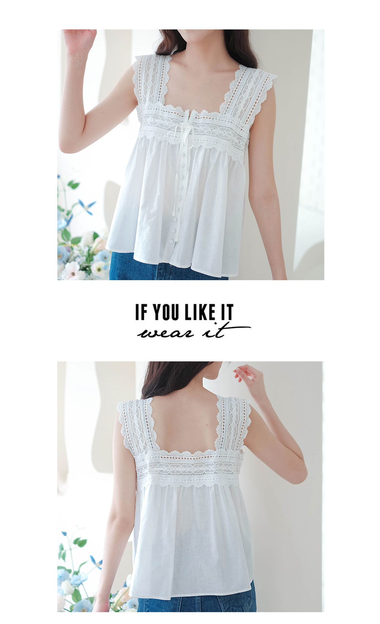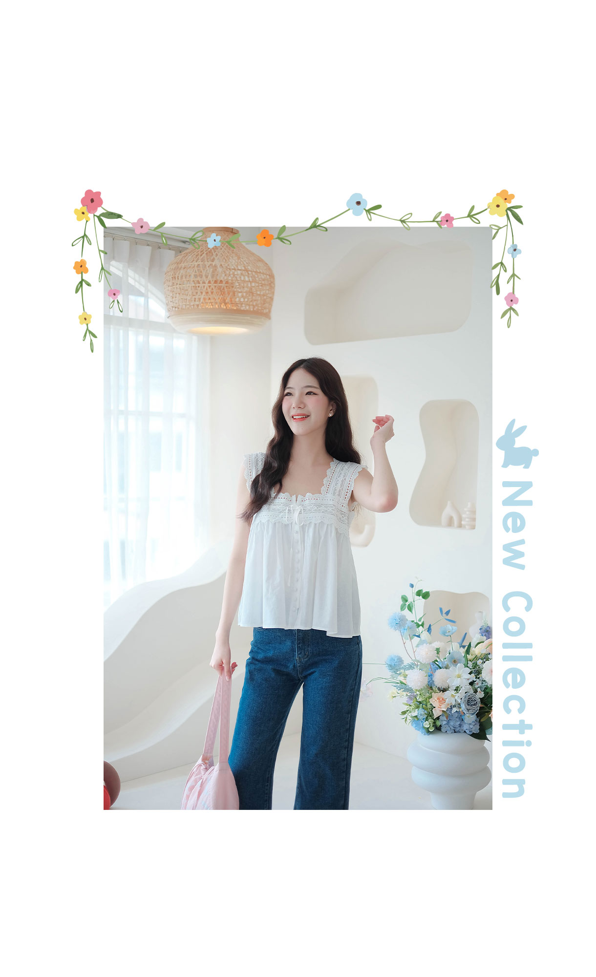 ต้อนรับลมร้อนกับลุคสวยแซ่บโชว์ความเซ็กซี่่กับเสื้อสายเดี่ยวโทนสีขาวตัวเสื้อด้านบนเป้นผ้าฉลลุลายลูกไม้ ช่วงคอมีสานผูกเป็นโบว์น่ารักๆ ทรงตัวปล่อยๆ กระดุมหลอกเรียงด้านหน้า (มีกระดุมแป๊กซ่อนด้านใน) ใส่แมทกับเสื้อคลุมก็น่ารักไม่โป๊เกินไป แนะนำเลย
