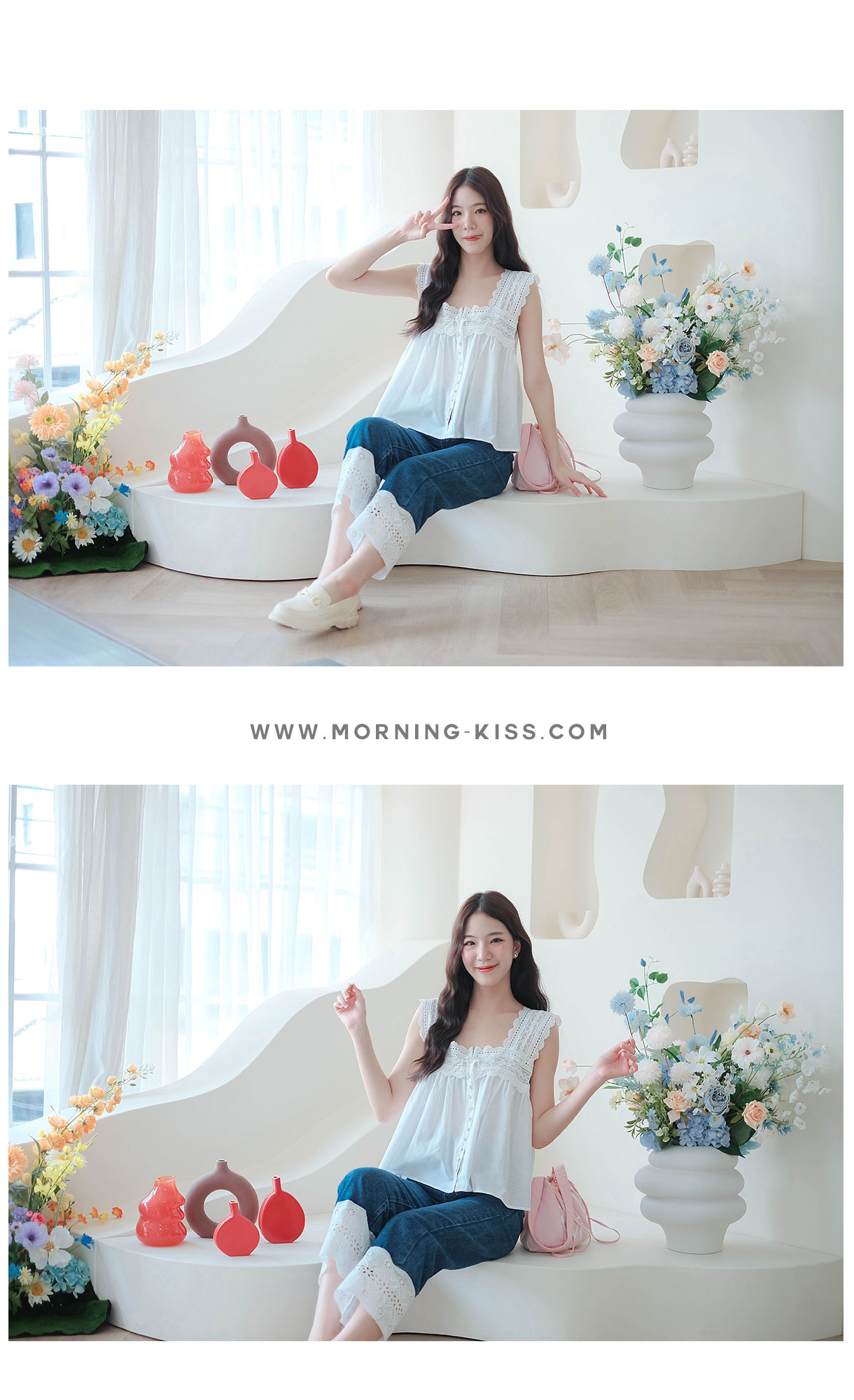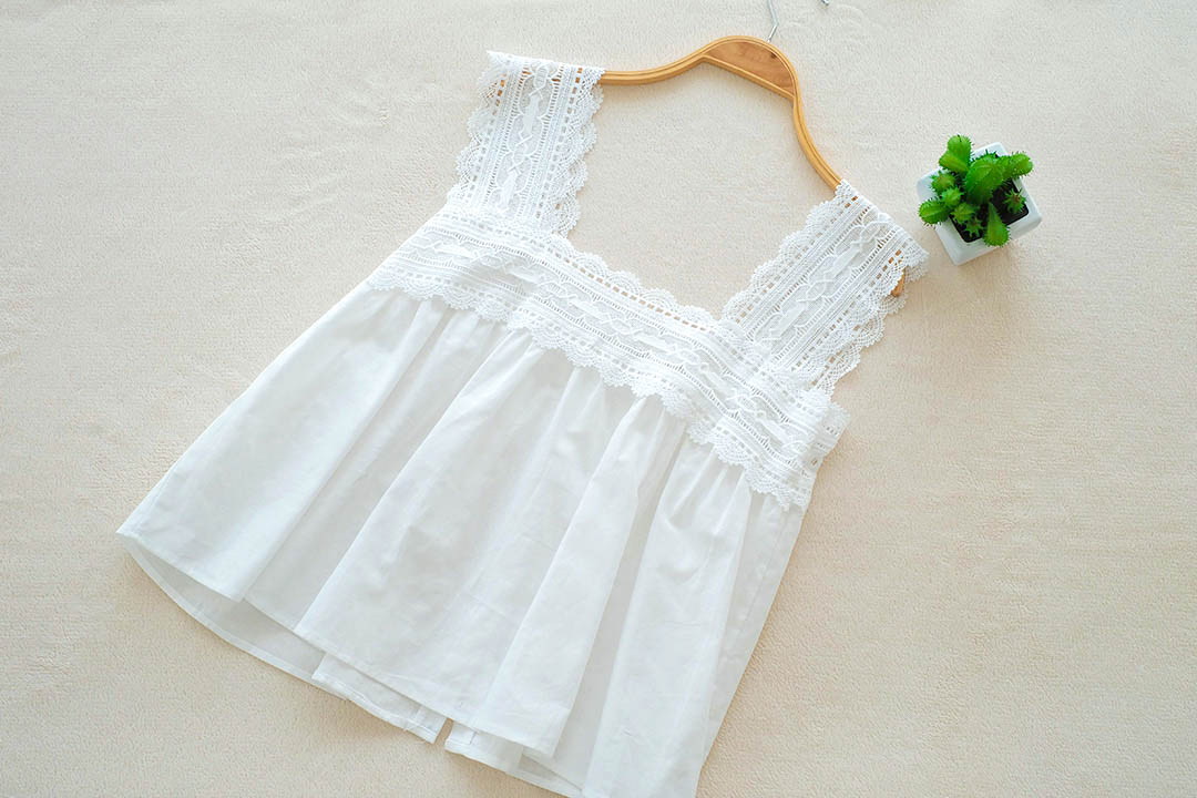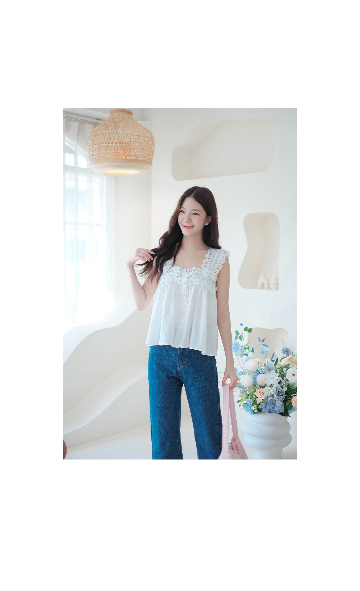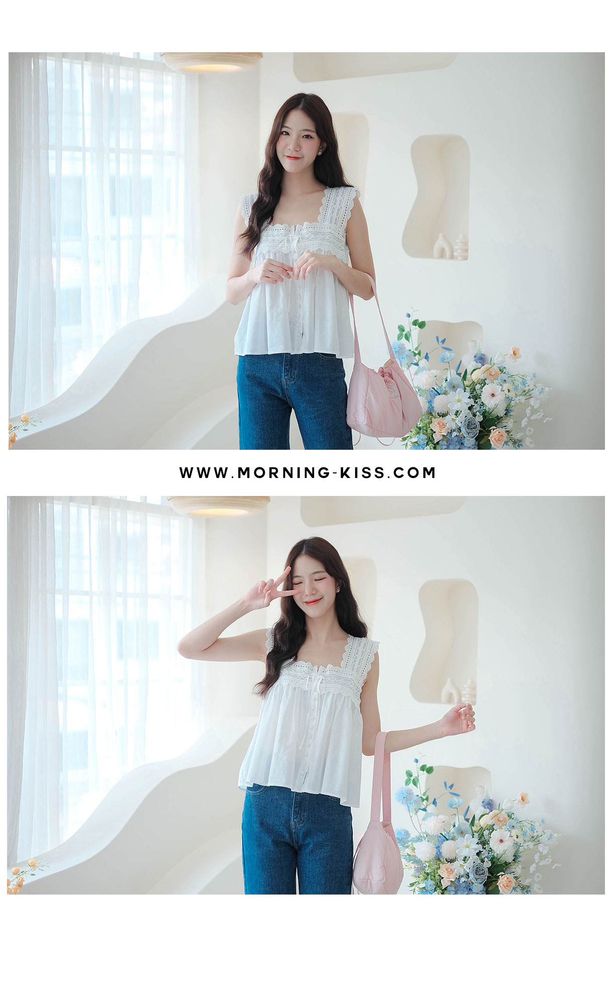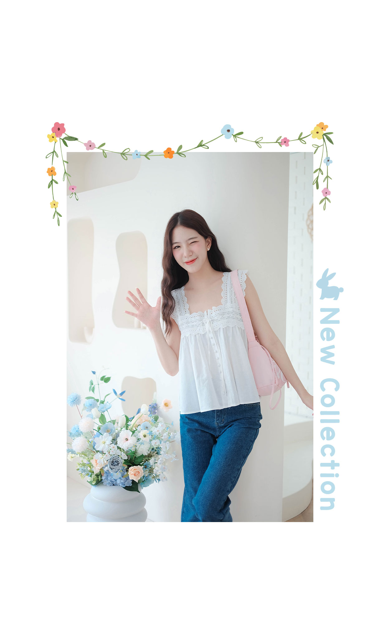 ต้อนรับลมร้อนกับลุคสวยแซ่บโชว์ความเซ็กซี่่กับเสื้อสายเดี่ยวโทนสีขาวตัวเสื้อด้านบนเป้นผ้าฉลลุลายลูกไม้ ช่วงคอมีสานผูกเป็นโบว์น่ารักๆ ทรงตัวปล่อยๆ กระดุมหลอกเรียงด้านหน้า (มีกระดุมแป๊กซ่อนด้านใน) ใส่แมทกับเสื้อคลุมก็น่ารักไม่โป๊เกินไป แนะนำเลย