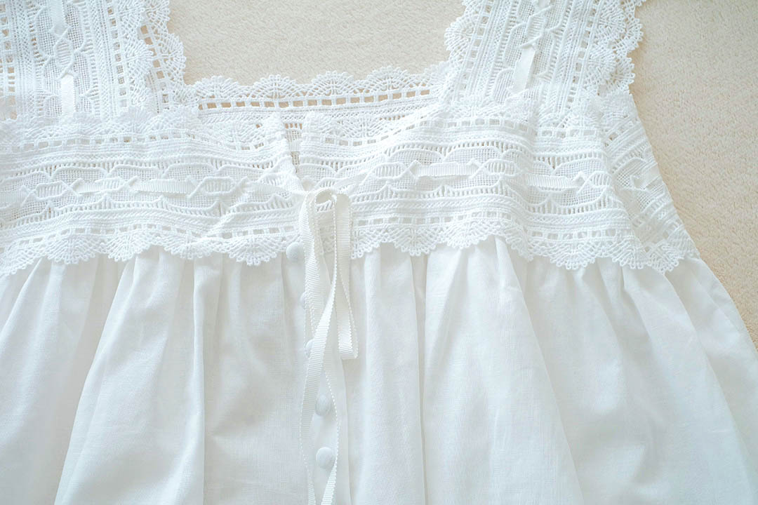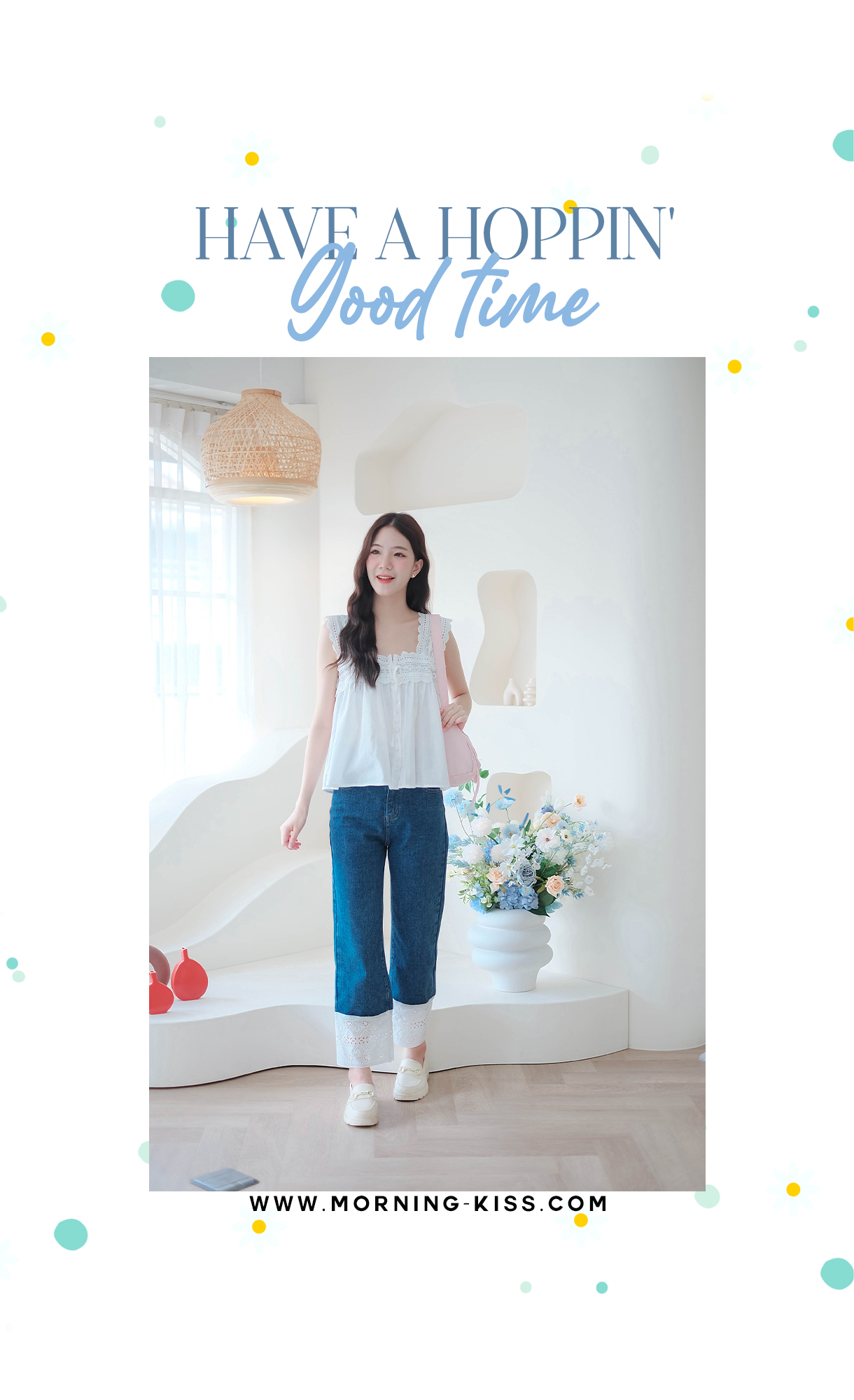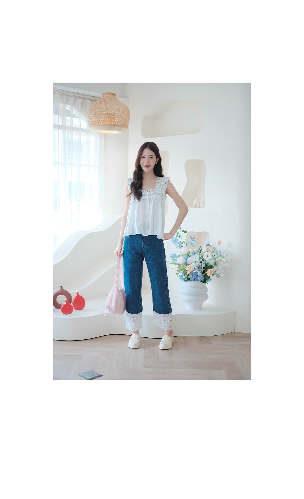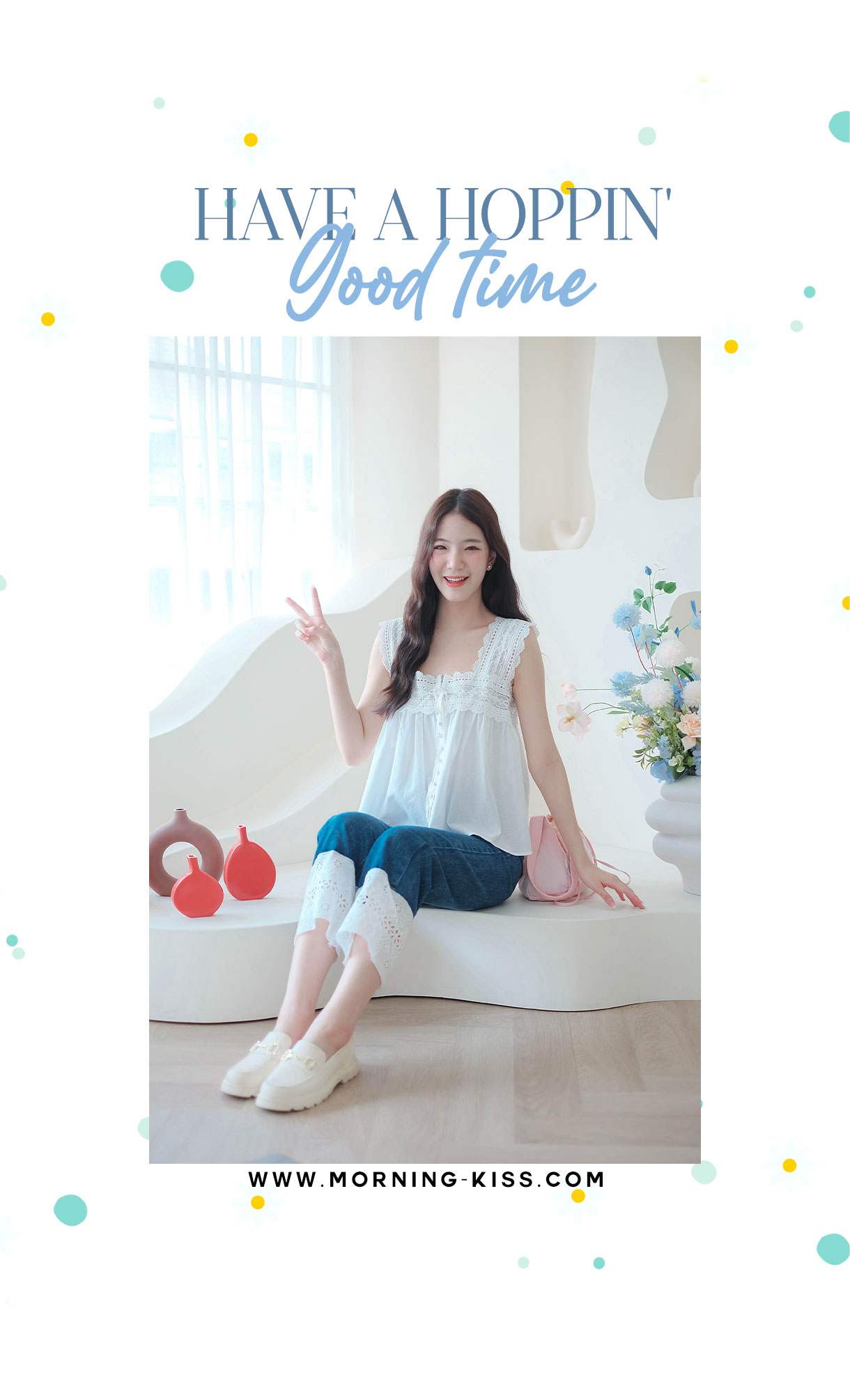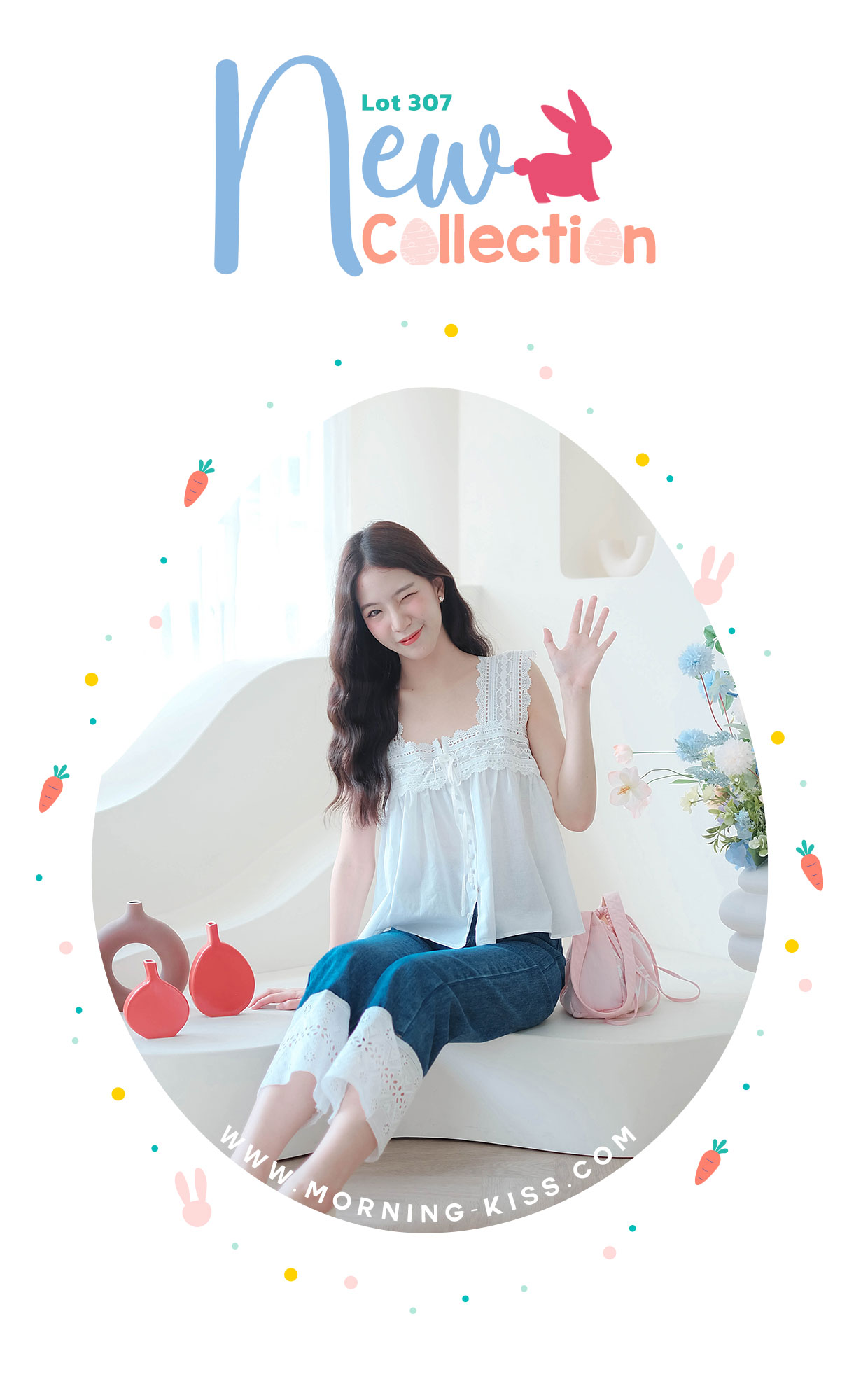 ต้อนรับลมร้อนกับลุคสวยแซ่บโชว์ความเซ็กซี่่กับเสื้อสายเดี่ยวโทนสีขาวตัวเสื้อด้านบนเป้นผ้าฉลลุลายลูกไม้ ช่วงคอมีสานผูกเป็นโบว์น่ารักๆ ทรงตัวปล่อยๆ กระดุมหลอกเรียงด้านหน้า (มีกระดุมแป๊กซ่อนด้านใน) ใส่แมทกับเสื้อคลุมก็น่ารักไม่โป๊เกินไป แนะนำเลย