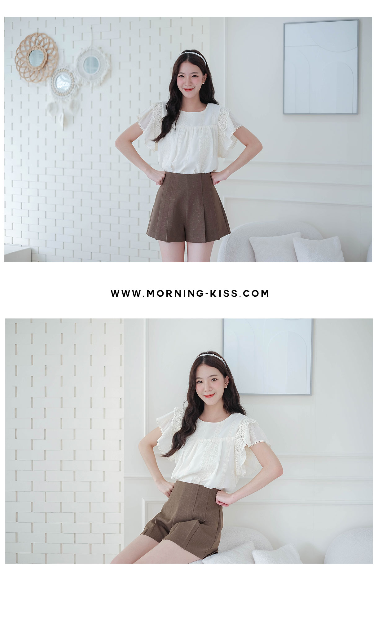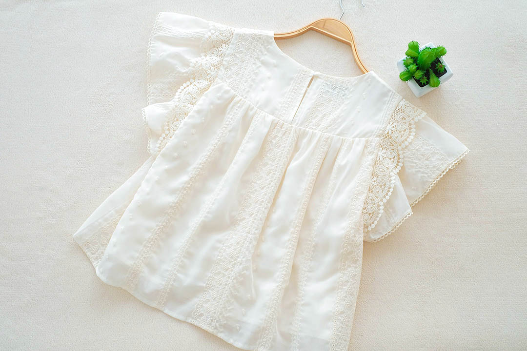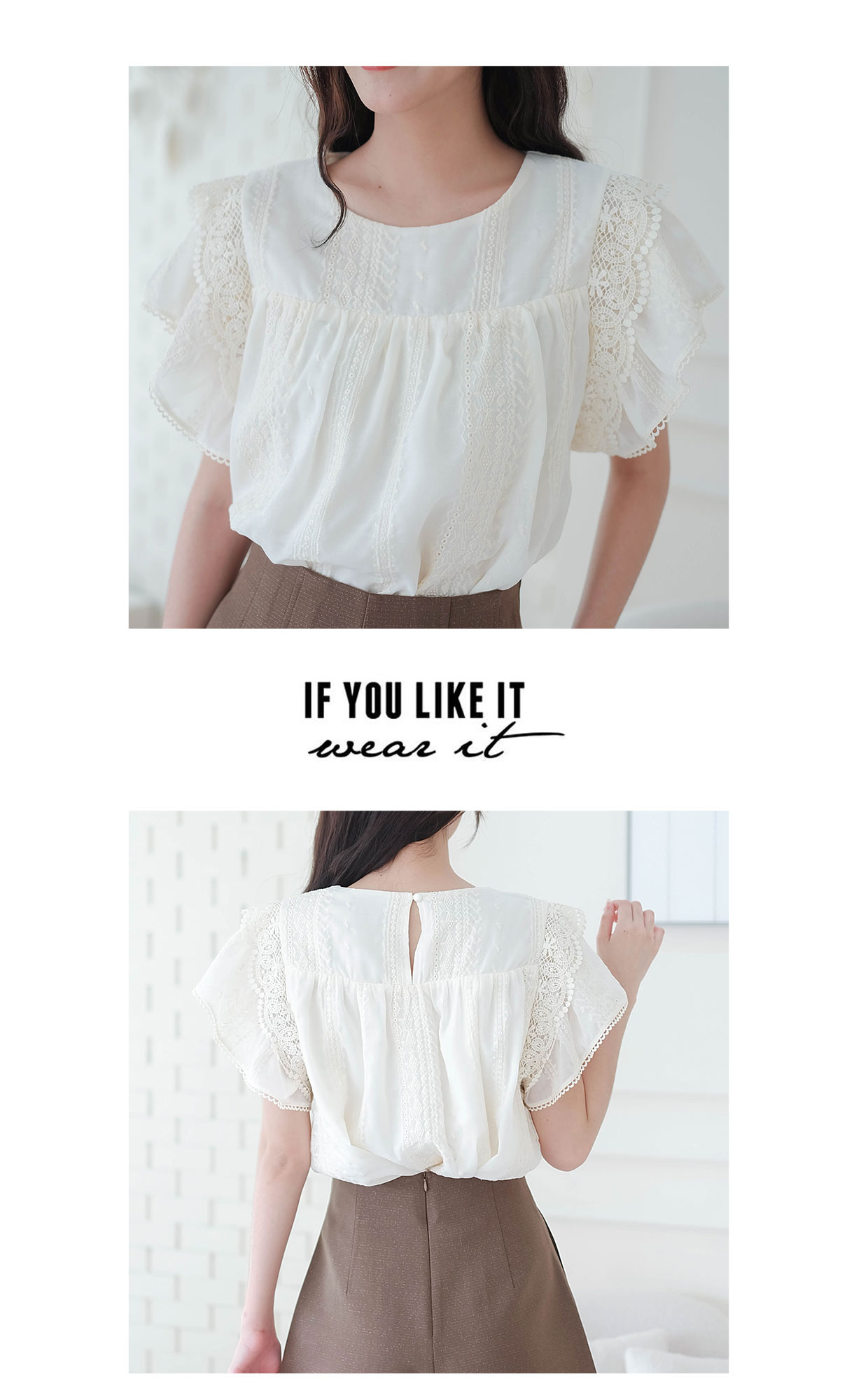 ไอเท็มนี้ห้ามพลาดเลยกับเสื้องานผ้าฉลุลายลายดอกไม้ โทนสีครีมแบบเรียบๆ ช่วงแขนทำระบาย 2 ชั้น ทรงตัวปล่อยๆ มีซับใน แบบเรียบๆหวานๆ รุ่นนี้ใส่ง่ายๆ แมทกับกระโปรงหรือกางเกงก้อน่ารัก