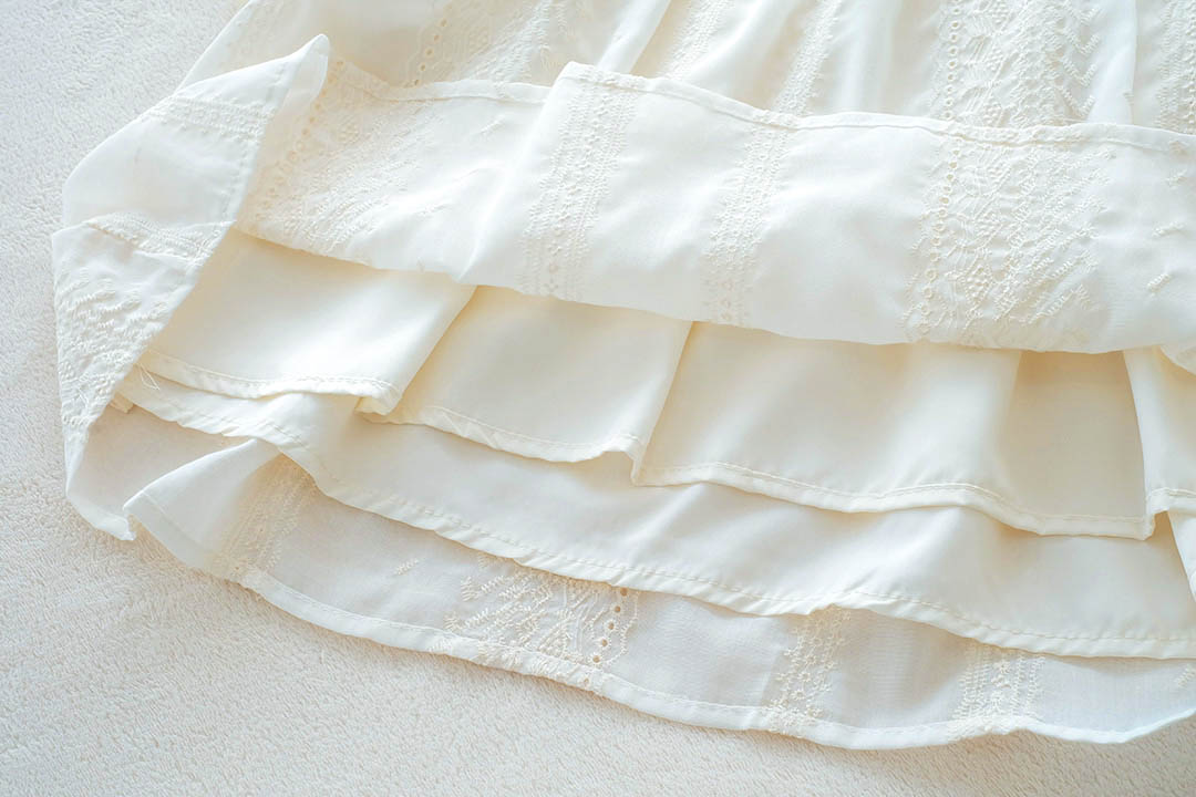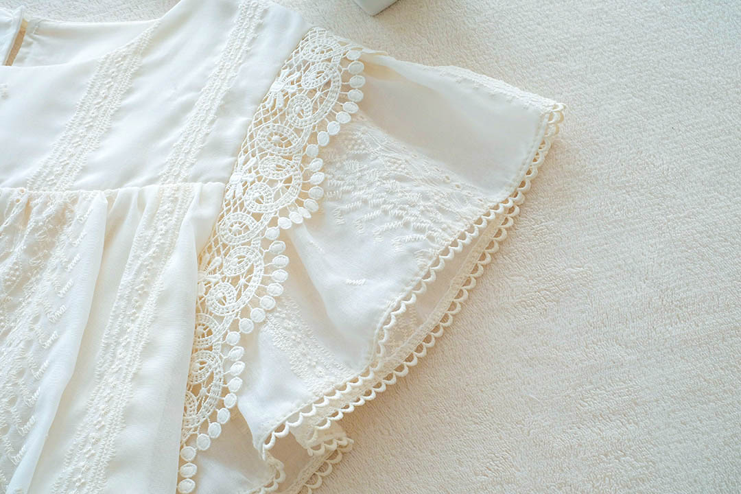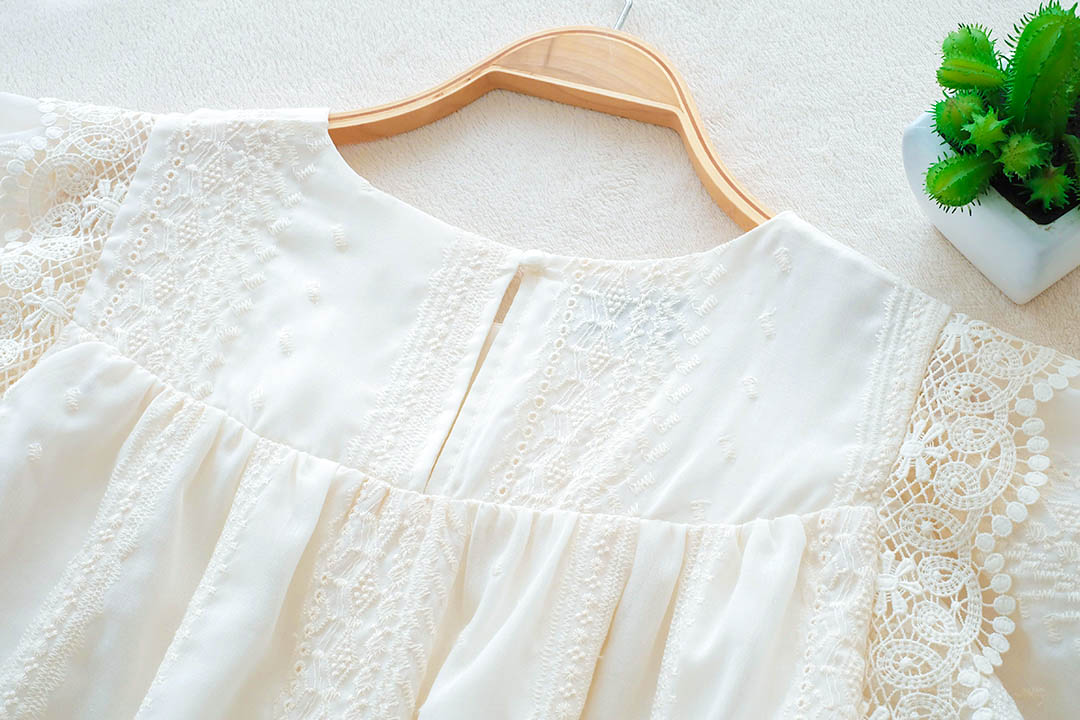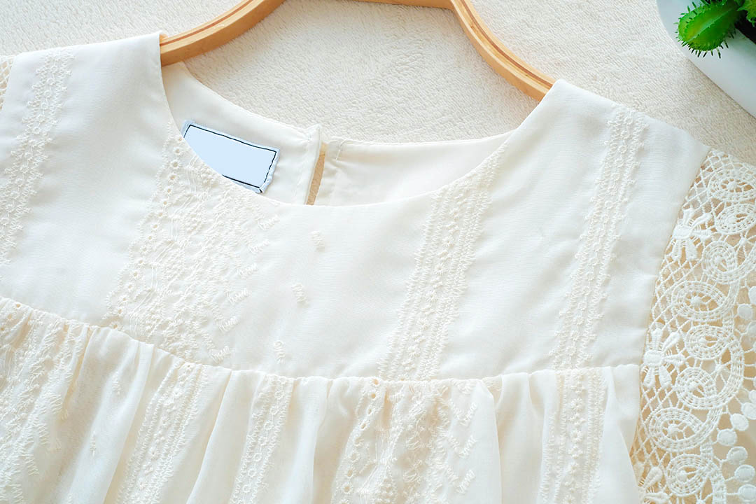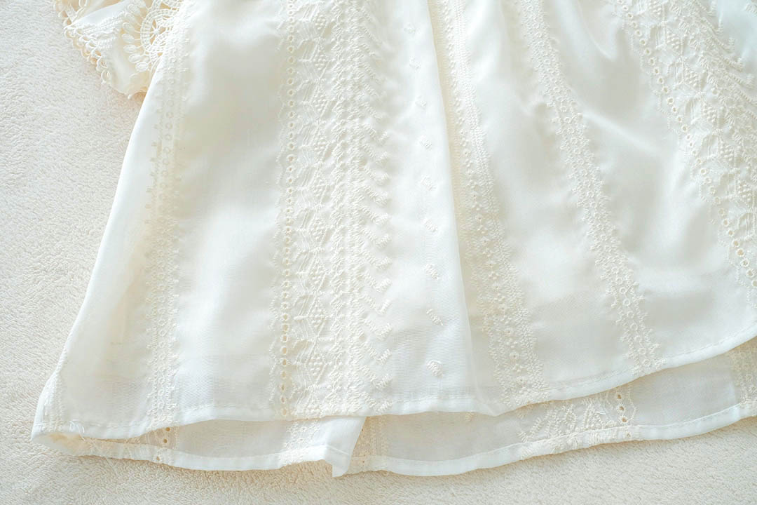ไอเท็มนี้ห้ามพลาดเลยกับเสื้องานผ้าฉลุลายลายดอกไม้ โทนสีครีมแบบเรียบๆ ช่วงแขนทำระบาย 2 ชั้น ทรงตัวปล่อยๆ มีซับใน แบบเรียบๆหวานๆ รุ่นนี้ใส่ง่ายๆ แมทกับกระโปรงหรือกางเกงก้อน่ารัก