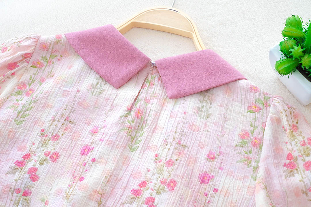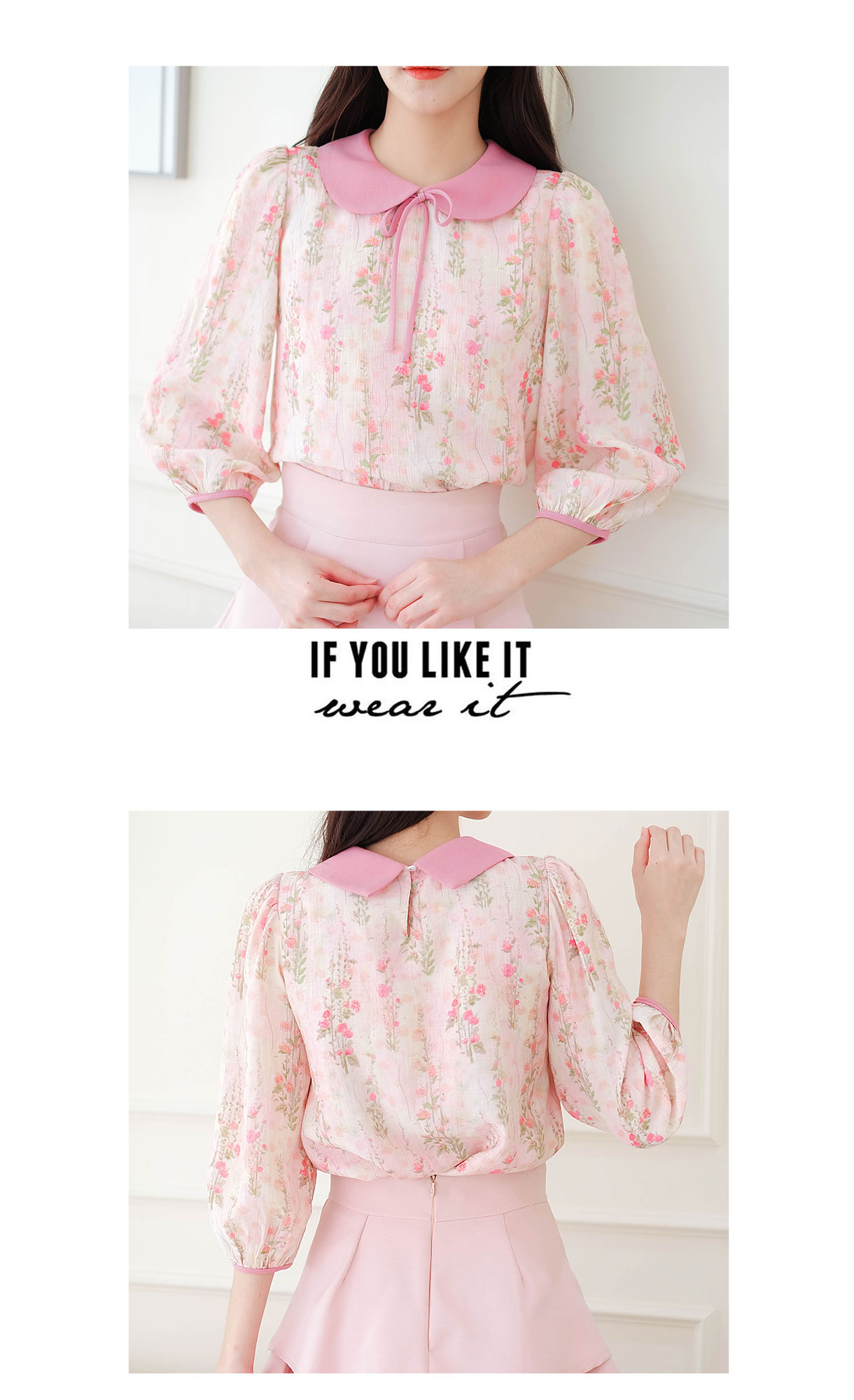 หวานฉ่ำๆกับลุคหวานๆเสื้อแขน 5 ส่วนโทนสีชมพูเนื้อผ้า Tencel งานปริ้นลายดอกไม้เล็กๆรอบตัว คอปกบัวมีสายผูกช่วงคอน่ารักๆ ช่วงแขนทำพองๆนิดๆ ซับในทั้งตัว แมทกับกระโปรงหรือกางเกงก็น่ารัก ไอเท็มนี้แนะนำเลย ลุคคุณหนูหวานๆ ใส่ทำงานก็ได้ใส่เที่ยวก็น่ารัก รุ่นนี้จัดไปไม่ผิดหวังจริงๆ