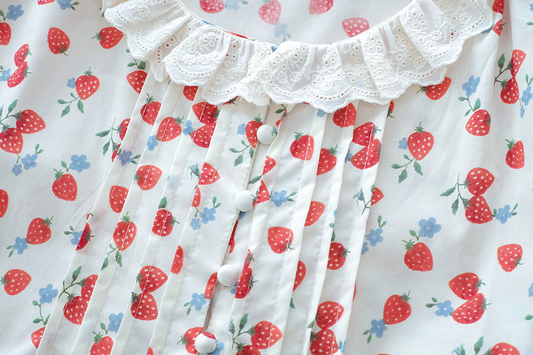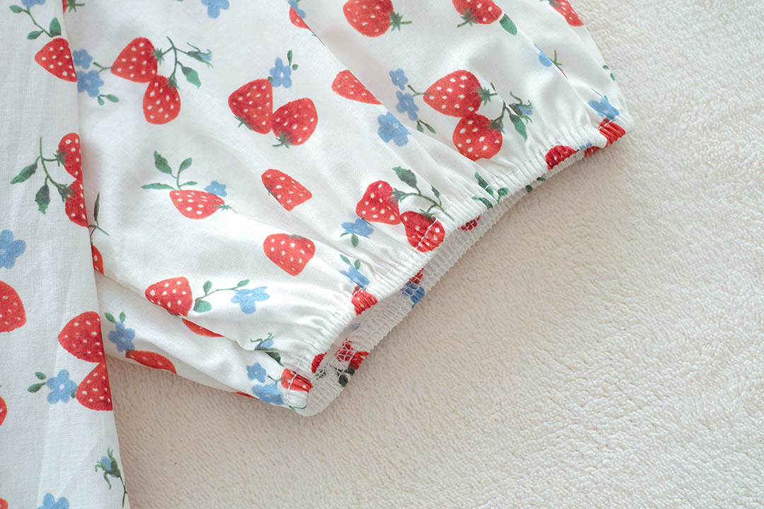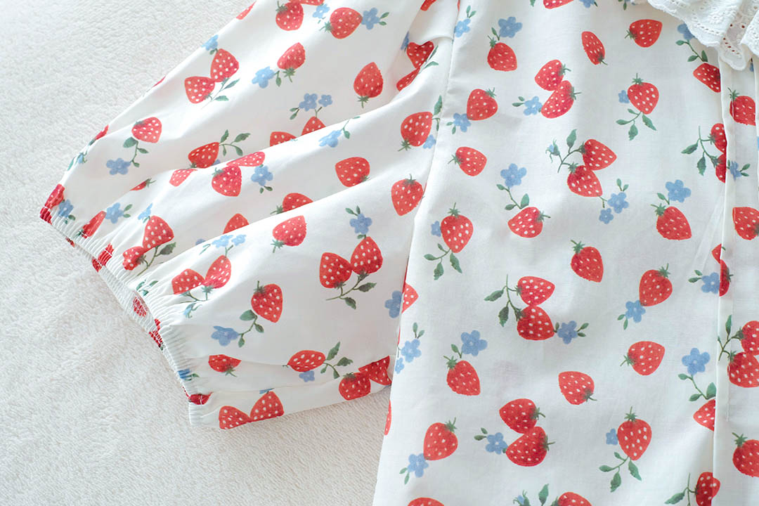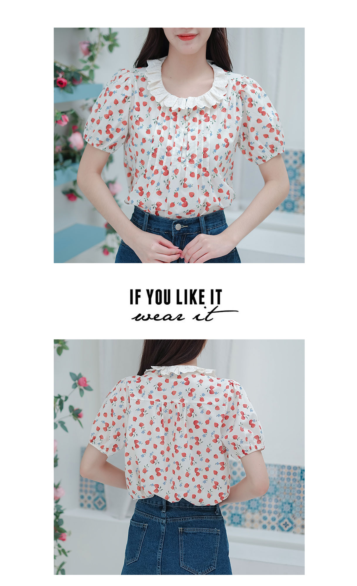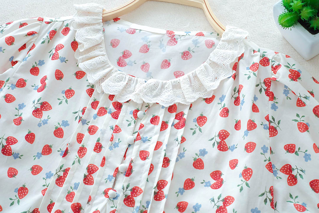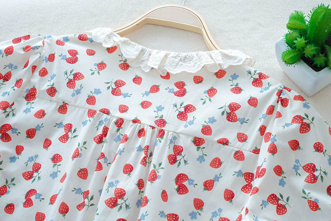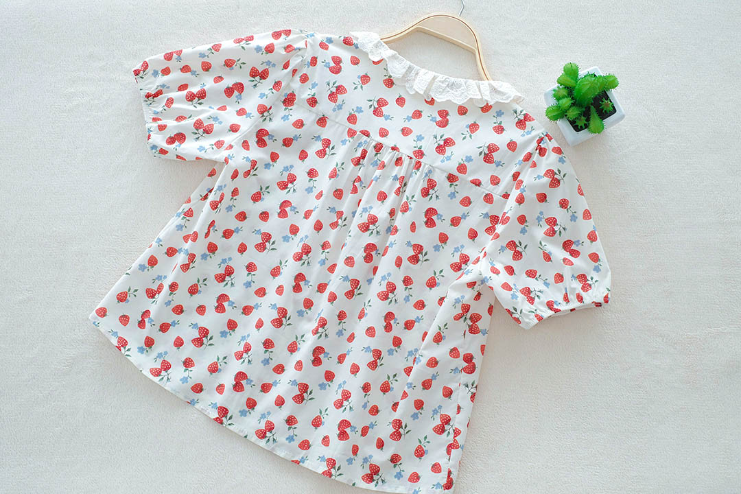 Summer นี้ ไม่ควรพลาด ไอเท็มนี้น่ารักมากเลยค่า เสื้อแขนสั้นช่วงคอปกเป็นผ้าลูกไม้ โทนสีครีม งานปริ้นลายสตอเบอร์รี่ รอบตัว ด้าหน้าเย็บจับจีบ กระดุมคอเรียงหน้า เนื้อผ้า Cotton เนื้อดี นิ่มๆไม่แข็ง ใส่เป็นทรงปล่อยๆ ใส่ทำงานก็ได้ใส่เที่ยวก็น่ารัก รุ่นนี้จัดไปไม่ผิดหวังจริงๆ
