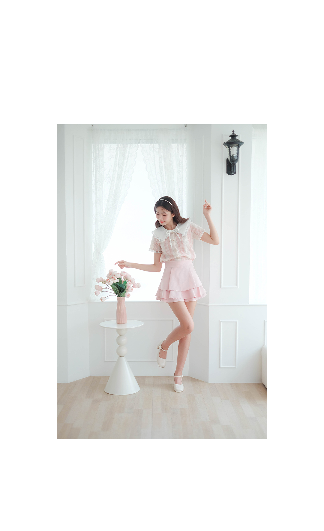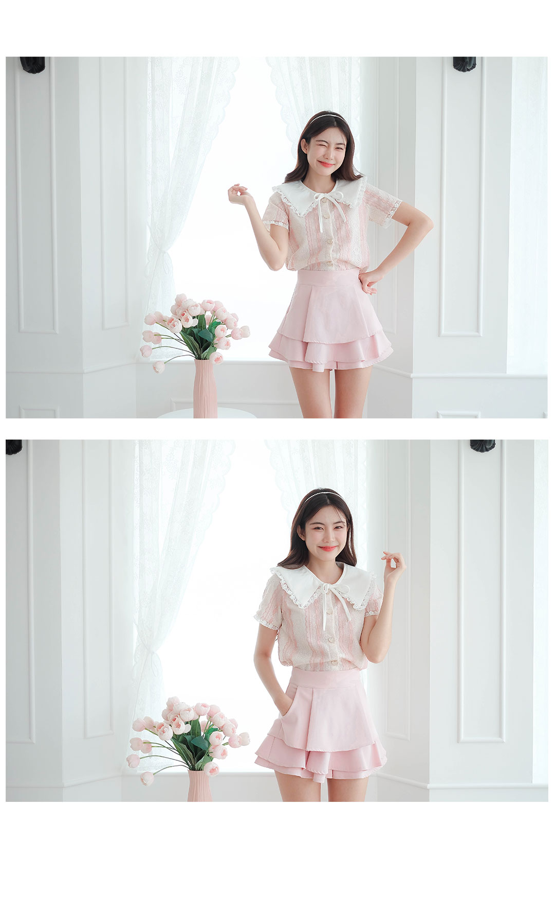 งานผ้าลูกไม้ทูโทนสีชมพูสลับครีมสวยหวานลุคเจ้าหญิงมาก รุ่นนี้ทำเป็นคอปกแต่งระบาย เพิ่มความสวยหวานด้วยกระดุมหัวใจ ปลายแขนเสื้อแต่งลูกไม้น่ารักๆอัพลุคหวาน กระดุมหน้า มีซับในทั้งตัว