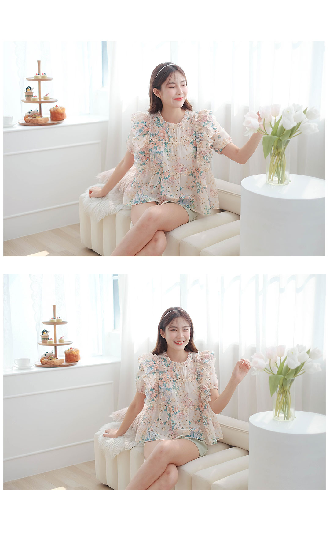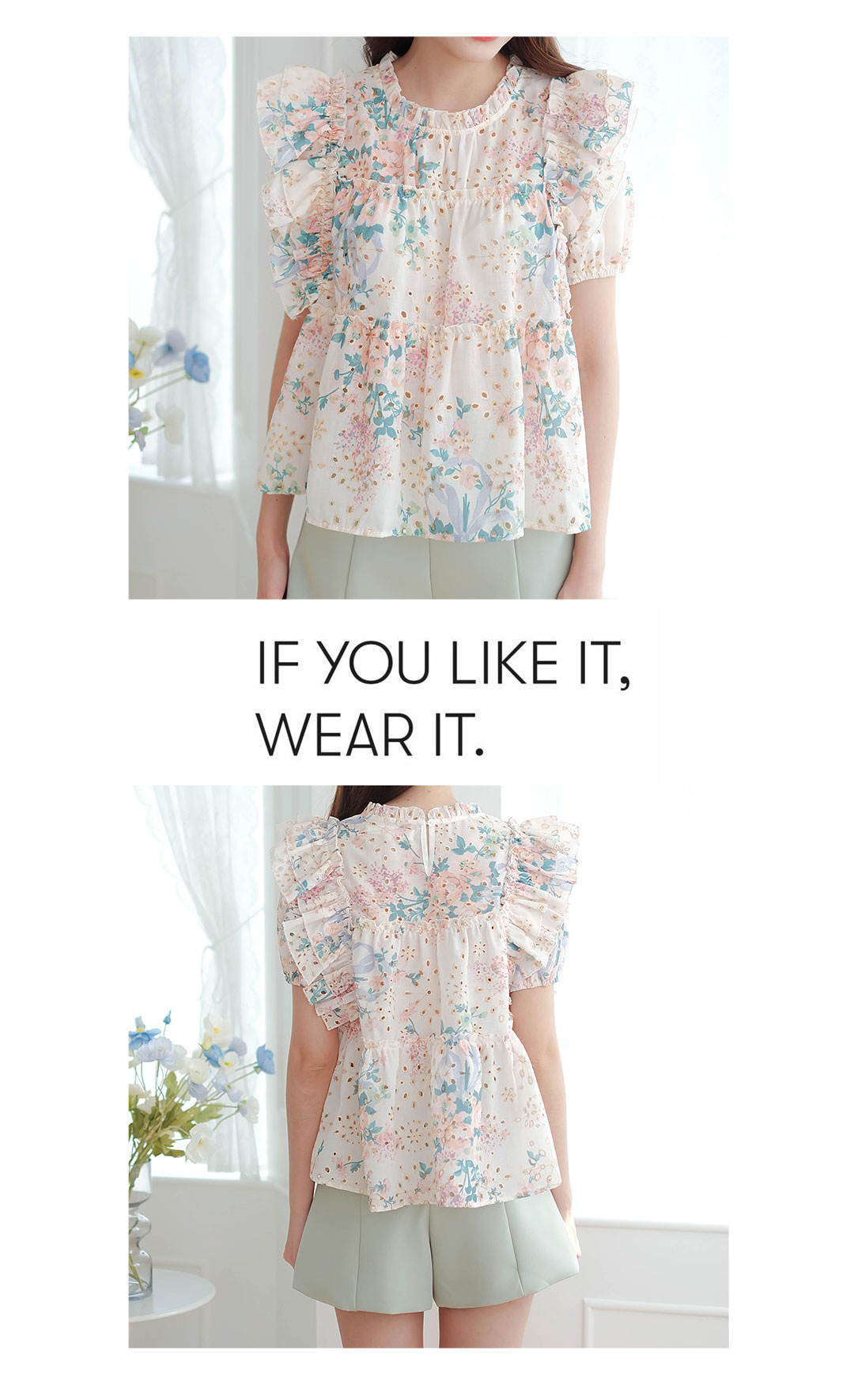 สาวหวานต้องไม่พลาดกับเสื้อผ้า Cotton ฉลุลายลูกไม้โทนสีครีม เนื้อผ้าแบบมี texture ในตัว งานปริ้นลายดอกไม้สวยหวาน ช่วงแขนทำพองๆเล็กๆ ต้นแขนทำระบายๆ ทรงตัวปล่อยๆ ลุคคุณหนูหวานๆ รายการนี้แนะนำเลย งานสวยลุคหวานๆ