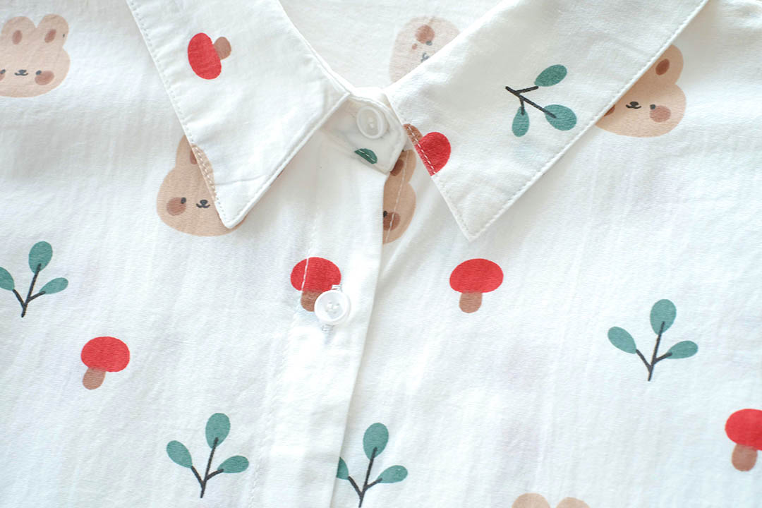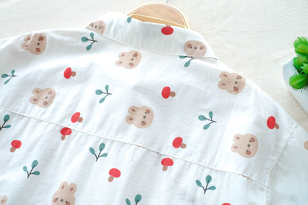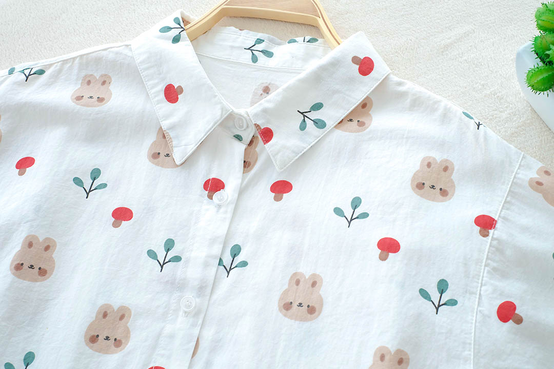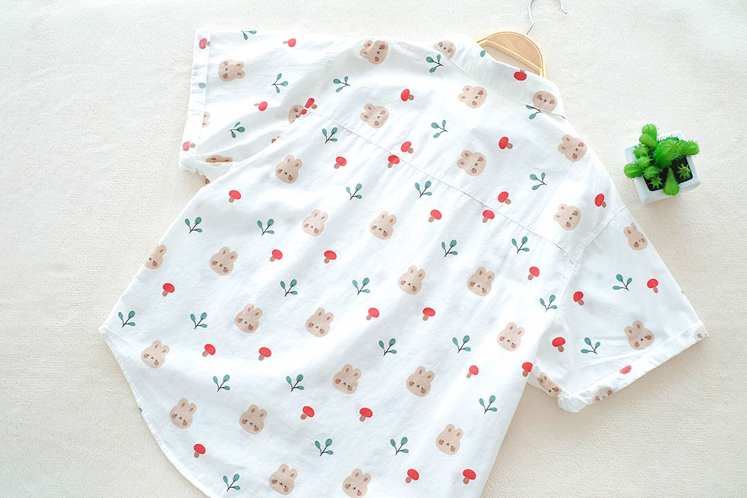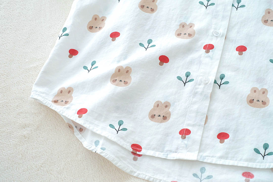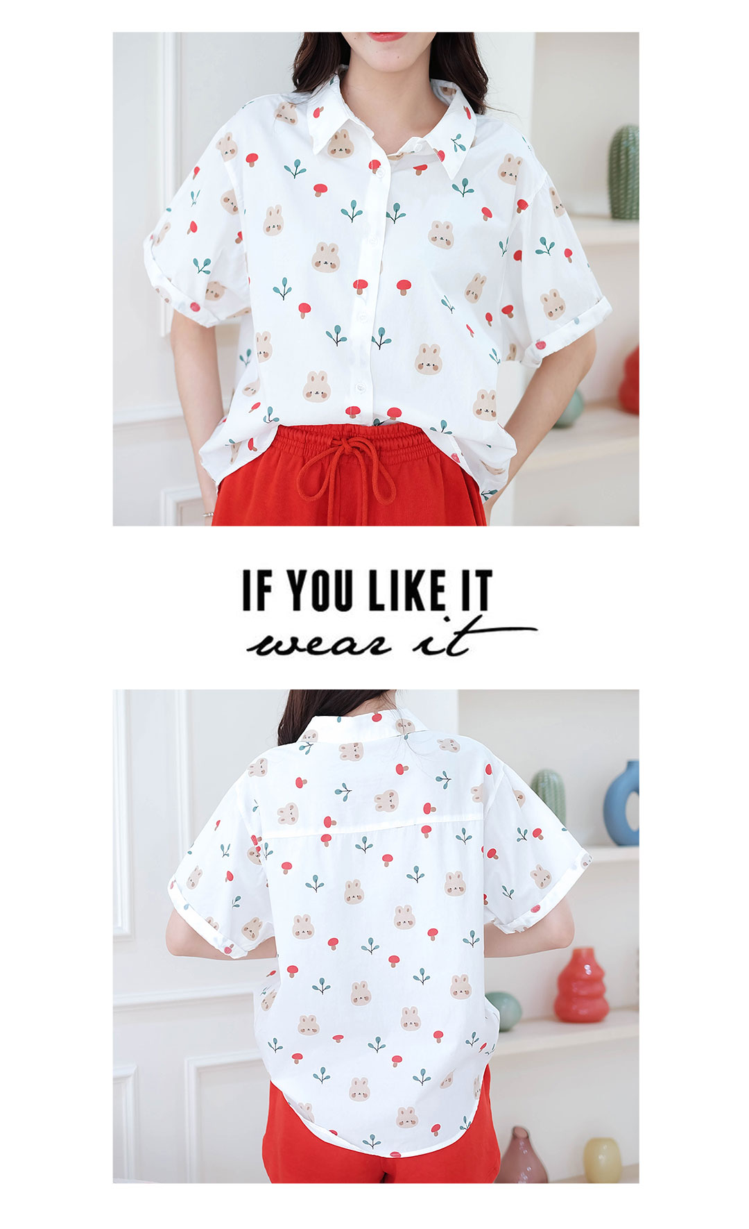 Must Have ไอเท็มนี้น่ารักมากเลยค่า เสื้อเชิ๊ตโทนสีขาว ปริ้นลายผ้ารูปหัวกระต่าย + เห็ดสีสันสดใสรอบตัว กระดุมเรียงหน้า เนื้อผ้า Cotton ญี่ปุ่น เนื้อดี เนื้อนิ่มๆไม่แข็ง ใส่เป็นทรงปล่อยๆ เท่ๆ รับประกันคุณภาพ จัดไปไม่ผิดหวังแน่นอน