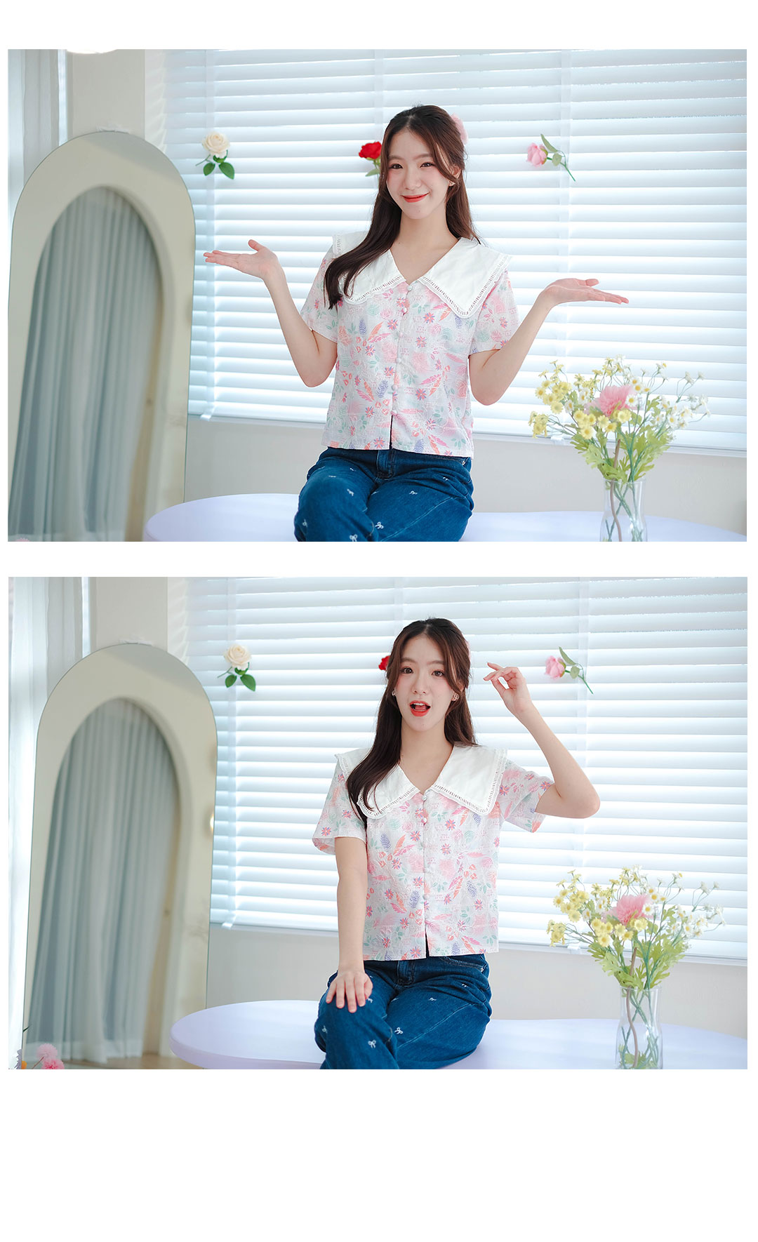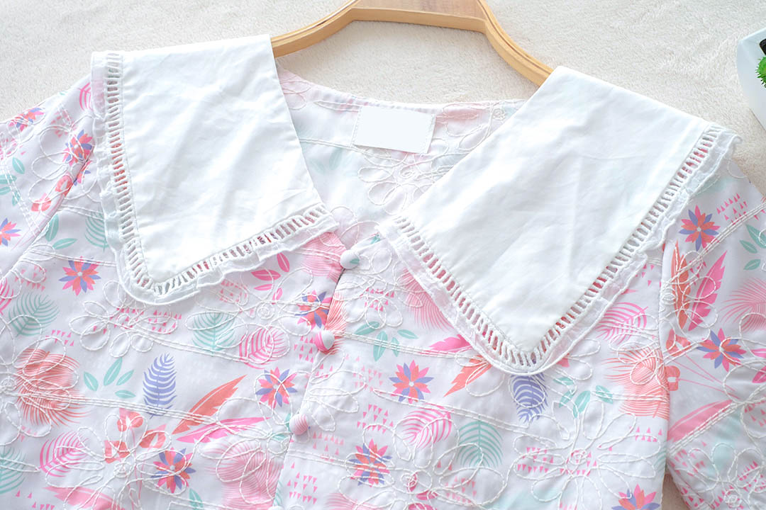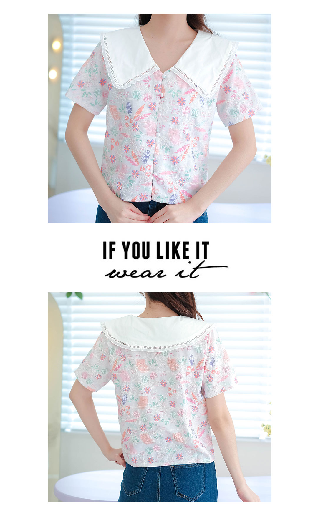 รุ่นนี้จัดไปไม่ผิดหวังแน่นอน สไตส์สวยหวานน่ารัก เสื้อแขนสั้นโทนสีขาวเนื้อผ้าคอตตอนฉลุลายลูกไม้งานปริ้นลายดอกสวยหวานสีสดใส คอปกขาว เนื้อผ้าแบบมี texture ในตัว แต่งกระดุมเรียงหน้า แมทกับกระโปรงหรือกางเกงก็น่ารัก ไอเท็มนี้แนะนำเลย รุ่นนี้สไตส์นี้ใส่ได้ตลอดๆนะคะ