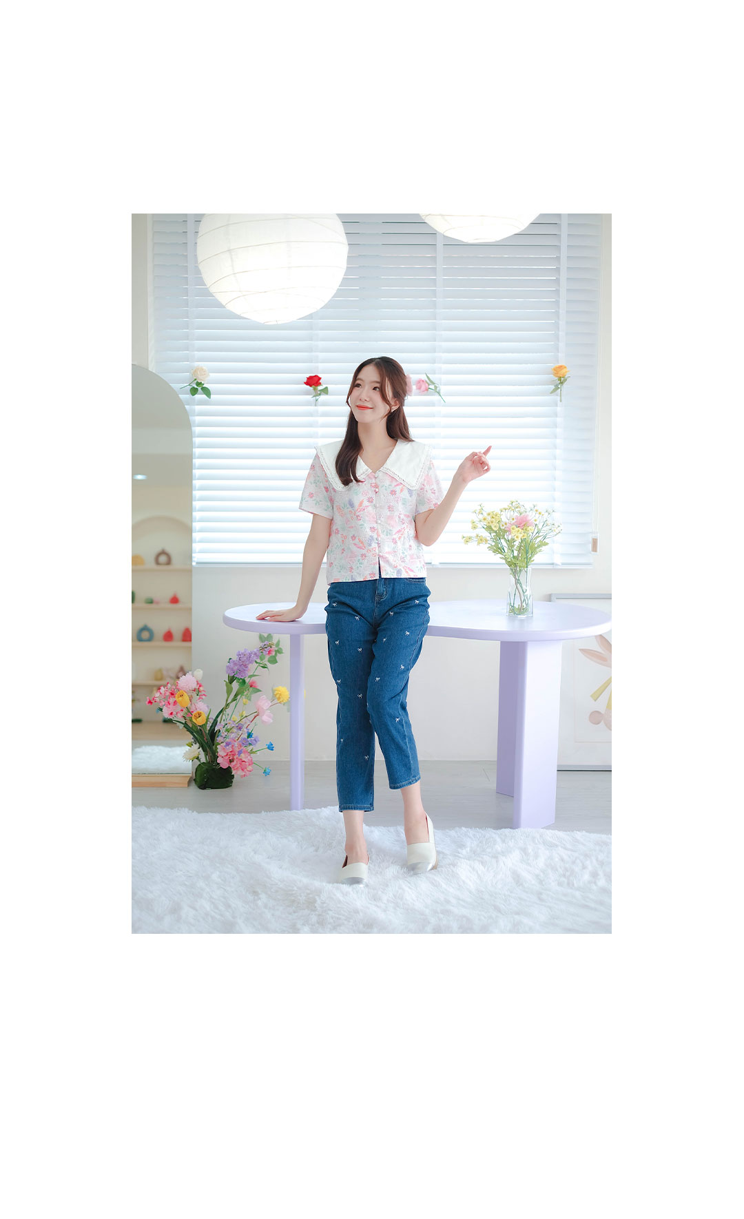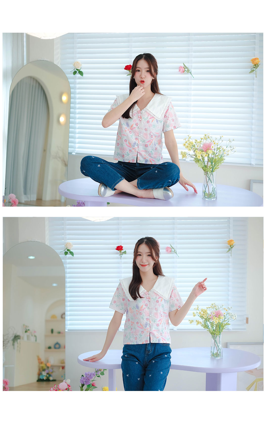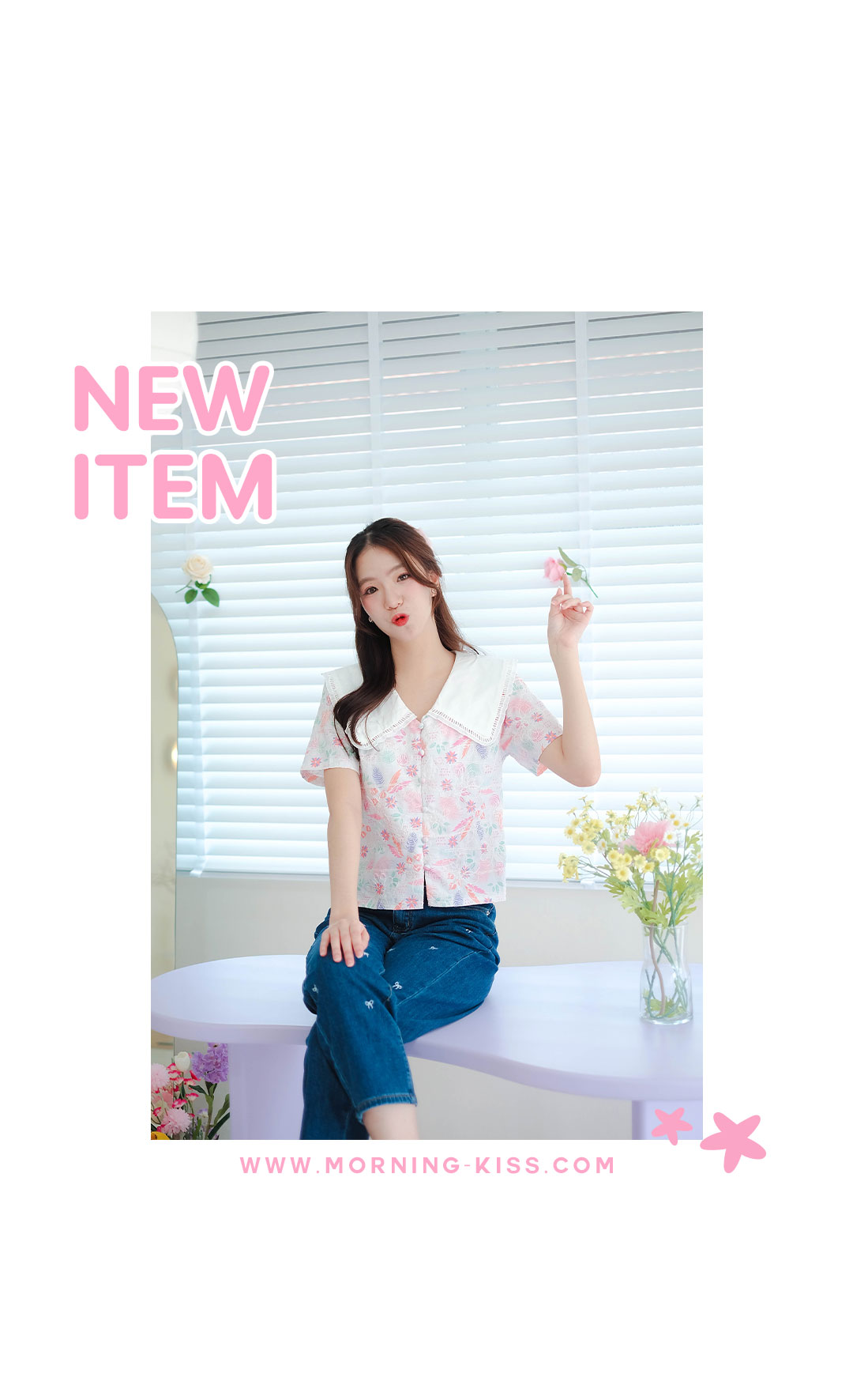 รุ่นนี้จัดไปไม่ผิดหวังแน่นอน สไตส์สวยหวานน่ารัก เสื้อแขนสั้นโทนสีขาวเนื้อผ้าคอตตอนฉลุลายลูกไม้งานปริ้นลายดอกสวยหวานสีสดใส คอปกขาว เนื้อผ้าแบบมี texture ในตัว แต่งกระดุมเรียงหน้า แมทกับกระโปรงหรือกางเกงก็น่ารัก ไอเท็มนี้แนะนำเลย รุ่นนี้สไตส์นี้ใส่ได้ตลอดๆนะคะ