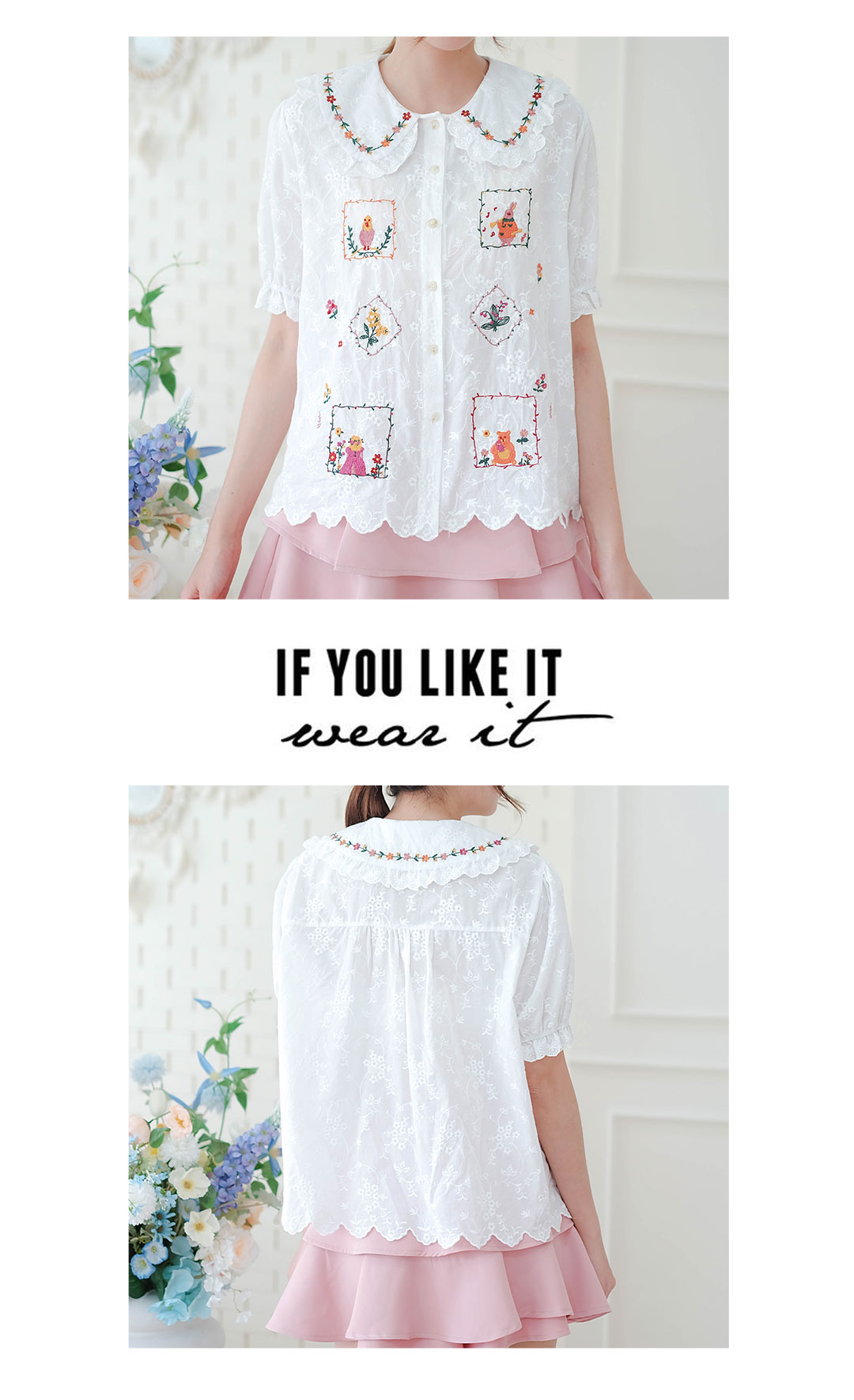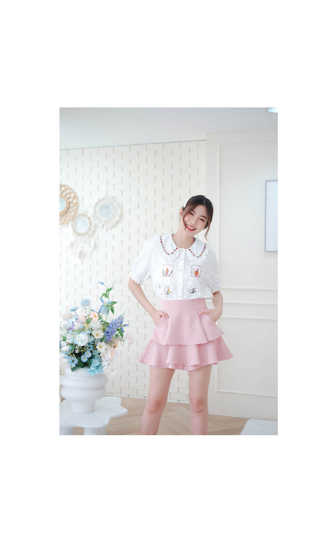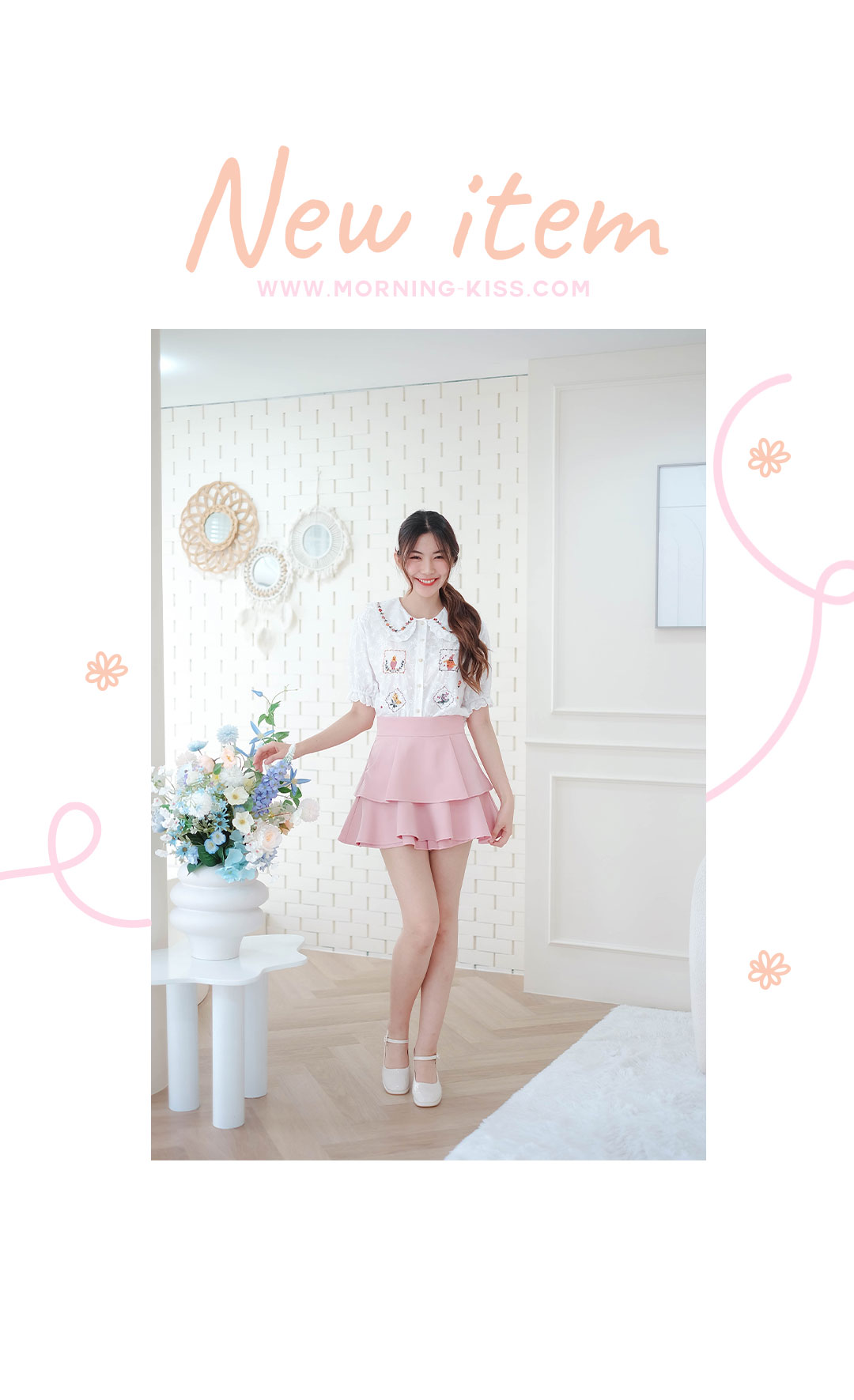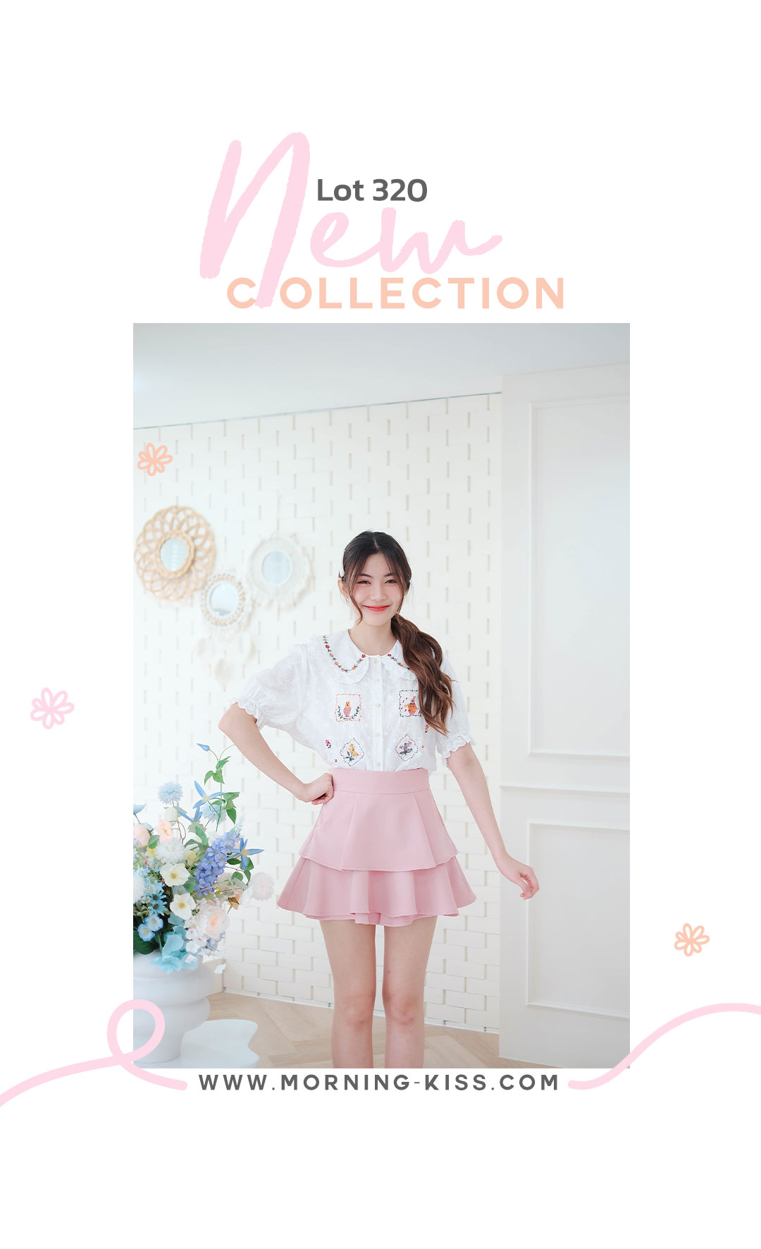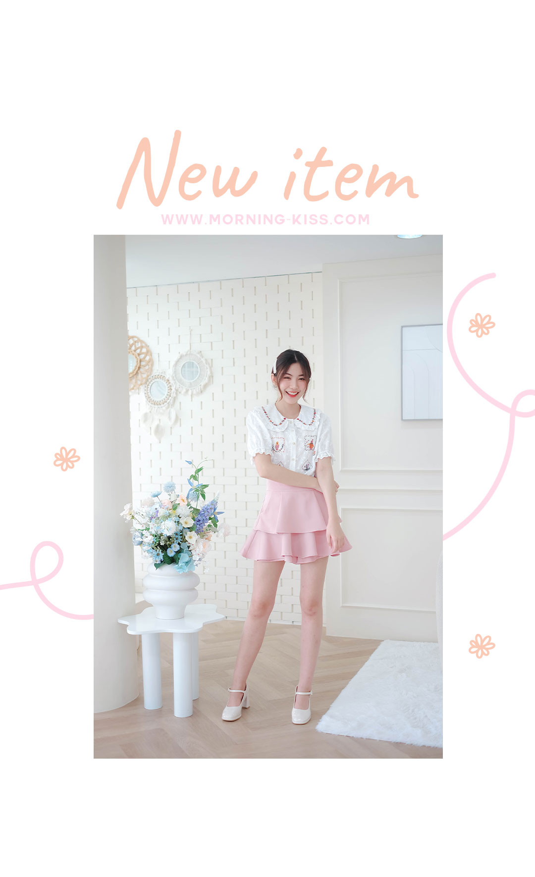 ลุคหวานๆน่ารักๆกับเสื้อแขนสั้นคอปกแต่งงานปักดอกไม้เล็กๆสีสดใสทำระบายเล็กๆ เนื้อผ้า Cotton ฉลุลายดอกไม้รอบตัว + แต่งงานปักด้านหน้าน่ารักๆ มีซับในทั้งตัว กระดุมเรียงหน้า ชายเสื้อทำหยักๆ ใส่ทำงานก็ได้ใส่เที่ยวก็น่ารัก รายการนี้แนะนำเลย