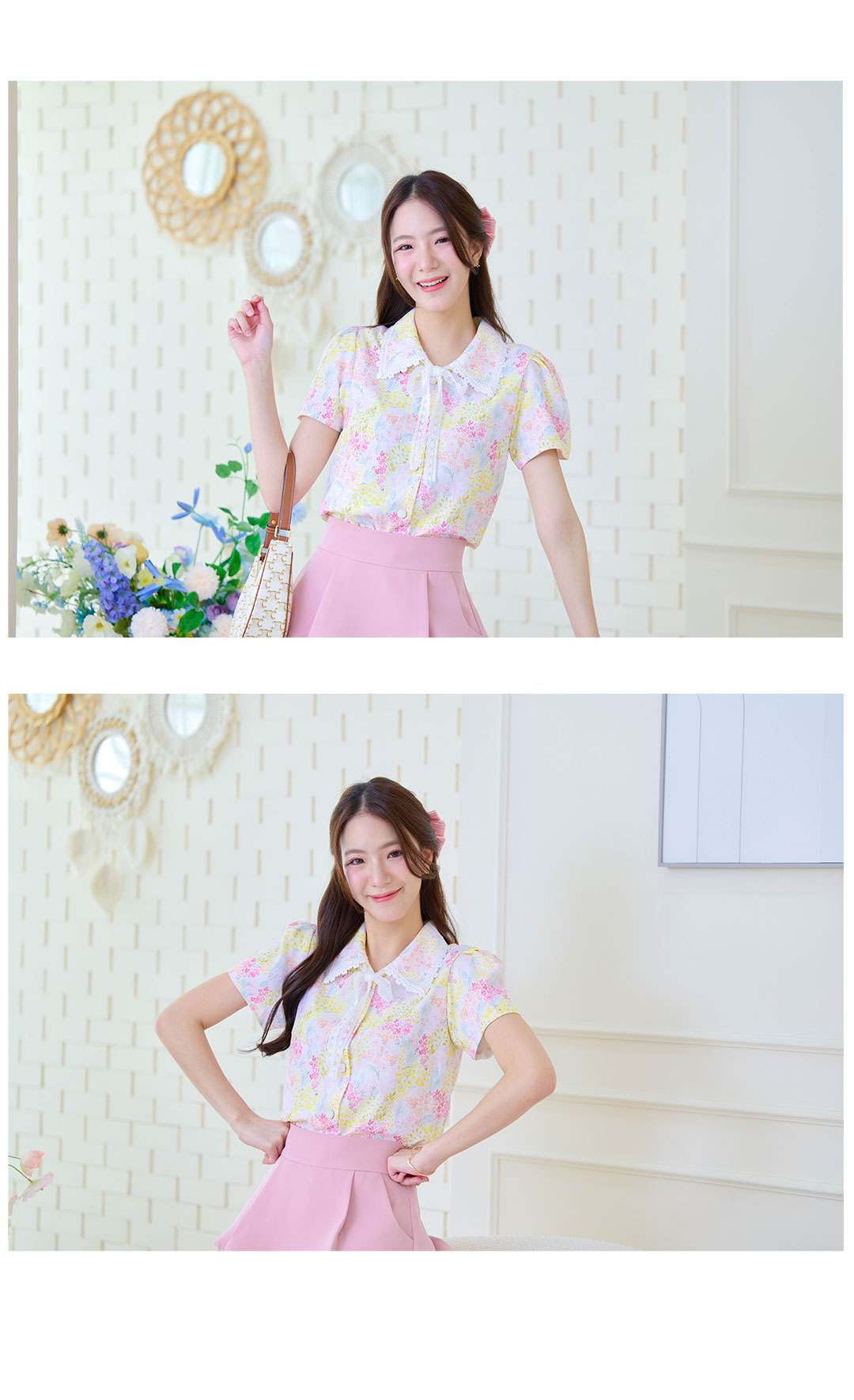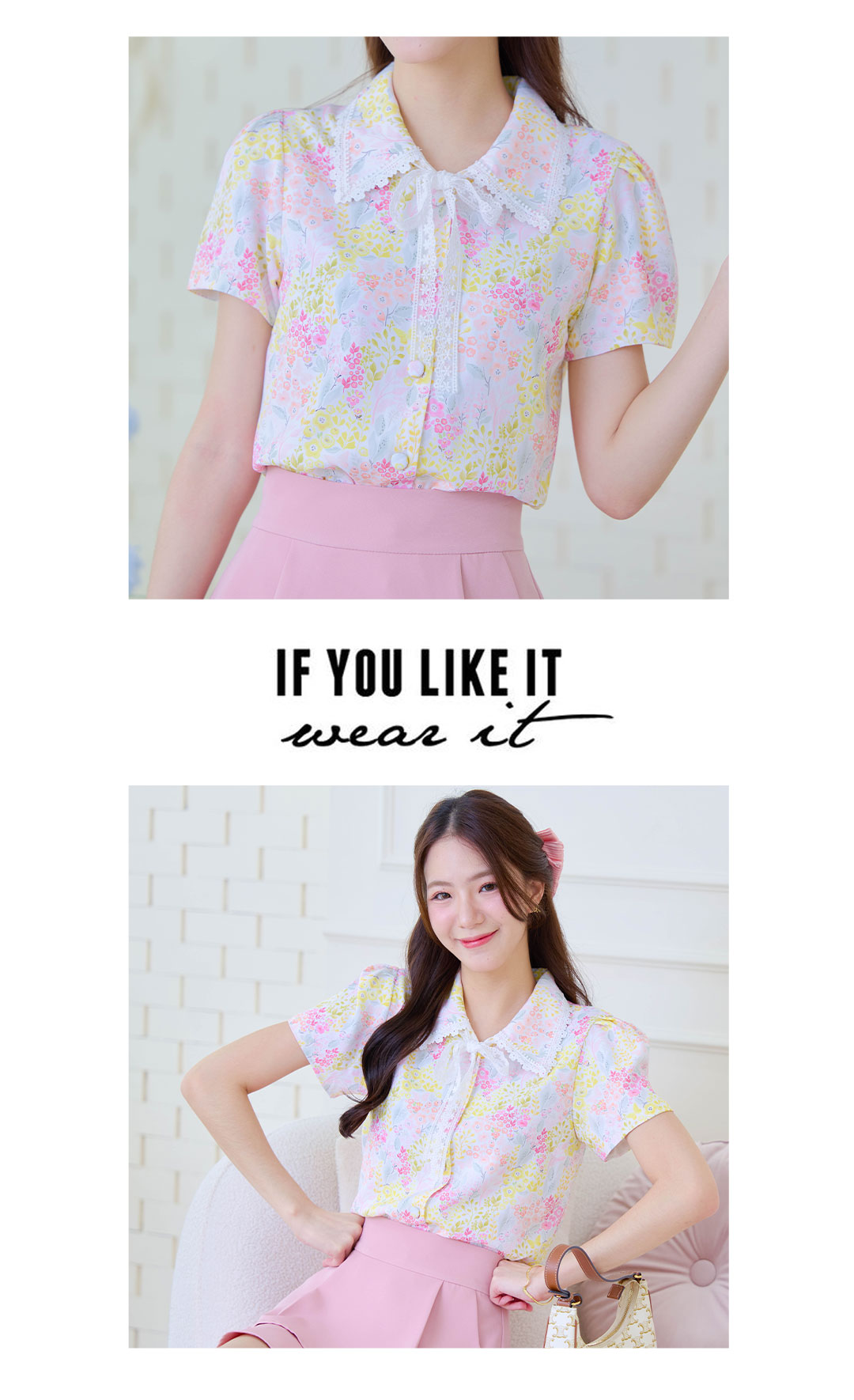 Must Have ไอเท็มนี้สวยหวานน่ารักมากเลยค่า เสื้อแขนสั้นคอปกลายดอกโทนสีสดใส ช่วงคอมีสายผ้าลูกไม้ผูกเป็นโบว์น่ารักๆ กระดุมรียงหน้า เนื้อเลยอนปริ้นลายดอก ผ้านิ่มๆใส่สบายทิ้งตัวสวย มีซับใน รุ่นนี้ใส่ง่ายๆ แมทกับกระโปรงหรือกางเกงก้อน่ารัก เนื้อผ้าดี จัดไปใส่เที่ยว ลุคหวานใส่ได้หลากหลายโอกาสเลย