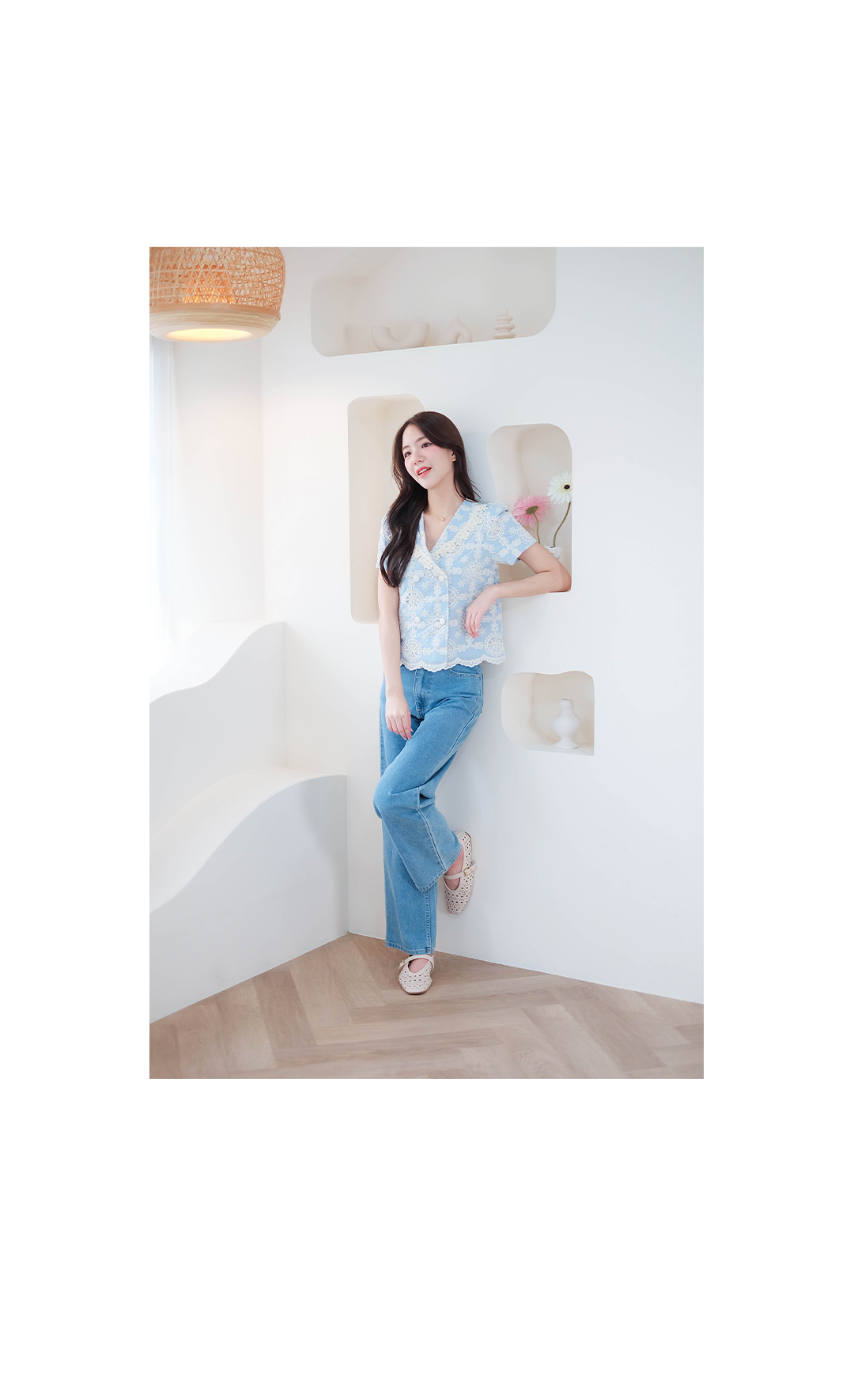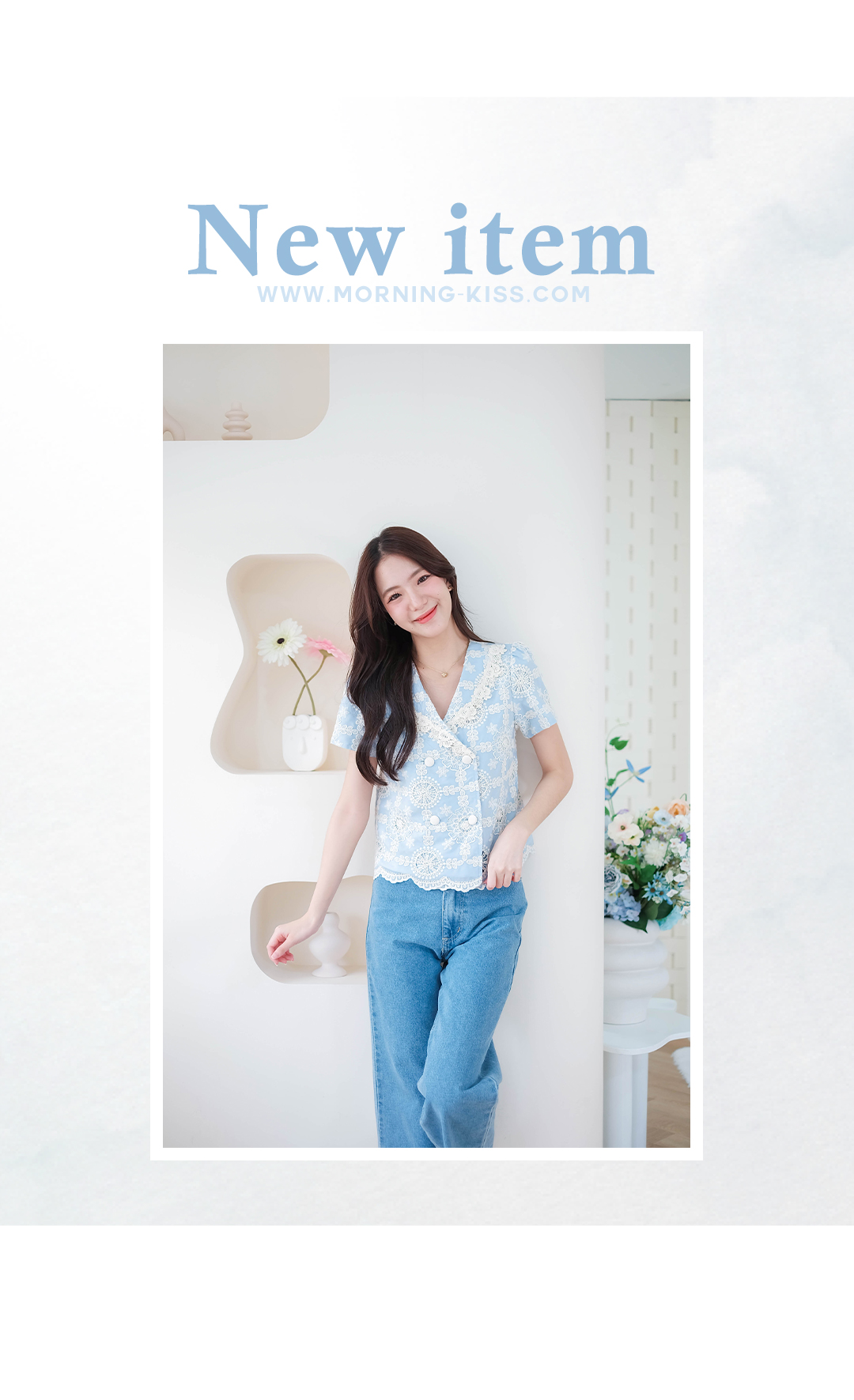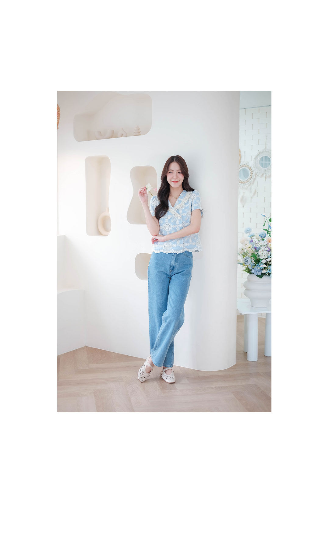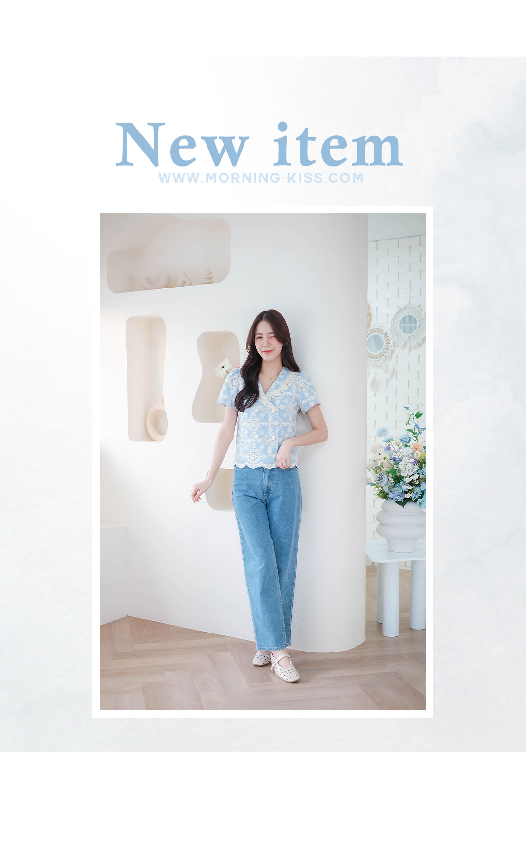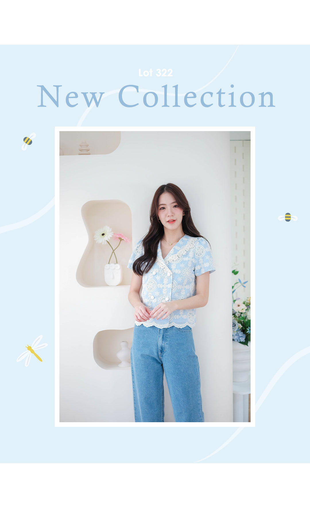บอกเลยว่ารุ่นนี้คืดที่สุดของความปัง ดีเทลเน้นๆ สาวหวานต้องไม่พลาดไอเท็มนี้ น่ารักมาก ดีเทลงานปักอลังการกับเสื้อแขนสั้นโทนสีฟ้า งานฉลุลายลูกไม้สีครีมอย่างสวยเลย ช่วงคอวี ตัดทรงป้าย แต่งกระดุมคู่เรียงหน้า แมทกับกระโปรงหรือกางเกงก็น่ารัก ไอเท็มนี้แนะนำเลย งานพรีเมียมสวยมากๆ คุ้มเกินราคา